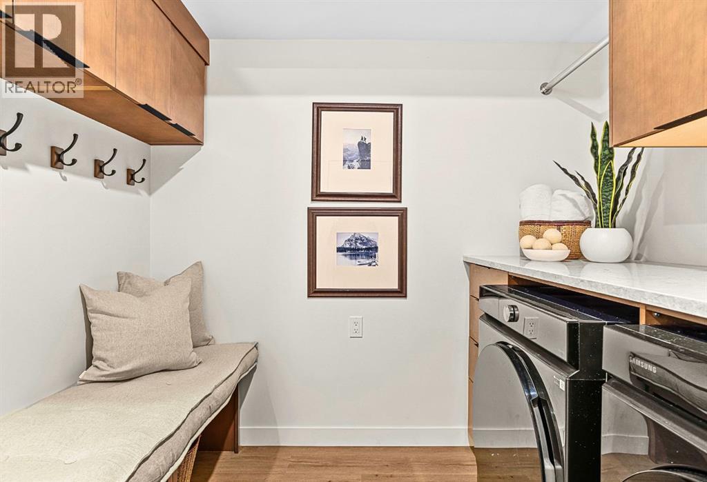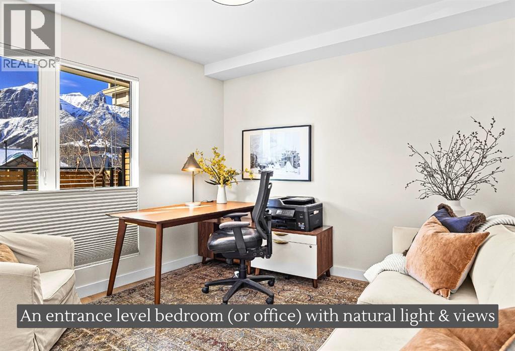 $858.35 MonthlyWelcome to the alpine sanctuary of Raven's Peak (Residential Only) in the heart of majestic Canmore — Completed in 2023 by a local homebuilder, this like-new 3-bedroom, 3-bathroom townhome blends thoughtful craftsmanship with refined modern design. Every detail feels intentional. Every space feels elevated. Step into the living room and feel the immediate impact of a dramatic floor-to-ceiling wall of Lux triple glaze windows — a stunning architectural statement that perfectly frames the grand mountain views beyond. Whether it’s sunrise alpenglow or a snow-dusted evening skyline, the striking peaks of the Canadian Rockies become your ever-changing artwork. The heart of the home is a showpiece kitchen anchored by a prominent quartz island — sleek, sculptural, and ideal for entertaining. Efficient stainless steel appliances complement clean modern lines, while a cozy breakfast nook invites slow mornings with coffee and your loved ones. It’s a space that effortlessly transitions from a quiet intimate evening, to a lively dinner parties with friends. The primary bedroom is nothing short of breathtaking. Imagine waking up to unobstructed mountain views — visible directly from your pillow. No buildings. No rooftops. Just stars, peaks, and bright blue sky. Spacious and serene, this retreat offers the kind of daily inspiration that never grows old. Beyond beauty lies performance. A highly efficient geothermal system provides sustainable heating and cooling year-round, delivering exceptional comfort with reduced environmental impact. Triple-glaze windows enhance both efficiency and tranquility, creating a peaceful indoor environment in every season. Practicality is equally refined. A convenient mudroom and bathroom sit directly off the garage — ideal for after mountain adventures. The single attached garage features durable epoxy flooring and a slatwall organizing system to keep all your gear in order. An exterior hose makes clean-up easy after hikes or bike rides, and the fe nced front patio offers a private space to relax in the alpine sun & air. Perhaps most coveted of all — direct pedestrian access across the street to downtown Canmore. Leave the car behind and stroll to cafés, boutiques, groceries, dining, and trailheads within minutes. No need for Canmore's amazing free public transit, but there is a stop a stones throw away. This is more than a townhome.It’s modern mountain living — elevated, efficient, and effortlessly connected to the very best of Canmore. (This is a Residential home, No STR allowed) (id:49203)