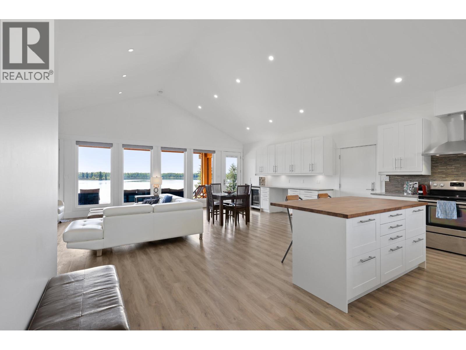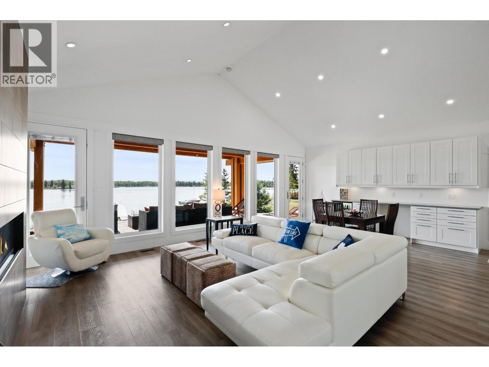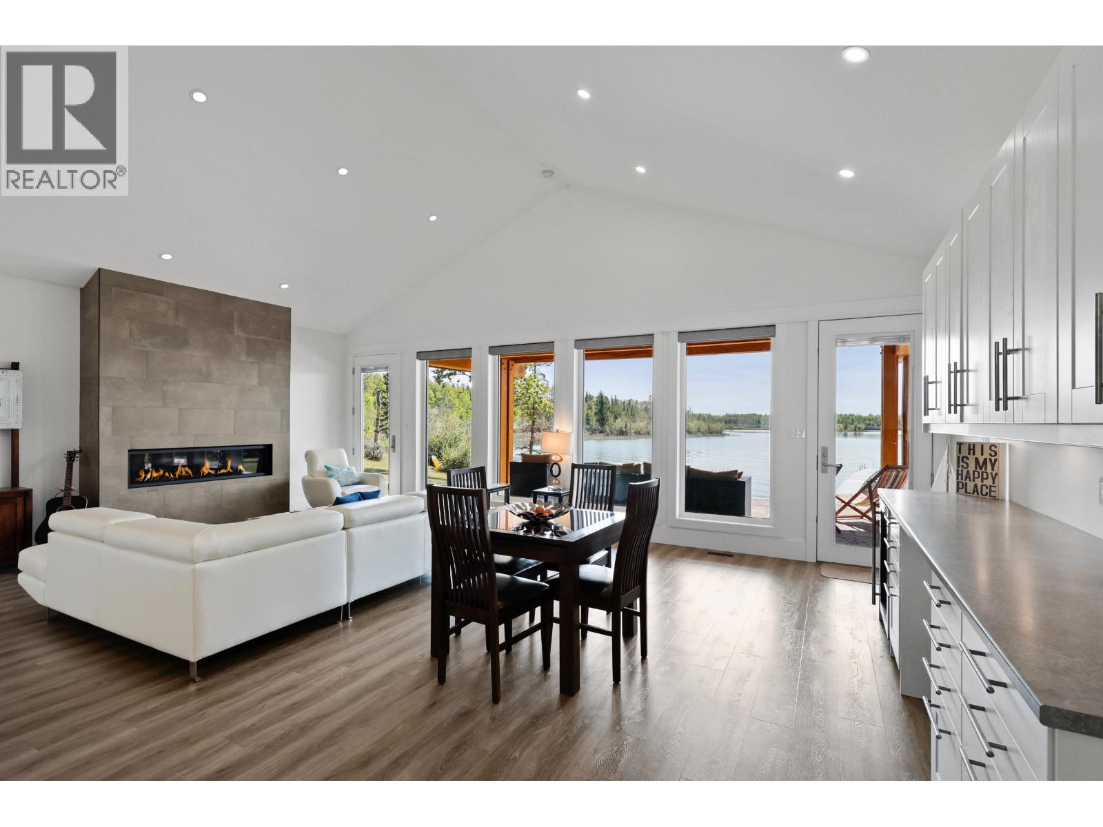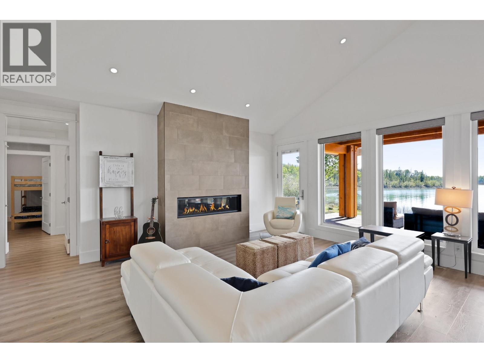 Lakeside living at its finest on the shores of 70 Mile Lake. Built in 2017, this stunning timber-frame property delivers the ultimate recreation lifestyle with direct water access, a private dock, and breathtaking lake and mountain views from every angle. The open-concept main home features a chef-inspired kitchen with butcher block island, linear fireplace, and walls of windows that bring the outdoors in. A covered timber-frame patio with gas fire table is perfect for year-round entertaining. The oversized attached garage plus a large detached workshop offer incredible storage for all your toys. Just 10 minutes from the highway, with trails, boating, and adventure at your doorstep. This is your happy place. (id:49203)