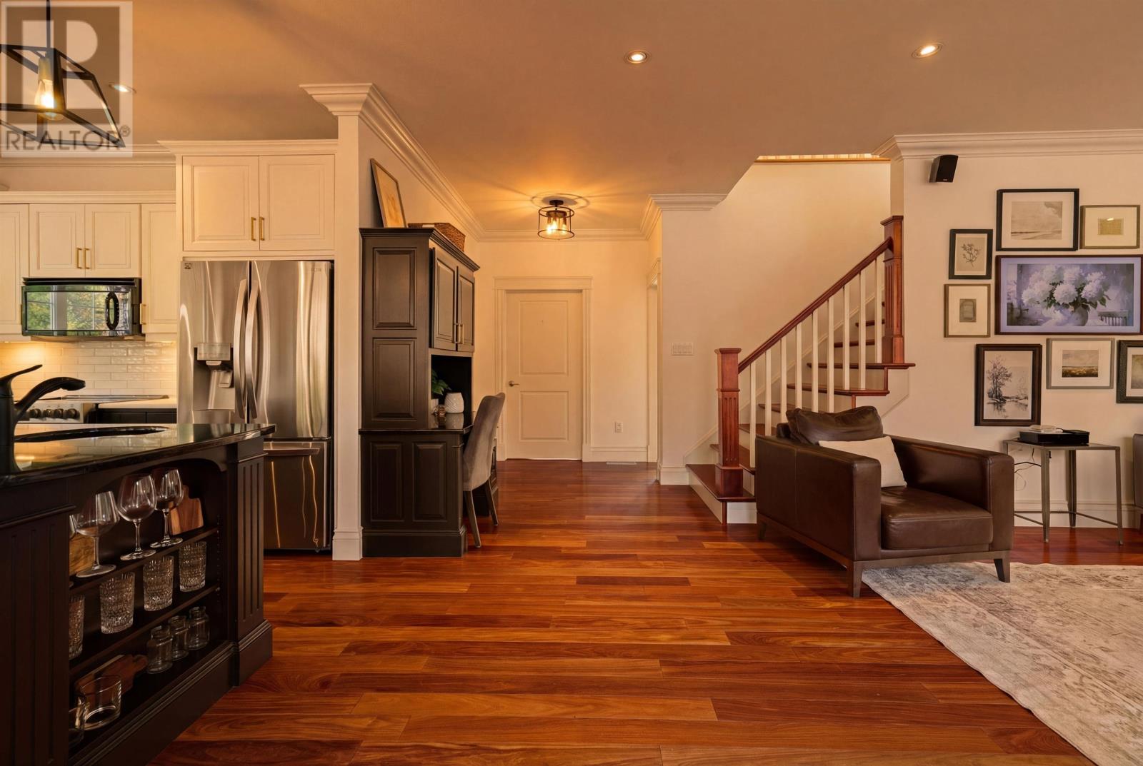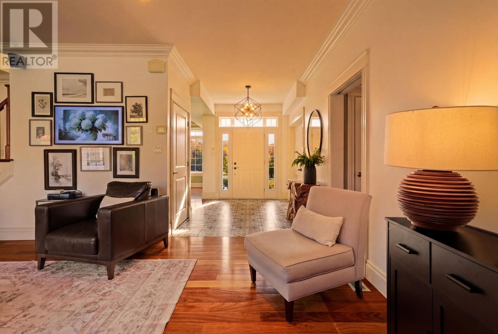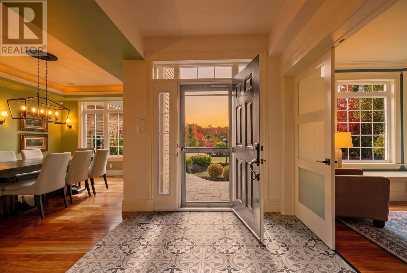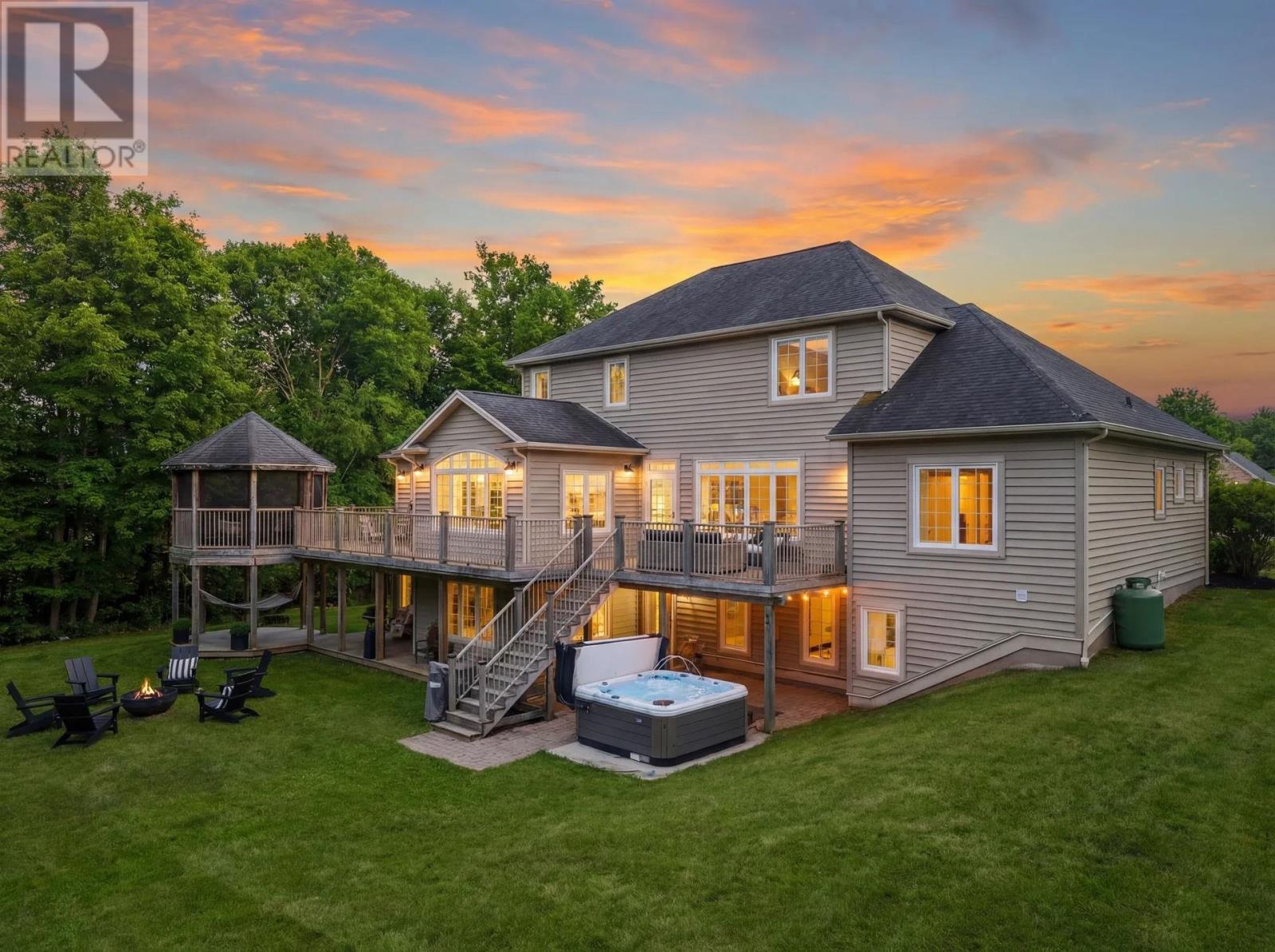 Positioned on 1.2 acres alongside Fox Meadow Golf Course and set at the end of a private cul-de-sac, this estate offers over 5,450 square feet of finished living space within one of Stratford?s most established executive settings. The depth of setback, mature perimeter trees, and adjacency to both the golf course and Stratford Trail create a rare sense of privacy within town limits. Arrival is deliberate. A broad paved drive introduces a symmetrical façade grounded in stone and defined by strong rooflines. The attached heated triple garage integrates seamlessly into the architecture, reinforcing both scale and permanence. Inside, the main floor reflects disciplined craftsmanship. Substantial crown mouldings define each principal room, while hardwood flooring carries throughout. A structured foyer establishes the tone before opening to the formal dining room, private office, and central living room anchored by a propane fireplace. The kitchen is arranged along a clean, parallel layout, with expansive corner windows drawing in natural light and extending the space visually toward the rear deck. A walk-in pantry of exceptional scale supports both entertaining and daily living with ease. Upstairs, four well-proportioned bedrooms provide balanced accommodation. The primary suite is privately set toward the treed boundary and golf course, offering both separation and a calm, natural outlook. A secondary bathroom with a dual vanity reflects the consistent level of finish throughout the home. The fully developed walkout level expands the living space with new basement flooring, a new built-in entertainment unit in the family room, gym space, an additional bedroom, a full bath, and extensive storage. Outdoors, the grounds are fully realized, with a dedicated pickleball court designed as a multi-purpose surface for hockey and seasonal sports, along with a screened gazebo, expansive deck, lower patio, and hot tub, defining this Stratford estate for long-term presence. (id:49203)