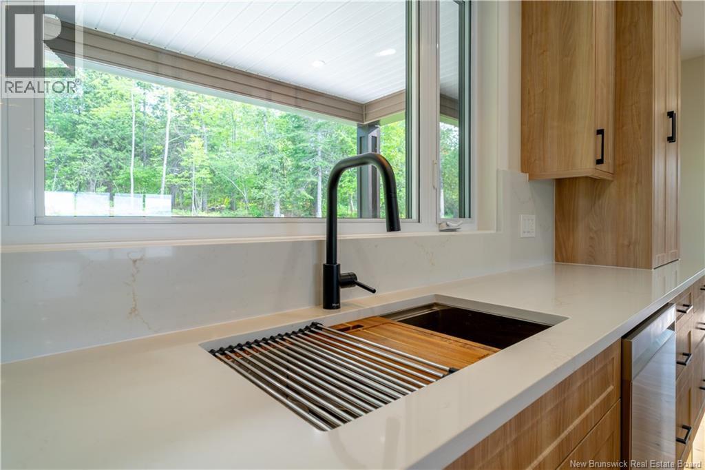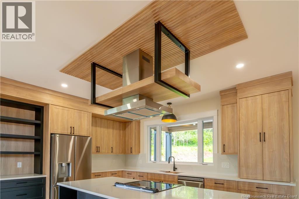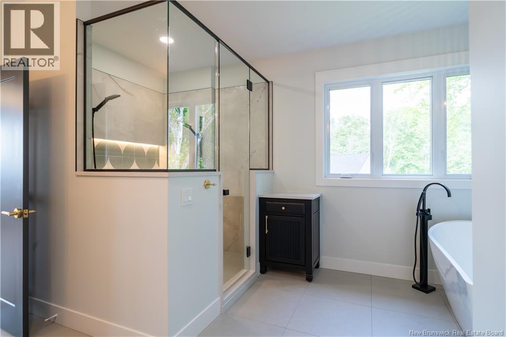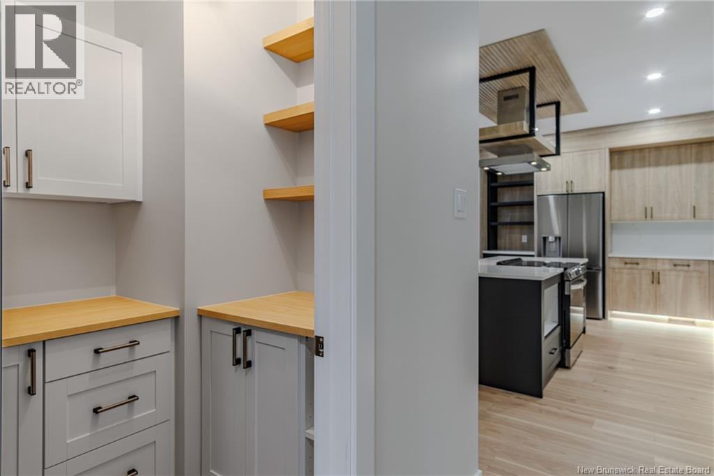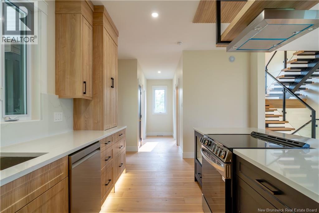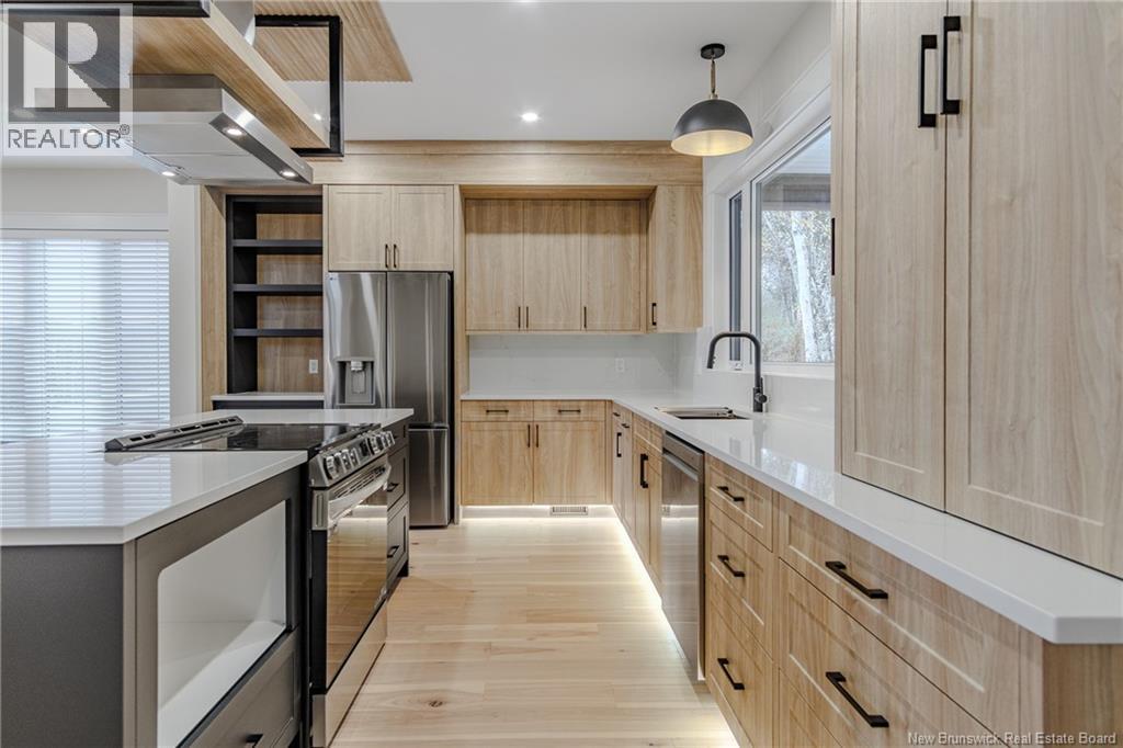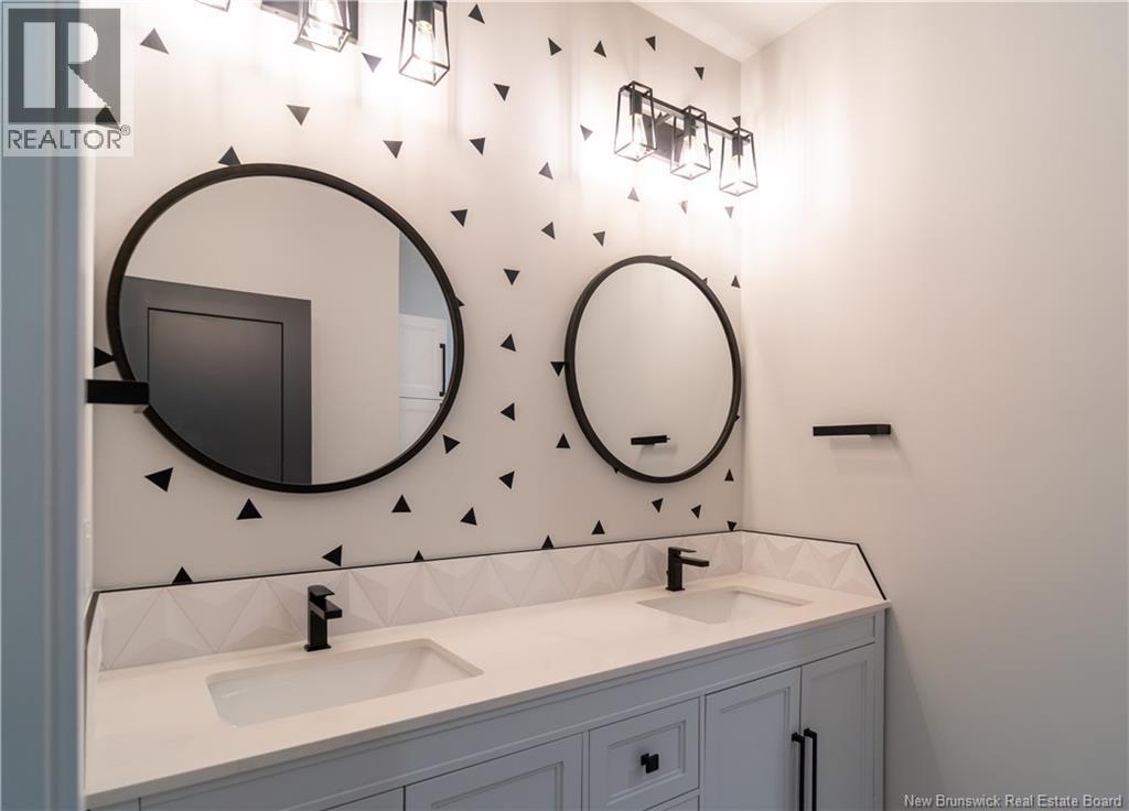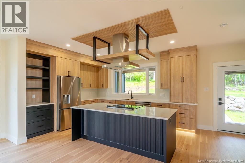 Welcome to 10 Motivation Avenue, a refined new build by Homestar Inc in the expanding Serenity Heights community. This contemporary two-storey home offers standout curb appeal with sleek lines, black-framed windows, and contrasting modern siding. A covered front porch plus a generous stone patio out back create inviting outdoor living spaces. The neighbourhood also provides easy access to the beautiful Hammond River only steps away. Inside, the open-concept main floor showcases a striking living area with a Venetian plaster fireplace flanked by arched built-ins. The designer kitchen impresses with a quartz island featuring the cooktop and custom range hood, bespoke cabinetry, seamless quartz backsplash, and a built-in coffee bar. A pantry, powder room, and combined laundry/mudroom with dog wash add convenience to the main level. A dramatic cantilevered metal and glass staircase anchors the home, connecting all three levels with architectural flair. Upstairs, the primary suite captures year-round Hammond River views, offers custom millwork, and features a spa-inspired ensuite with a soaker tub, oversized walk-in shower, solid wood vanity, built-in makeup area, and timeless tilework. A spacious walk-in closet provides organized storage. Two additional bedrooms and a full bath complete this level. With exceptional craftsmanship, elevated finishes, and thoughtful design throughout, this is a one-of-a-kind home for those who value both style and function. (id:49203)