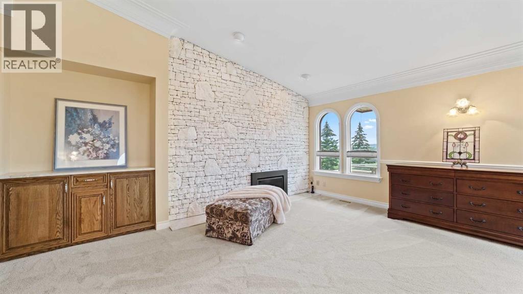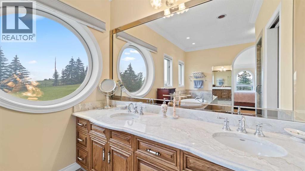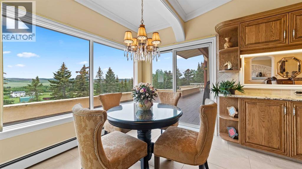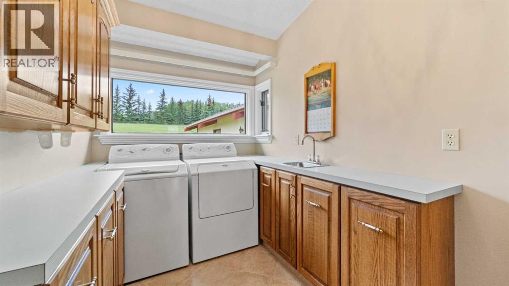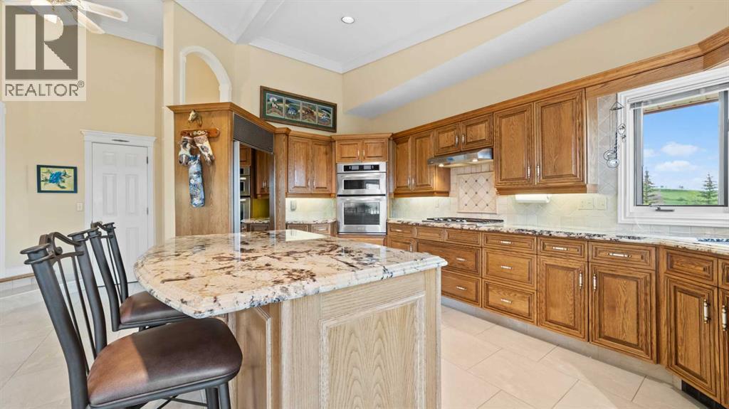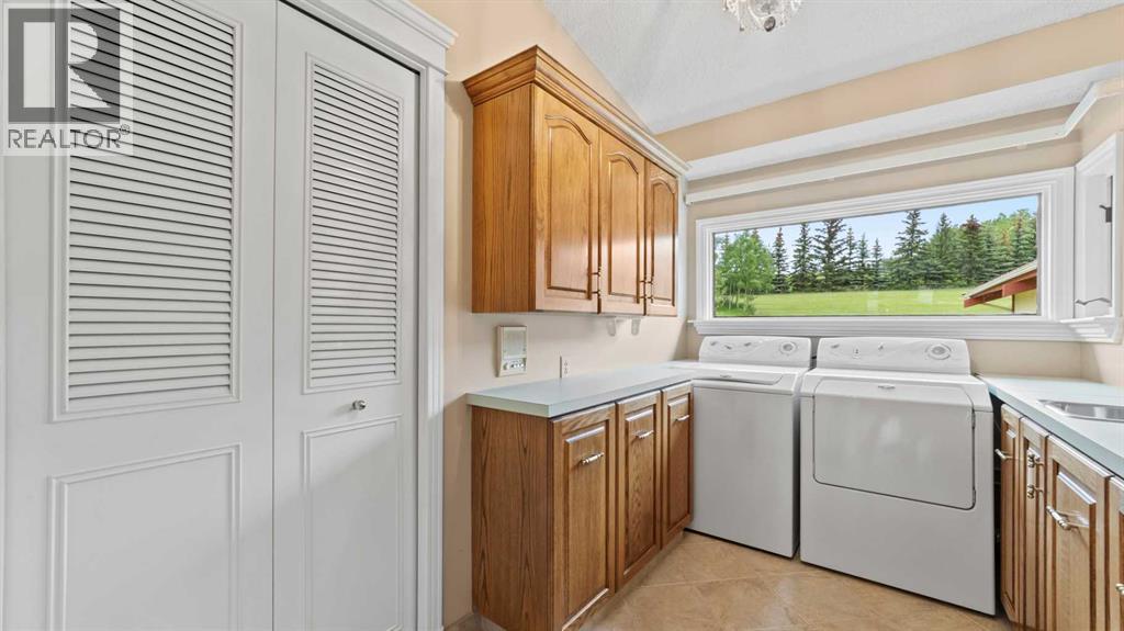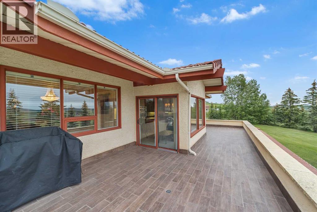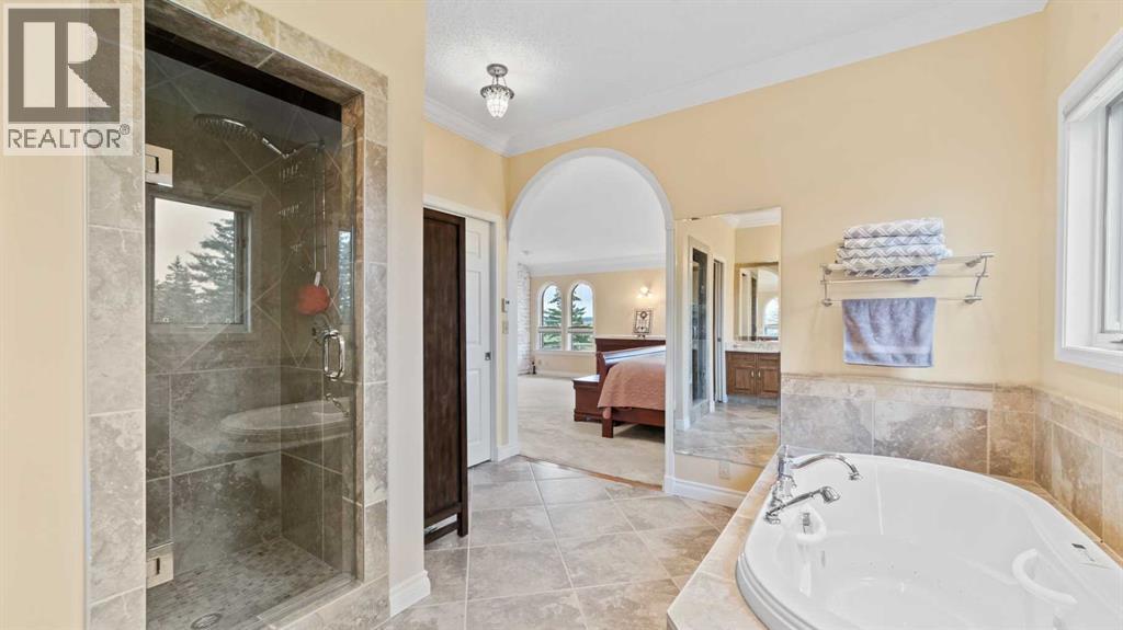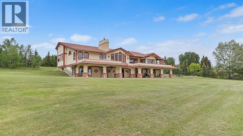 An exceptional opportunity to own nearly 20 acres just minutes from SW Calgary, Spruce Meadows, and the SW Ring Road, with breathtaking mountain views and room to grow. This property offers a rare combination of peaceful rural living, horse-ready infrastructure, and future development potential (subject to MD approval for subdivision).Ideal for equestrian enthusiasts, the land is cross-fenced into three separate pastures and includes a horse shelter, with plenty of space to expand. The custom-built walkout bungalow offers nearly 3900 square feet on the main floor and features 4 bedrooms, 3.5 bathrooms, a gourmet kitchen, curved staircase, vaulted ceilings, skylights, and 3 fireplaces—an elegant, spacious home designed for comfort and entertaining.Enjoy the convenience of a heated triple-attached garage plus a separate 3-car detached garage, ideal for vehicles, a workshop, or potential conversion into a barn. The walkout lower level is partially finished and offers flexible space, including the option to develop a self-contained living space.Whether you're seeking space for horses, investment potential, or simply a private retreat close to the city, this unique property delivers incredible value and versatility. Don’t miss this chance to own in the foothills with views, privacy, and potential. (id:49203)