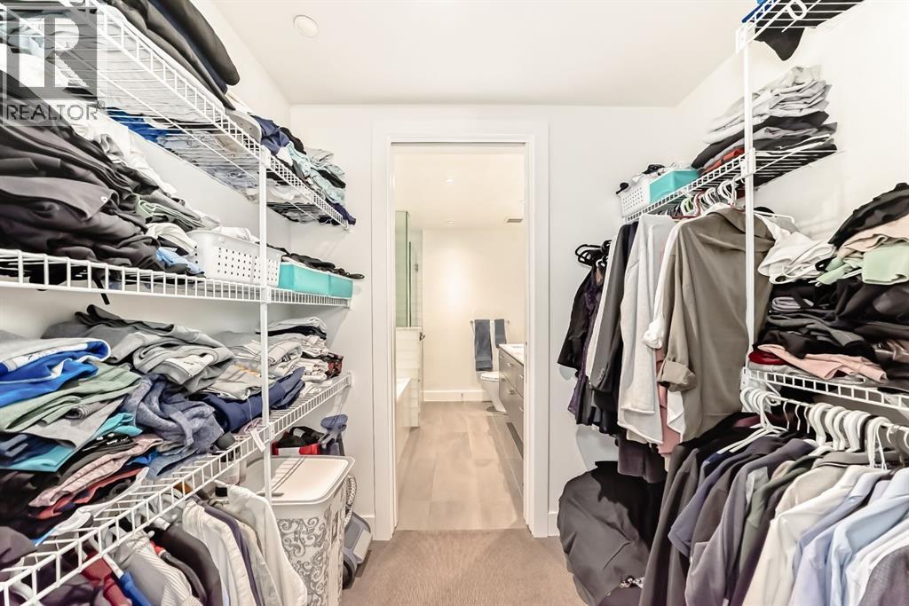 Welcome to this breathtaking 2-bedroom, 2-bathroom residence featuring an award-winning floor plan and unbeatable views from every corner. Step onto your west-facing balcony and take in stunning sunsets overlooking the Bow River and mountains.Inside, you’ll find upgraded engineered hardwood floors and a chef-inspired kitchen complete with a panelled fridge, built-in oven, microwave, and a massive island—perfect for entertaining. The spacious living room includes a cozy nook, while the primary suite offers a generous walk-in closet and a luxurious ensuite with double vanity, soaker tub, and standing shower. The secondary bedroom is ideal for kids, guests, or a home office, with the second bathroom upgraded to a full standing tiled shower.This quiet, non-smoking, pet-free unit is in immaculate condition and comes with in-suite laundry, a titled underground parking stall, and a titled storage unit.Building amenities include:24hr concierge & securityDog wash station & bike workshop in the parkade11 visitor parking stallsDaily professional maintenance & cleaningFitness centre and elegant lobbyMostly resident-owned units (no short-term/Airbnb rentals allowed)Located just a 3-minute walk to the Bow River pathways and 5 minutes to the Downtown West-Kerby C-Train station, you’ll enjoy quick access to downtown, dining, shopping, and parks.This is the perfect blend of luxury, lifestyle, and location. (id:49203)