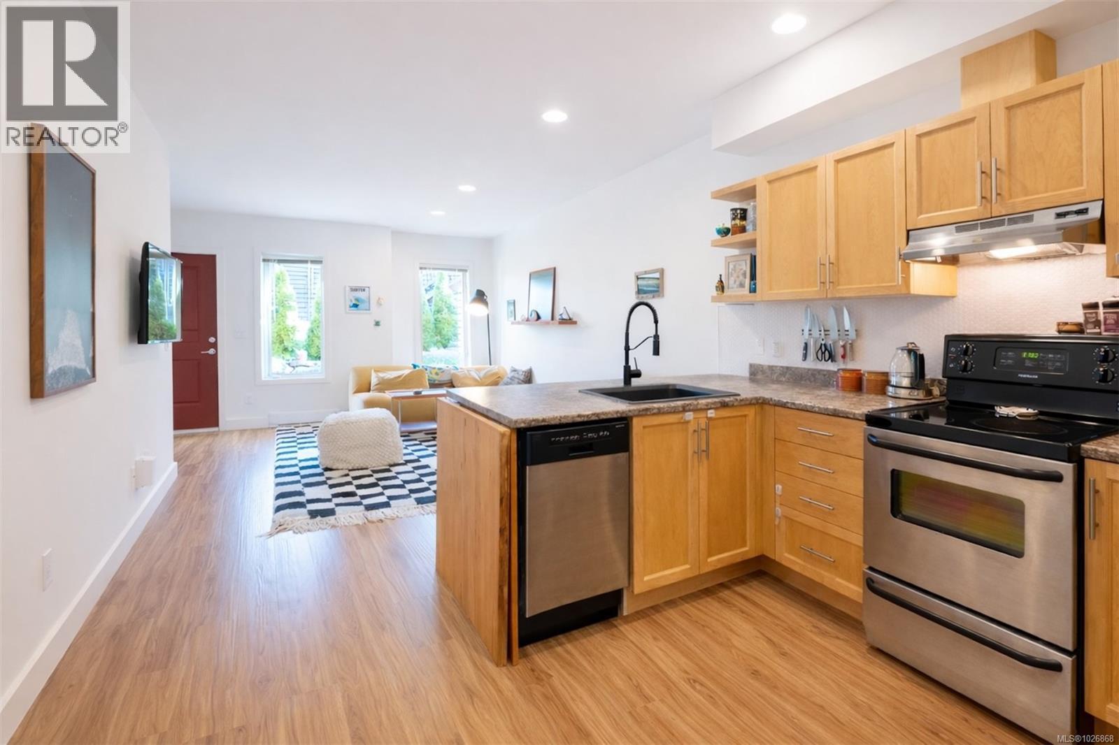 $372 MonthlyExperience light-filled living in the heart of downtown Tofino with this stylish 3-bedroom, 3-bath townhome. Built in 2013, the main level welcomes you with an open-concept layout that blends living, dining & kitchen into one seamless space. Features incl vinyl plank flooring & maple cabinets. A bedroom and full bath on the main floor add flexibility for guests, a home office/bonus room. Upstairs, natural light pours in through vaulted ceilings creating an airy, open feel. The master suite offers its own ensuite & a balcony perfect for morning coffee with inlet & mountain views. The second floor also includes a 3rd bathroom, laundry and ample loft storage. Outside offers a south-facing common area with a communal fire pit, a great way to meet your neighbours! This home’s downtown location puts you in the heart of the action with shops, restaurants & the Tofino harbour just a short stroll away. A dedicated carport and seperate storage shed add to the convenience of central living. (id:49203)