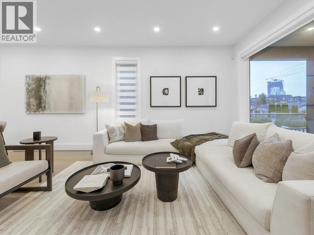 Experience the elegance of this high-quality, new-built 4 bed/3.5 bath, 2150sq ft triplex. This sunny, south-facing home offers 3 levels of well-designed luxury living on Smith Ave, Coquitlam. The main floor features hardwood, 9 ft ceilings, open living/dining, a high-end kitchen with quartz counters, pantry, and a large balcony. The second level offers a primary bedroom with luxe ensuite + 2 bedrooms and a full bath. The top level includes a family/office space + 1 bedroom and a full bath.280 sqft view Balcony Tasteful finishes: carpet, custom cabinetry, modern lighting, Fisher & Paykel appliances. Heating/AC heat pump + electric baseboard. Huge Crawl space storage. Two parking with EV outlet. Steps to Burquitlam SkyTrain. 2/5/10 Yrs Warranty. OPEN HOUSE DEC 11 TH 5-7 PM DEC 13 TH 2-4 PM (id:49203)