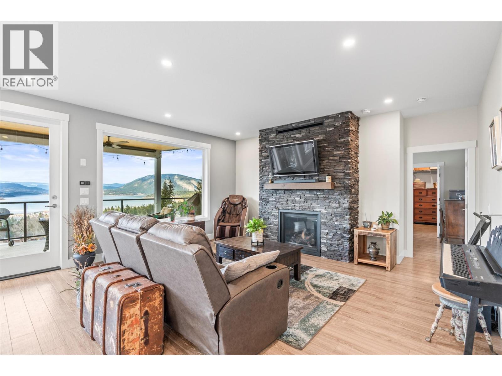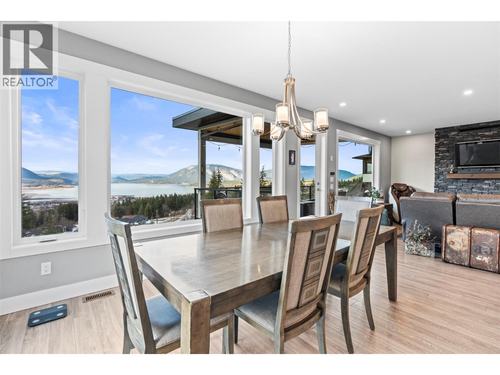 Wake up to unobstructed Shuswap Lake views every morning - this is what you've been looking for. Welcome to 1021 17 Ave SE, a 2021 custom-built 5-bed, 4-bath lake view rancher with a walkout basement in Salmon Arm's sought-after Byersview neighbourhood. Floor-to-ceiling windows flood the open-concept living space with panoramic lake and mountain views. The kitchen is refined and functional: quartz island, gas range, wine fridge, and a dreamy walk-in pantry. Exit the dining room onto a private, heated covered deck - the perfect place to soak in sunsets or catch the Northern Lights. A floor-to-ceiling stone fireplace anchors the living room, while the primary suite offers a walk-in closet and a spa-inspired ensuite with dual sinks and an oversized walk-in shower. A second bedroom, a full bath, and laundry complete the main floor. The lower level adds exceptional flexibility: a spacious games room, a bedroom, and a full bathroom serve the main home, while a self-contained 2-bedroom Legal Suite completes the level. This suite has a separate entrance, private laundry, fire-rated & soundproof walls, and previously generated $1,500/month with the capacity to reach $2,000. Ideal for extended family, long-term rental, or supplemental income. Additional highlights include a heated double garage with Stage 2 EV charger, RV power, Swimming Pool rough-in, Chair Lift, full irrigation, raised garden beds and sunken fire pit patio. Lifestyle, views, and income - all in one exceptional home. (id:49203)