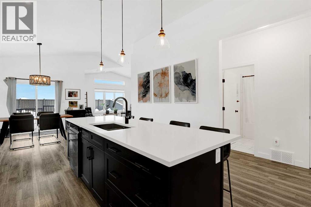 This impressive home features a 3-bedroom, 2-full-bath upper (main) suite along with a legal 2-bedroom, 1-bath basement suite, offering exceptional flexibility for families or investors.The 1,600+ sq. ft. upstairs suite is thoughtfully designed and includes laminate flooring throughout, air conditioning, and a tankless hot water system. The modern kitchen is equipped with stainless steel appliances, a large island, and a walk-in pantry—perfect for both everyday living and entertaining. The bright living room showcases a beautiful fireplace and a large window that fills the space with natural light.The primary bedroom offers a generous walk-in closet, while the ensuite features a soaker tub and a spacious walk-in shower. A convenient laundry room is also located on the upper level.The home includes a fully finished triple-car garage complete with shelving and a stainless steel sink. Outside, the fenced and finished backyard offers composite decking, a privacy wall, and a storage shed. The basement suite has its own fully separated, fenced yard and includes a shed as well, ensuring privacy for both living spaces.Built in 2021 and privately sold by the original owners, this property is move-in ready and shows pride of ownership throughout. Whether you’re looking for a great family home or a strong investment opportunity, this one checks all the boxes. (id:49203)