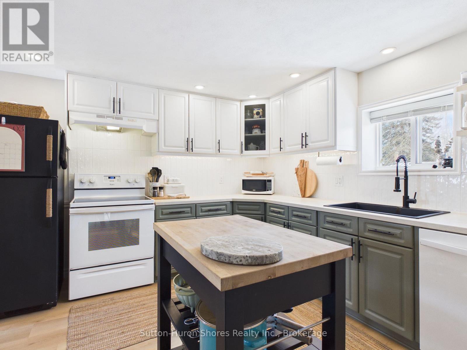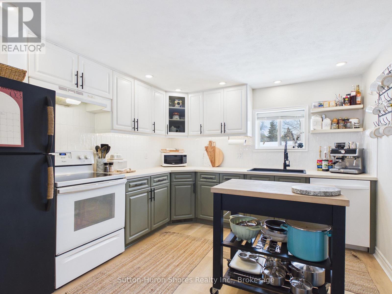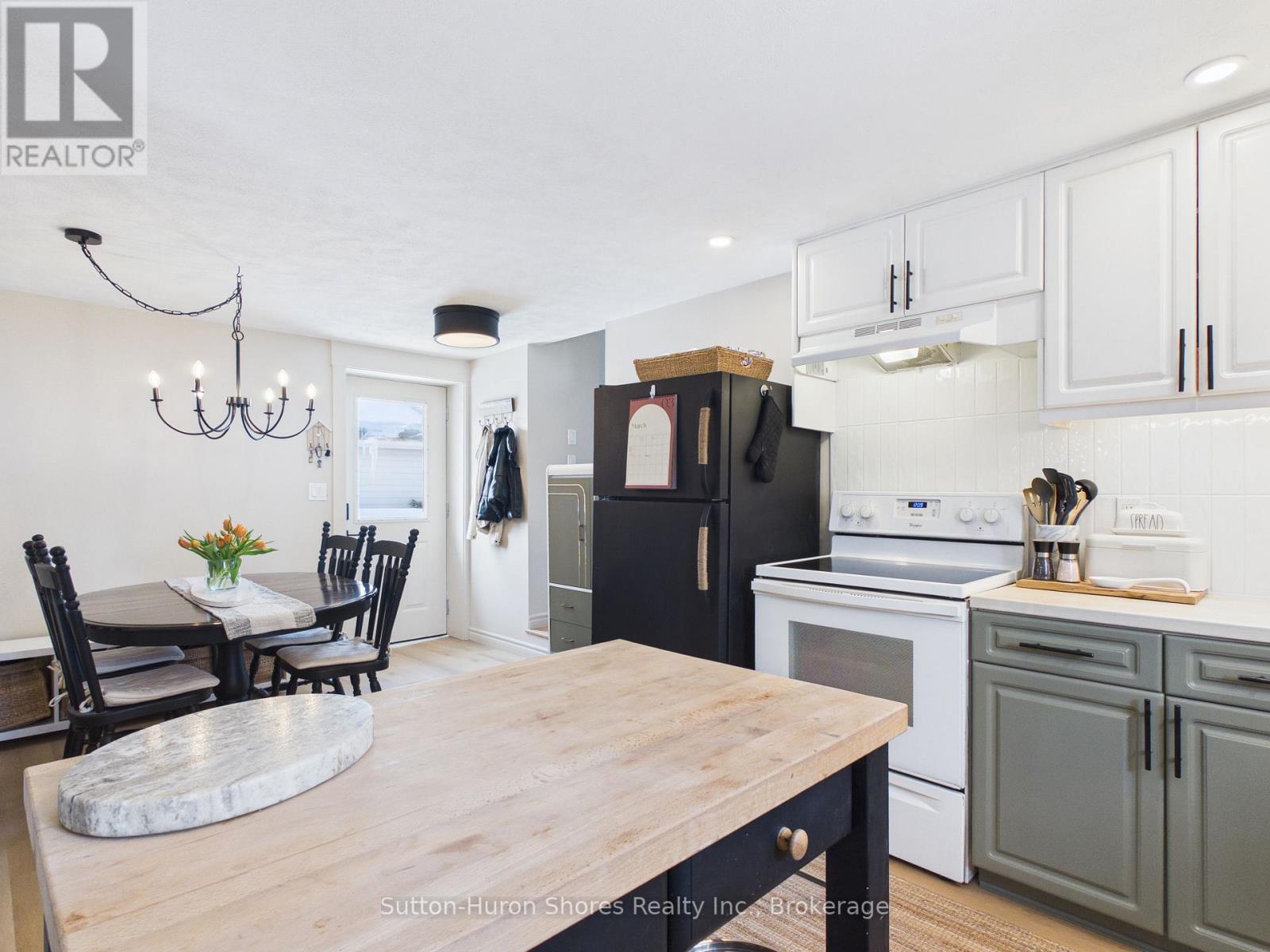 103 Amelia Street in Walkerton is a charming and thoughtfully updated 2-bedroom, 1-bath home that blends cozy character with stylish, moody elements throughout. Perfect for first-time buyers, downsizers, or investors, this home offers comfortable living with a long list of meaningful upgrades already completed. The interior features updated light fixtures throughout (2023-2025), new pot lights (2025), a smart thermostat (2024), tiled laundry and bathroom floors (2024), a beautifully refreshed bathroom with new vanity, sink, faucet, and shower fixtures (2025), and a fully updated kitchen (2026) complete with new flooring, countertops, backsplash, sink, faucet, trim work, and under-cabinet lighting. Major improvements include a new shingled roof on the original structure (2022), new water heater (2025), updated exterior side door, painted exterior siding (2025), new smoke alarms (2025-2026), and washer and dryer (2024). Outside, you'll find a shed set on pavers (2021), a re-graveled and widened driveway (2025), refreshed exterior lighting, and even a new hose bib (2025). Average annual utility costs are approximately $1,600 for electricity, $1,100 for water, and $750 for gas (with the furnace as the only natural gas appliance, keeping summer costs primarily to meter fees). A well-cared-for home with personality, smart updates, and manageable utility costs, all in a great Walkerton location. (id:49203)