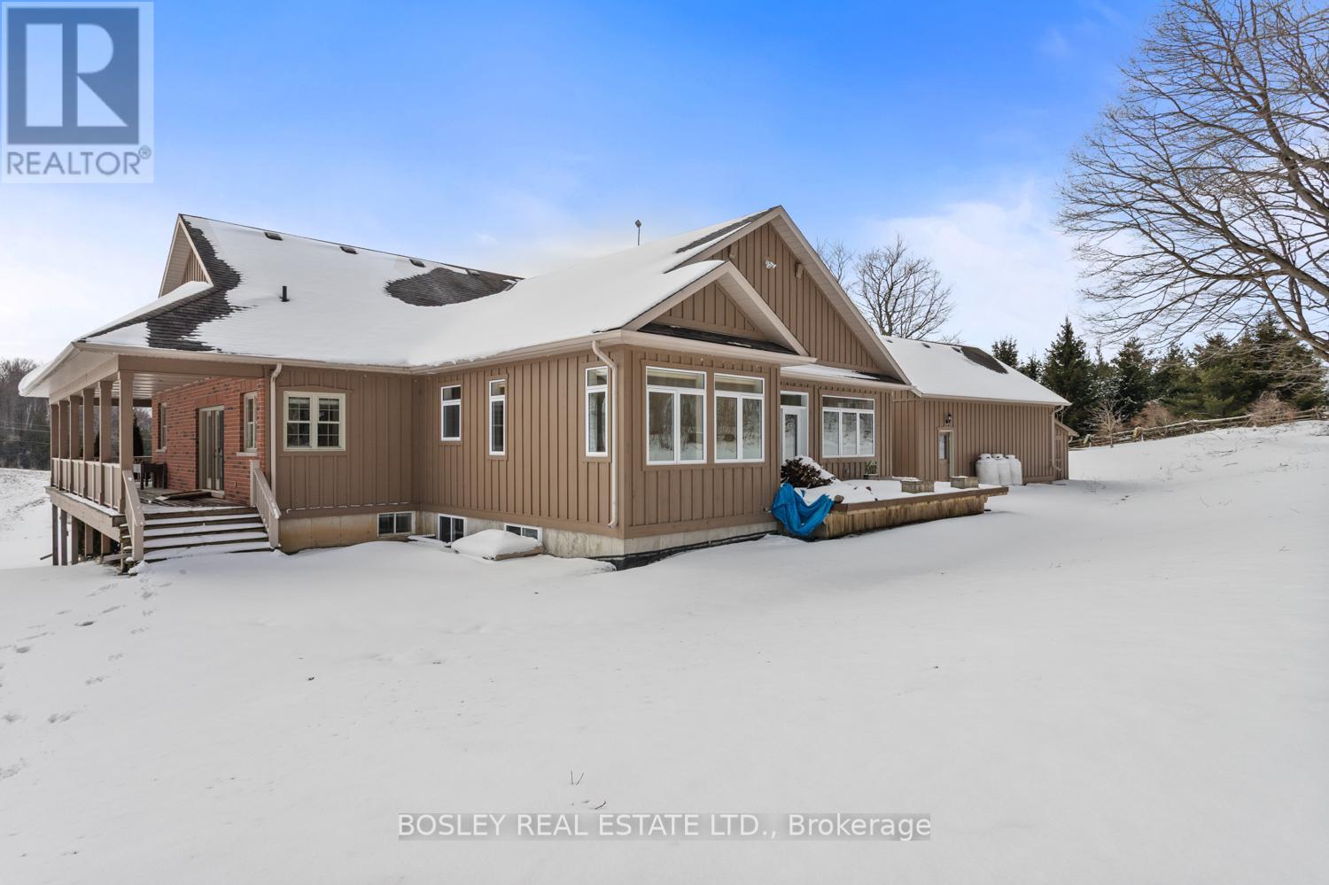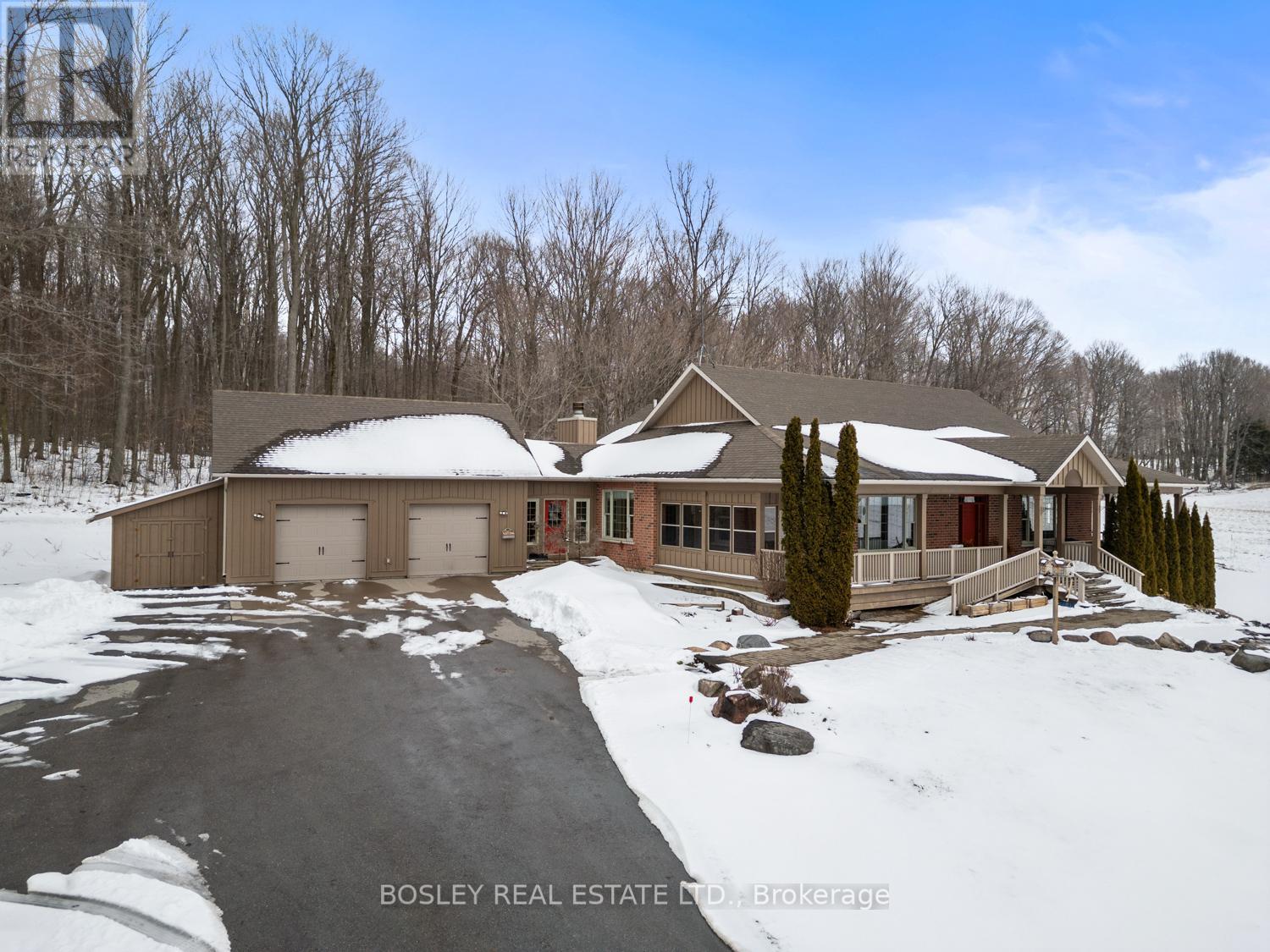 This stunning, elegant Country Estate sits on over 100+ acres, featuring scenic landscapes, natural rolling hills, dense forest, and over 48 acres of farmland, panoramic views from every area on this picturesque property. A slightly winding driveway, traditionally designed with a wraparound porch, greets you, creating an immediate sense of belonging. This bright bungalow provides the perfect backdrop for country living, suiting many buyers' personal needs or desire for privacy. Enter through the main doors into a foyer with views to the family room, dining room and the oversized custom kitchen, which opens into the vaulted addition on the North side of the house. This well-designed 5-bedroom, 5-bathroom home features extensive custom modifications and updates. For those requiring mobility assistance, the addition of an elevator and accessibility modifications creates a beautiful opportunity to age in place or accommodate multi-family or generational living arrangements. The primary suite is equipped with a walk-in shower, access to the east-side porch and elevator. Bright bedrooms, a large entry mudroom, storage with interior access to the garage, main-floor laundry, multiple points of entry, fireplaces with custom mantels and so many other thoughtful attributes. As you walk into the main floor family room, the entire house feels uplifted. You have absolute privacy as you peer out every window, seeing only your own property, which includes an additional bedroom, high-end finishes, and a walkout to the landscaped grounds and pond. A true oasis, the property comprises the perfect mix of hardwood, fields (or pasture if desired). Opportunities are endless if you wish to pursue farming dreams, live in complete peace or accommodate your entire family all under one roof-a true one-of-a-kind property. Just minutes North of Cobourg, on the outskirts of Baltimore-one of Northumberland County's most desirable hamlets-welcome home! (id:49203)