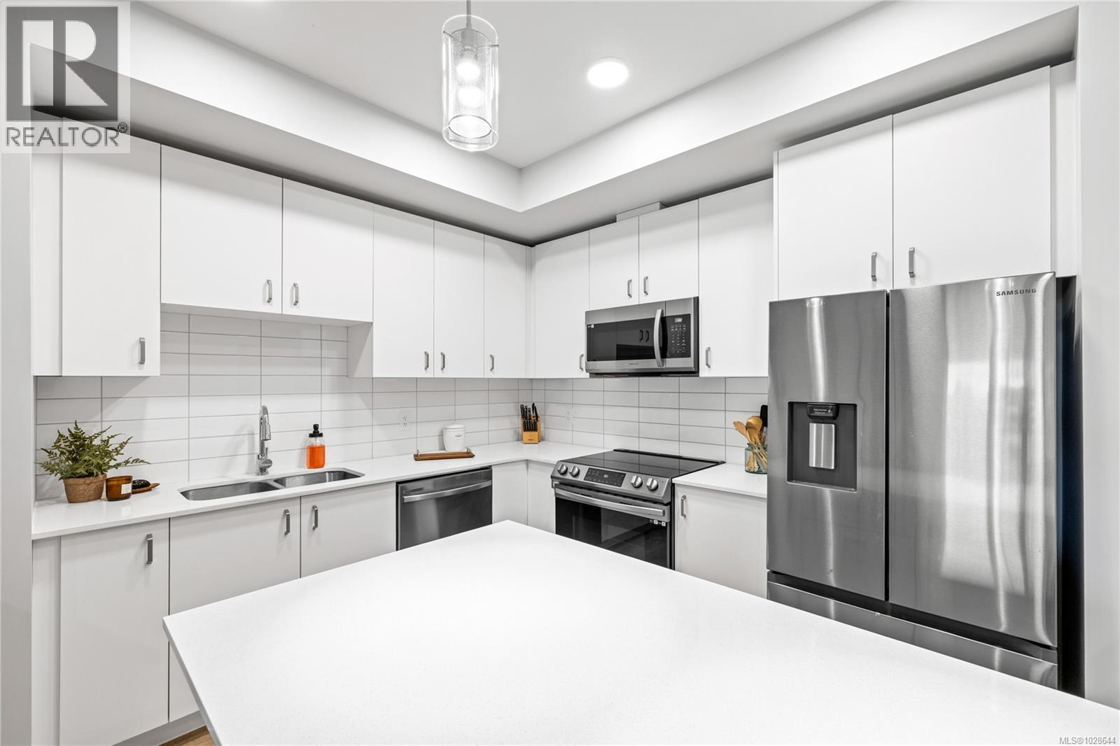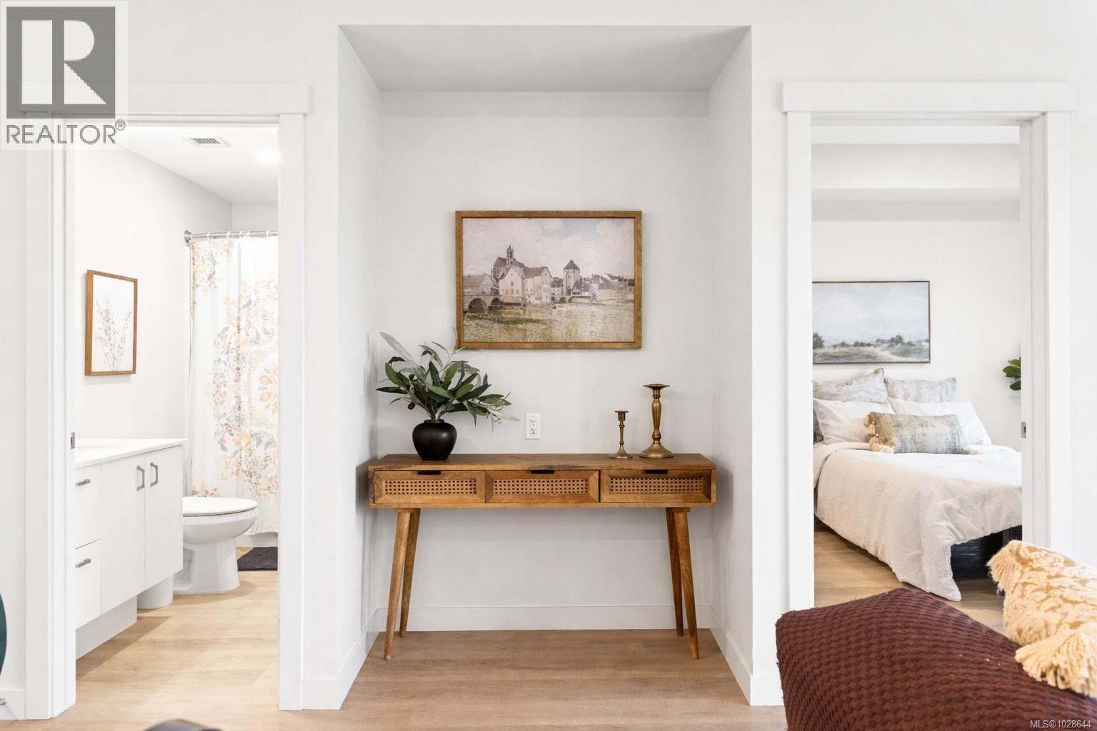 $317.12 MonthlyWelcome to Mosaic, a modern 2 bed/2 bath home built in 2023. This light filled first floor unit offers easy access while sitting above street level for added privacy, with open sightlines to the coastal mountains and a peekaboo ocean view. Oversized windows enhance the airy feel, while the stylish kitchen features quartz countertops, soft close cabinetry and a large island. The open floor plan is ideal for entertaining and extends to a covered balcony perfect for morning coffee or summer evenings. Both bedrooms feature walk-in closets, complemented by an in-suite laundry/storage room plus a separate storage locker. Included is a sought after underground parking stall with opt. EV charging upgrade. Designed with efficiency, the home offers a heat pump for heating/cooling, hot water on demand, triple pane windows and smart water shut off. Steps to Parksville’s main beach, groceries, coffee shops, restaurants and trails, this is central living at its best. Pet/rental friendly. (id:49203)