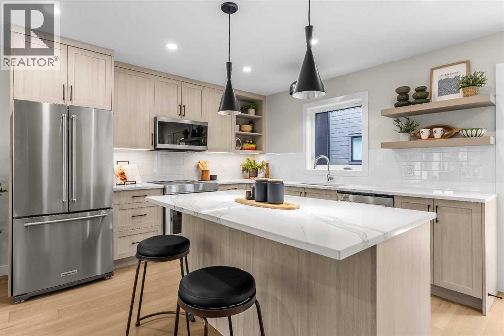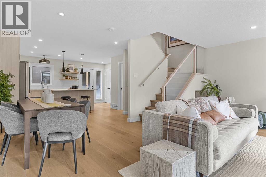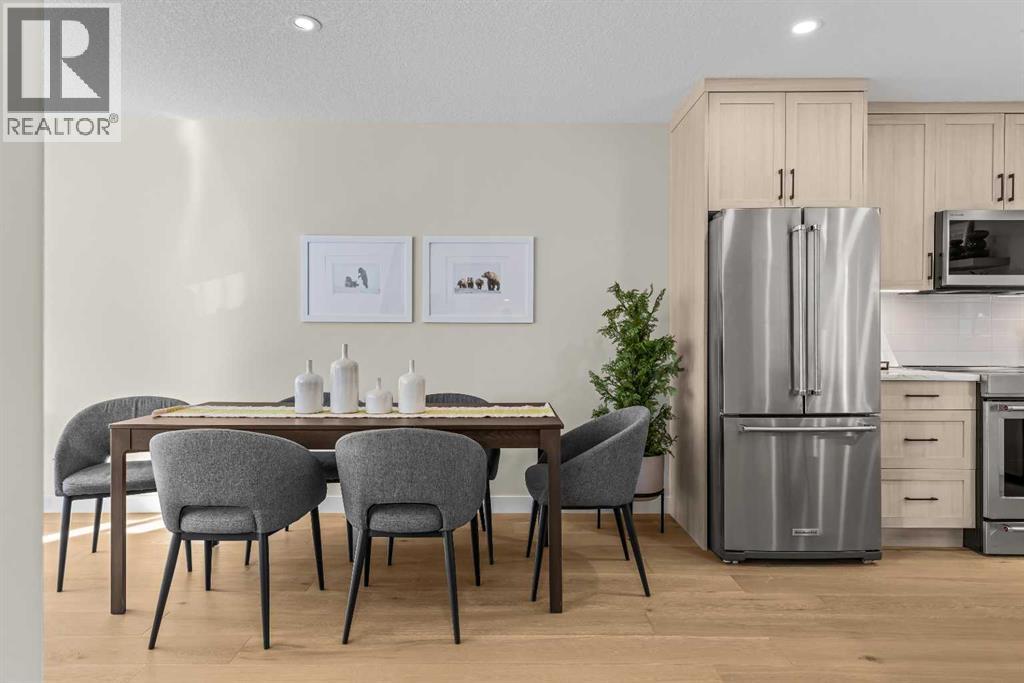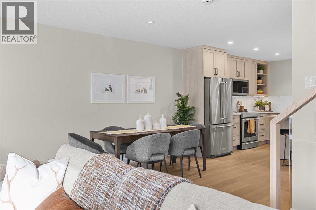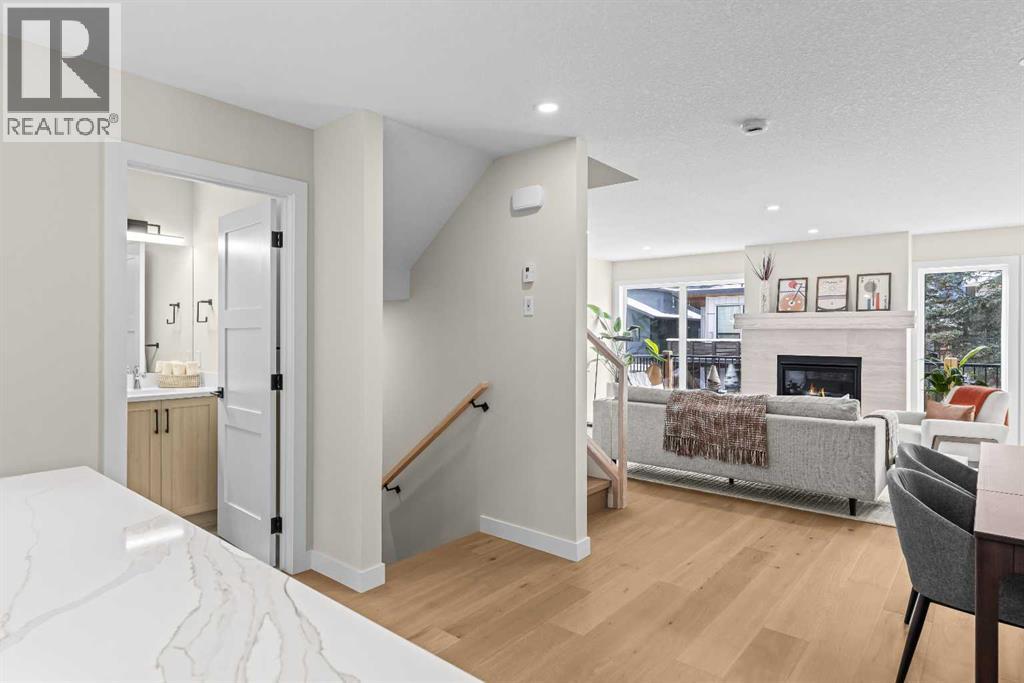 $420 MonthlyIntroducing Bald Eagle Peak Chalets, a collection of brand-new 4 bedroom, 3.5 bath luxury townhomes. Thoughtfully designed to balance comfort, style, and function, these homes offer the ideal combination of spacious layouts, premium finishes, and an exceptional location in the heart of Canmore’s revitalized TeePee Town.Step inside and experience 9’ ceilings, white oak hardwood floors, custom cabinetry, high-end appliances, and triple-pane windows that flood each space with natural light. At the heart of each home is a great room designed for gathering and connection, featuring a welcoming living room centered by a cozy gas fireplace, a dining area perfect for hosting family and friends, and a chef’s kitchen with a large island to gather around. This level also includes a half bath and seamless access to 2 outdoor spaces: a spacious mountain-view patio and a second deck off the kitchen for ideal indoor-outdoor flow.Upstairs, you’ll find 3 bedrooms and 2 full baths, including a comfortable primary suite with a spa-inspired ensuite and generous closet space. The lower level offers a versatile 4th bedroom with its own bath, ideal for guests, extended family, or future rental potential pending town approval.Every home includes a private yard, ample storage, an attached garage, and a dedicated gear storage room for bikes, skis, and mountain equipment.Located steps from Main Street, cafés, restaurants, shops, trails, and parks, this neighbourhood offers some of the best walkability in Canmore. As TeePee Town continues its revitalization, buyers benefit from long-term value and livability.With only a few units remaining, now is a great time to secure a Bald Eagle Peak Chalet. Inquire today for a private showing. (id:49203)