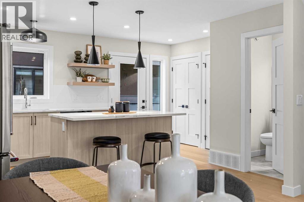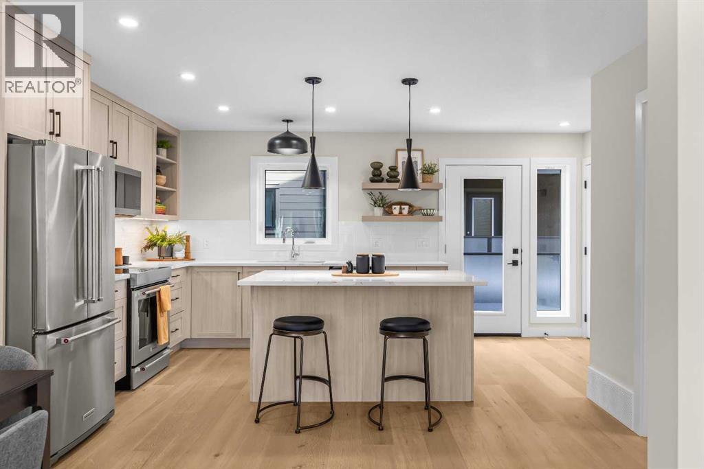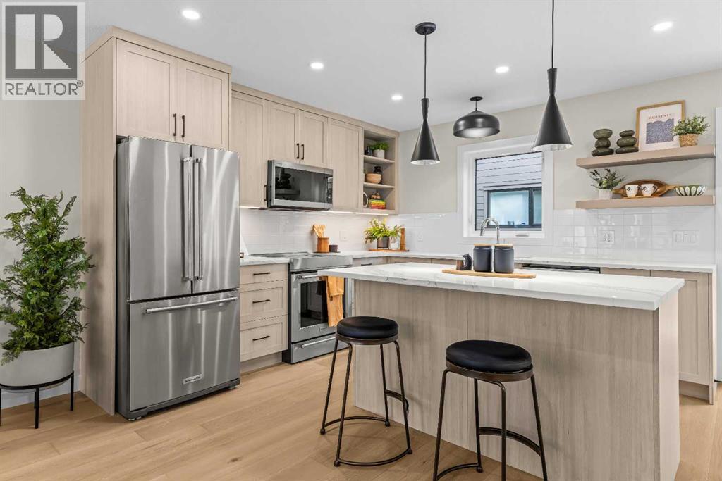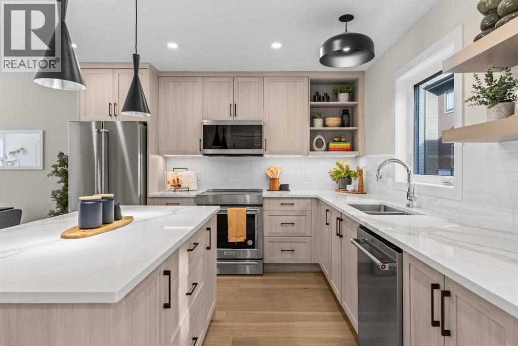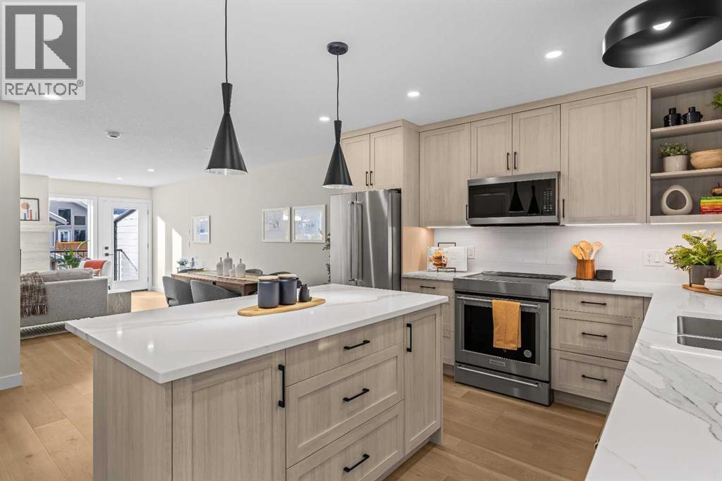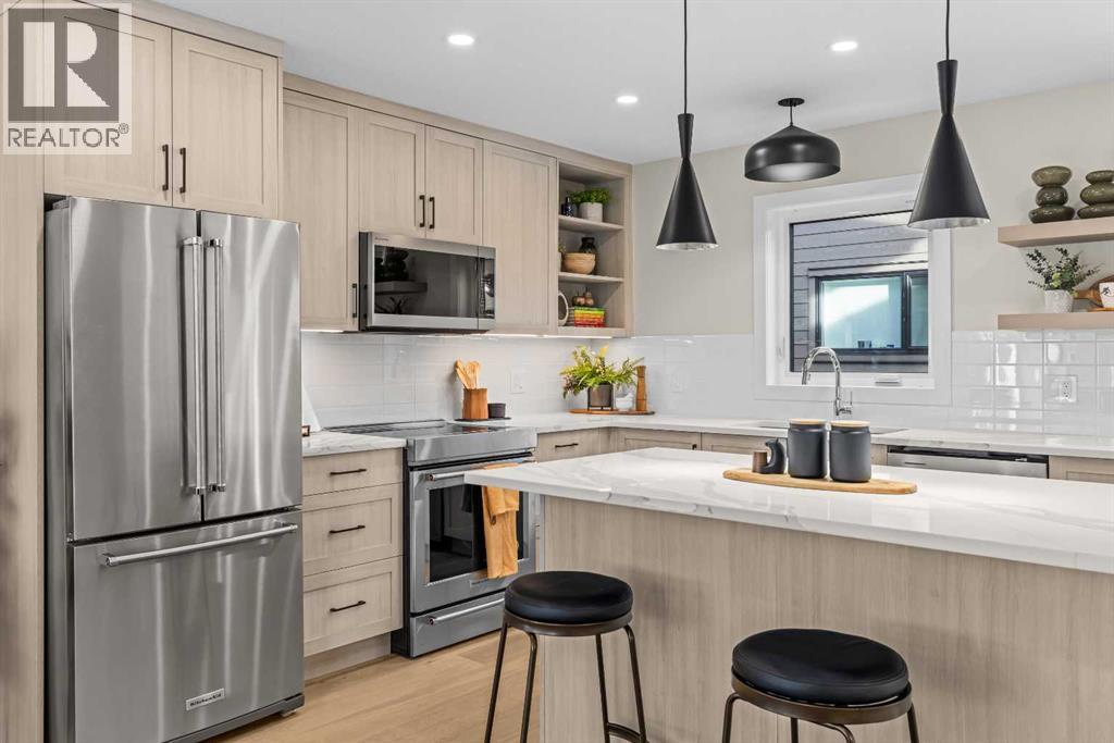 $420 MonthlyIntroducing Bald Eagle Peak Chalets, a collection of brand-new 4 bedroom, 3.5 bath luxury townhomes. Thoughtfully designed to balance comfort, style, and function, these homes offer the ideal combination of spacious layouts, premium finishes, and an exceptional location in the heart of Canmore’s revitalized TeePee Town.Step inside and experience 9’ ceilings, white oak hardwood floors, custom cabinetry, high-end appliances, and triple-pane windows that flood each space with natural light. At the heart of each home is a great room designed for gathering and connection, featuring a welcoming living room centered by a cozy gas fireplace, a dining area perfect for hosting family and friends, and a chef’s kitchen with a large island to gather around. This level also includes a half bath and seamless access to 2 outdoor spaces: a spacious mountain-view patio and a second deck off the kitchen for ideal indoor-outdoor flow.Upstairs, you’ll find 3 bedrooms and 2 full baths, including a comfortable primary suite with a spa-inspired ensuite and generous closet space. The lower level offers a versatile 4th bedroom with its own bath, ideal for guests, extended family, or future rental potential pending town approval.Every home includes a private yard, ample storage, an attached garage, and a dedicated gear storage room for bikes, skis, and mountain equipment.Located steps from Main Street, cafés, restaurants, shops, trails, and parks, this neighbourhood offers some of the best walkability in Canmore. As TeePee Town continues its revitalization, buyers benefit from long-term value and livability.With only a few units remaining, now is a great time to secure a Bald Eagle Peak Chalet. Inquire today for a private showing. (id:49203)