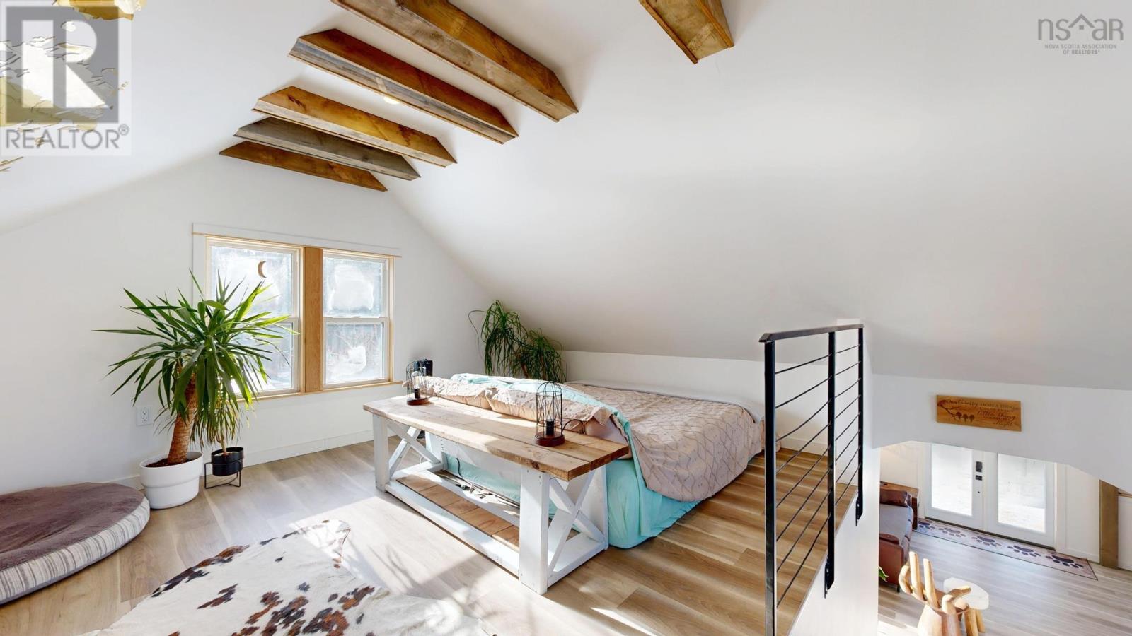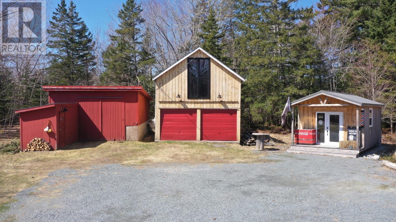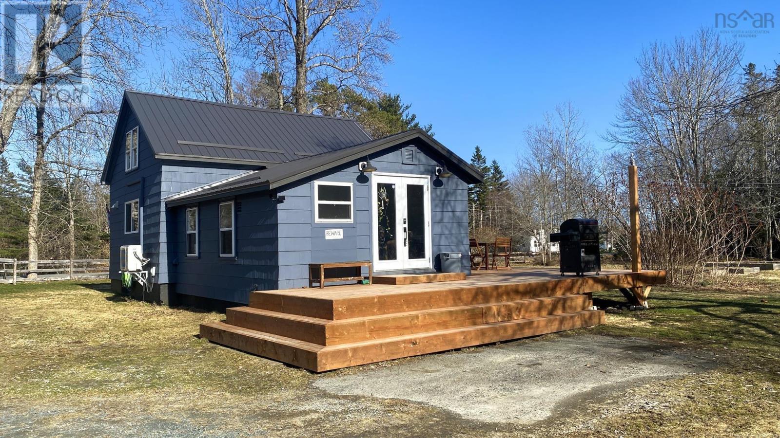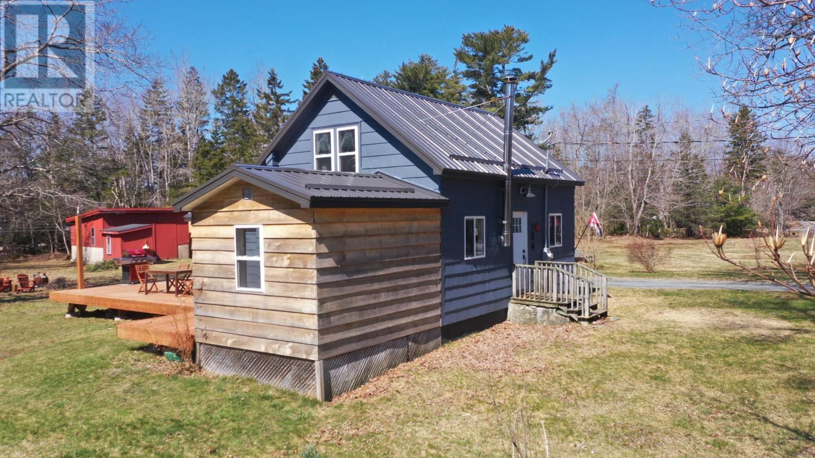 L&S #1296. Set on 2.3 acres, this thoroughly renovated 1,100 sq ft home offers country ambiance just minutes from a marina and the white sands of Beach Meadows Beach. Unassuming from the exterior - stunning on the interior. Major upgrades include new plumbing and wiring, metal roof, spray foam insulation, woodstove and mini split heat pump. The main floor features light-filled open-concept living areas with vaulted ceilings, full bath with soaker tub and tiled shower, and a flexible main floor bedroom or den with access to an expansive deck. An open staircase leads to the loft bedroom above. Special touches include exposed beams, curated light fixtures, vintage interior doors and metal accents. Outside, a trio of fabulous outbuildings share a separate 200 amp electrical service: a two story barn with spacious loft for guests, garage/workshop with 9 1/2 foot ceilings and recently added retail shop - currently operating as The Barefoot Barber. Board & batten with metal roof, the shop comprises 200 sq ft, with covered entry, mini split heat pump, skylight and vaulted ceilings. The grounds are level and partially fenced with ample parking, raised garden beds, and fruit trees including peach, apple, and cherry, along with grape vines. Its a perfect little hobby farm and an ideal setup for anyone wanting to combine home, business and creative pursuits. Conveniently located minutes from Liverpool amenities, including hospital, shopping, museums, and the Astor Theatre. Floor plans available. Most chattels (business and otherwise) may be purchased separately. (id:49203)