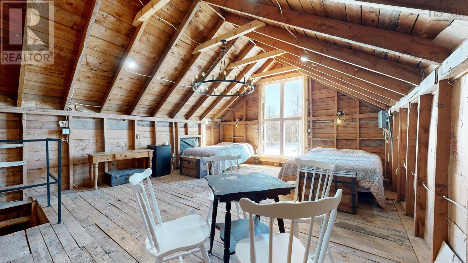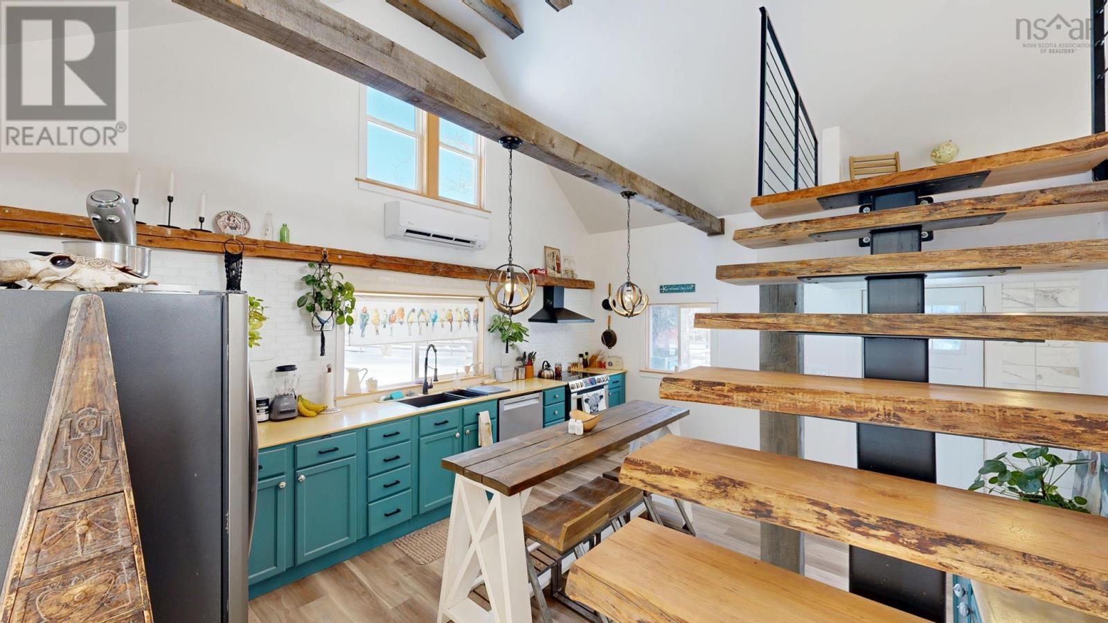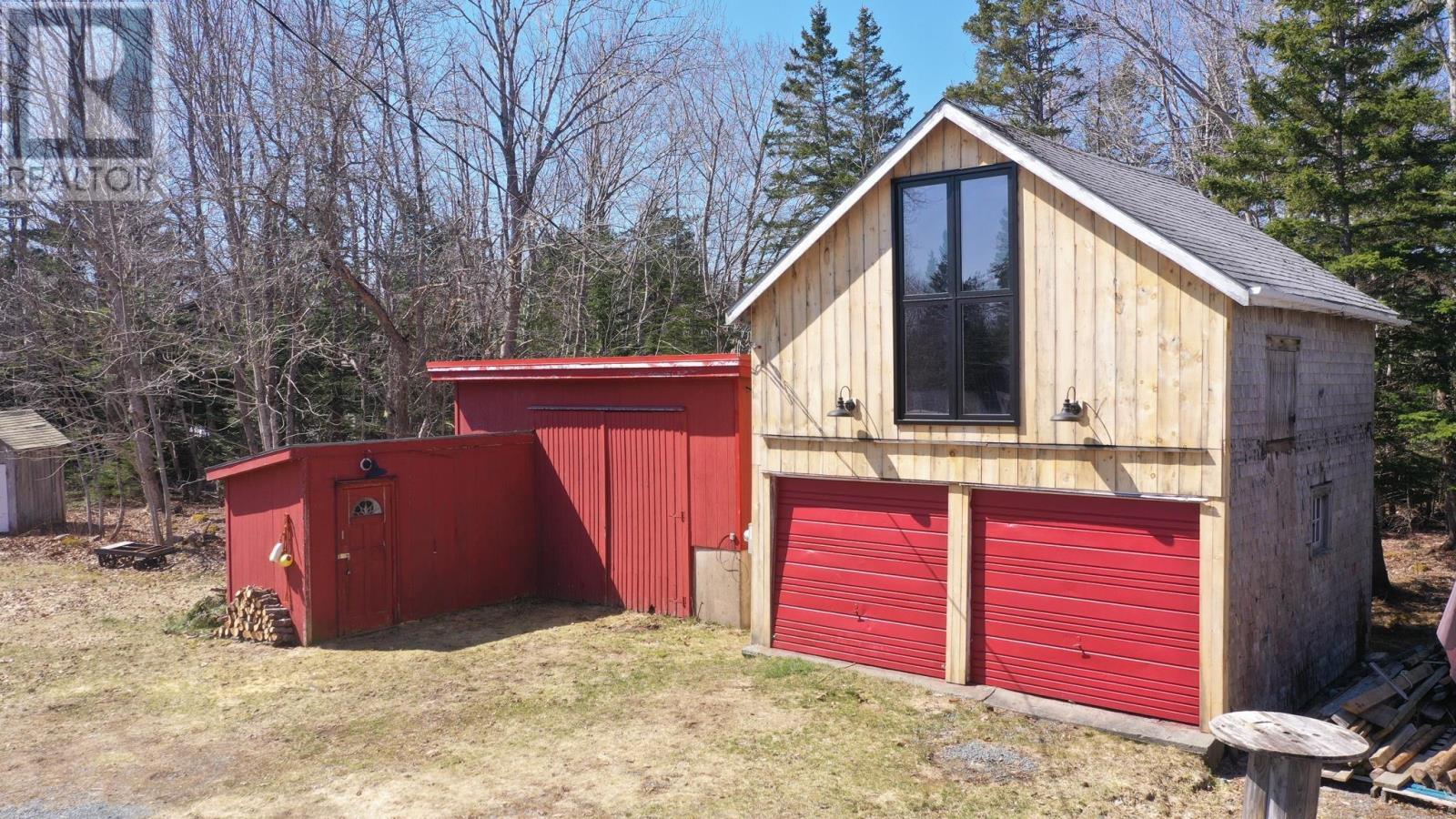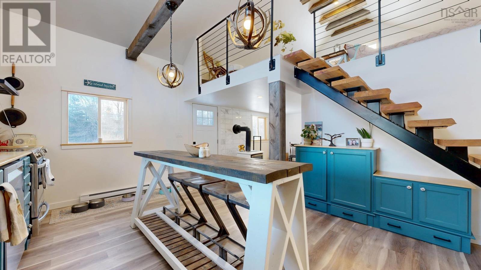 L&S #1296. Set on 2.3 acres, this thoroughly renovated 1,100 sq ft home offers country ambiance just minutes from a marina and the white sands of Beach Meadows Beach. Unassuming from the exterior - stunning on the interior. Major upgrades include new plumbing and wiring, metal roof, spray foam insulation, woodstove and mini split heat pump. The main floor features light-filled open-concept living areas with vaulted ceilings, full bath with soaker tub and tiled shower, and a flexible main floor bedroom or den with access to an expansive deck. An open staircase leads to the loft bedroom above. Special touches include exposed beams, curated light fixtures, vintage interior doors and metal accents. Outside, a trio of fabulous outbuildings share a separate 200 amp electrical service: a two story barn with spacious loft for guests, garage/workshop with 9 1/2 foot ceilings and recently added retail shop - currently operating as The Barefoot Barber. Board & batten with metal roof, the shop comprises 200 sq ft, with covered entry, mini split heat pump, skylight and vaulted ceilings. The grounds are level and partially fenced with ample parking, raised garden beds, and fruit trees including peach, apple, and cherry, along with grape vines. Its a perfect little hobby farm and an ideal setup for anyone wanting to combine home, business and creative pursuits. Conveniently located minutes from Liverpool amenities, including hospital, shopping, museums, and the Astor Theatre. Floor plans available. Most chattels (business and otherwise) may be purchased separately. (id:49203)