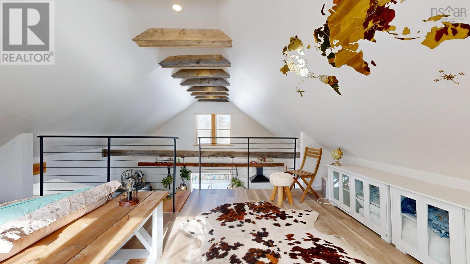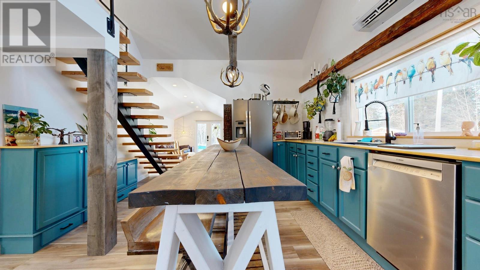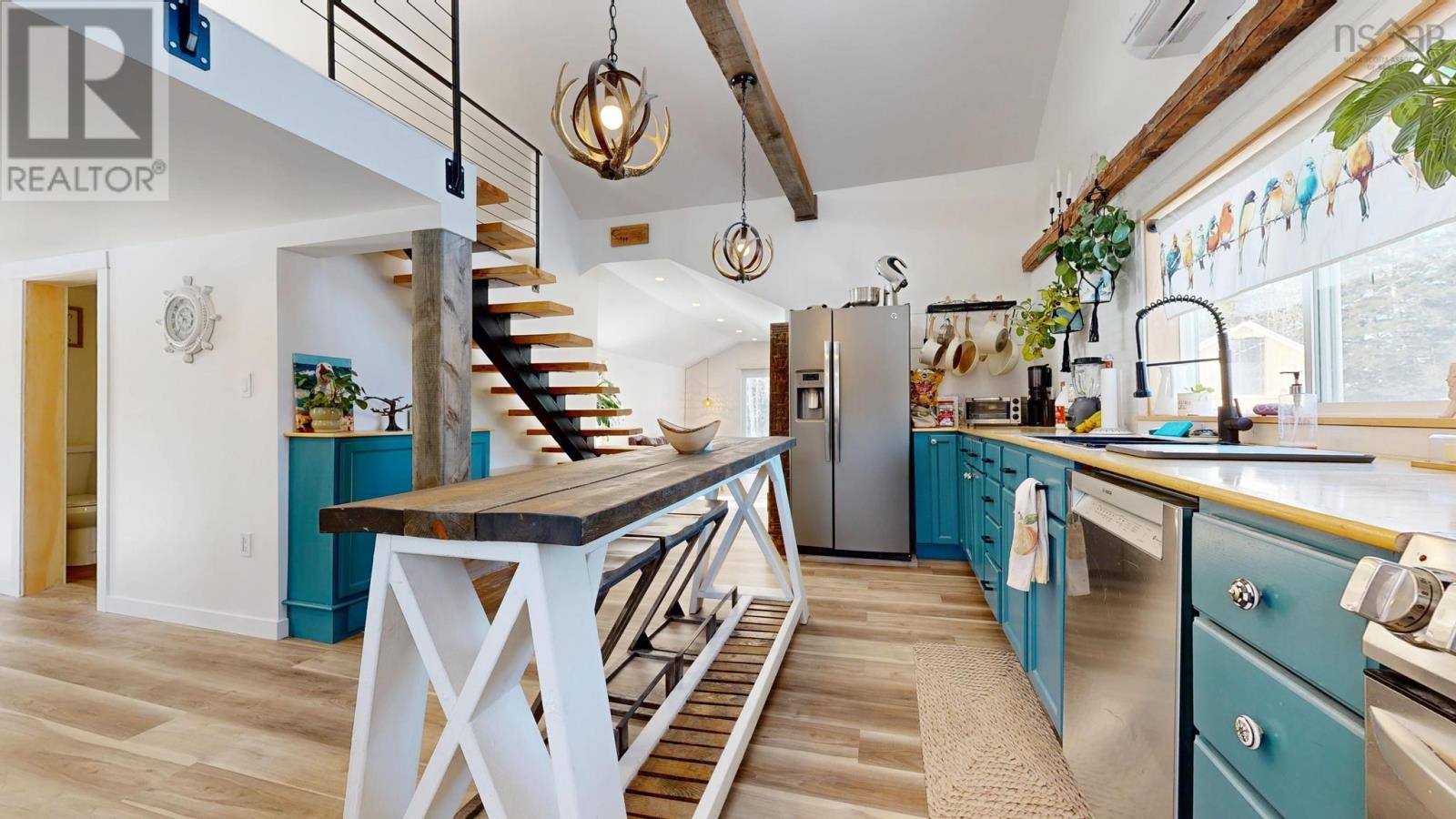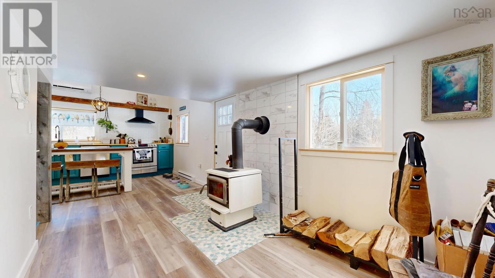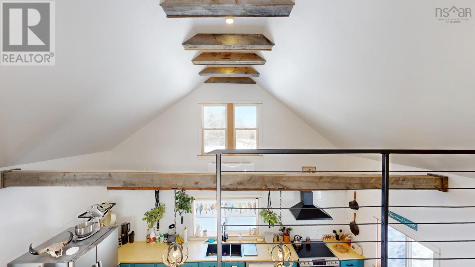 L&S #1296. Set on 2.3 acres, this thoroughly renovated 1,100 sq ft home offers country ambiance just minutes from a marina and the white sands of Beach Meadows Beach. Unassuming from the exterior - stunning on the interior. Major upgrades include new plumbing and wiring, metal roof, spray foam insulation, woodstove and mini split heat pump. The main floor features light-filled open-concept living areas with vaulted ceilings, full bath with soaker tub and tiled shower, and a flexible main floor bedroom or den with access to an expansive deck. An open staircase leads to the loft bedroom above. Special touches include exposed beams, curated light fixtures, vintage interior doors and metal accents. Outside, a trio of fabulous outbuildings share a separate 200 amp electrical service: a two story barn with spacious loft for guests, garage/workshop with 9 1/2 foot ceilings and recently added retail shop - currently operating as The Barefoot Barber. Board & batten with metal roof, the shop comprises 200 sq ft, with covered entry, mini split heat pump, skylight and vaulted ceilings. The grounds are level and partially fenced with ample parking, raised garden beds, and fruit trees including peach, apple, and cherry, along with grape vines. Its a perfect little hobby farm and an ideal setup for anyone wanting to combine home, business and creative pursuits. Conveniently located minutes from Liverpool amenities, including hospital, shopping, museums, and the Astor Theatre. Floor plans available. Most chattels (business and otherwise) may be purchased separately. (id:49203)