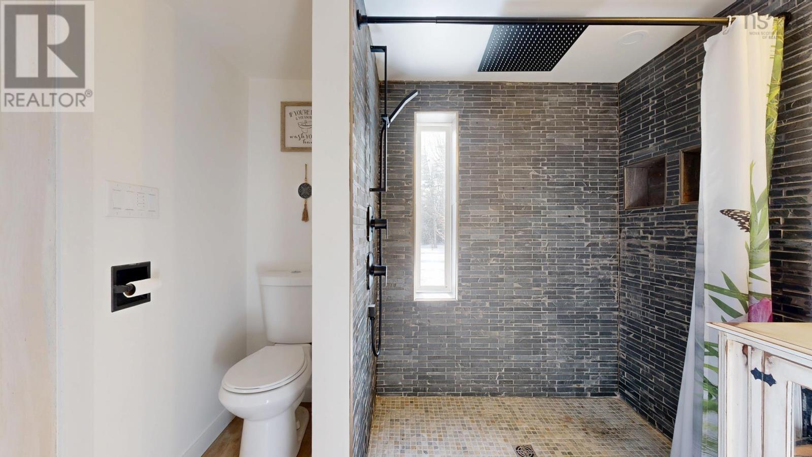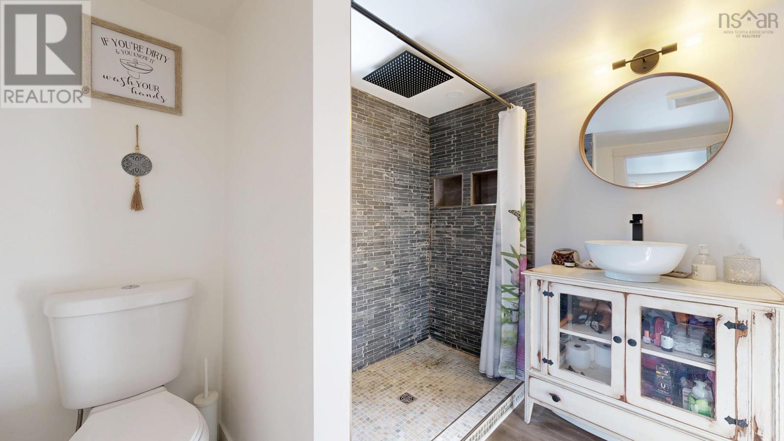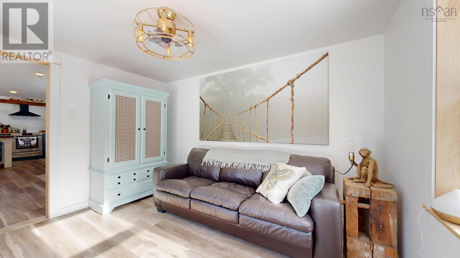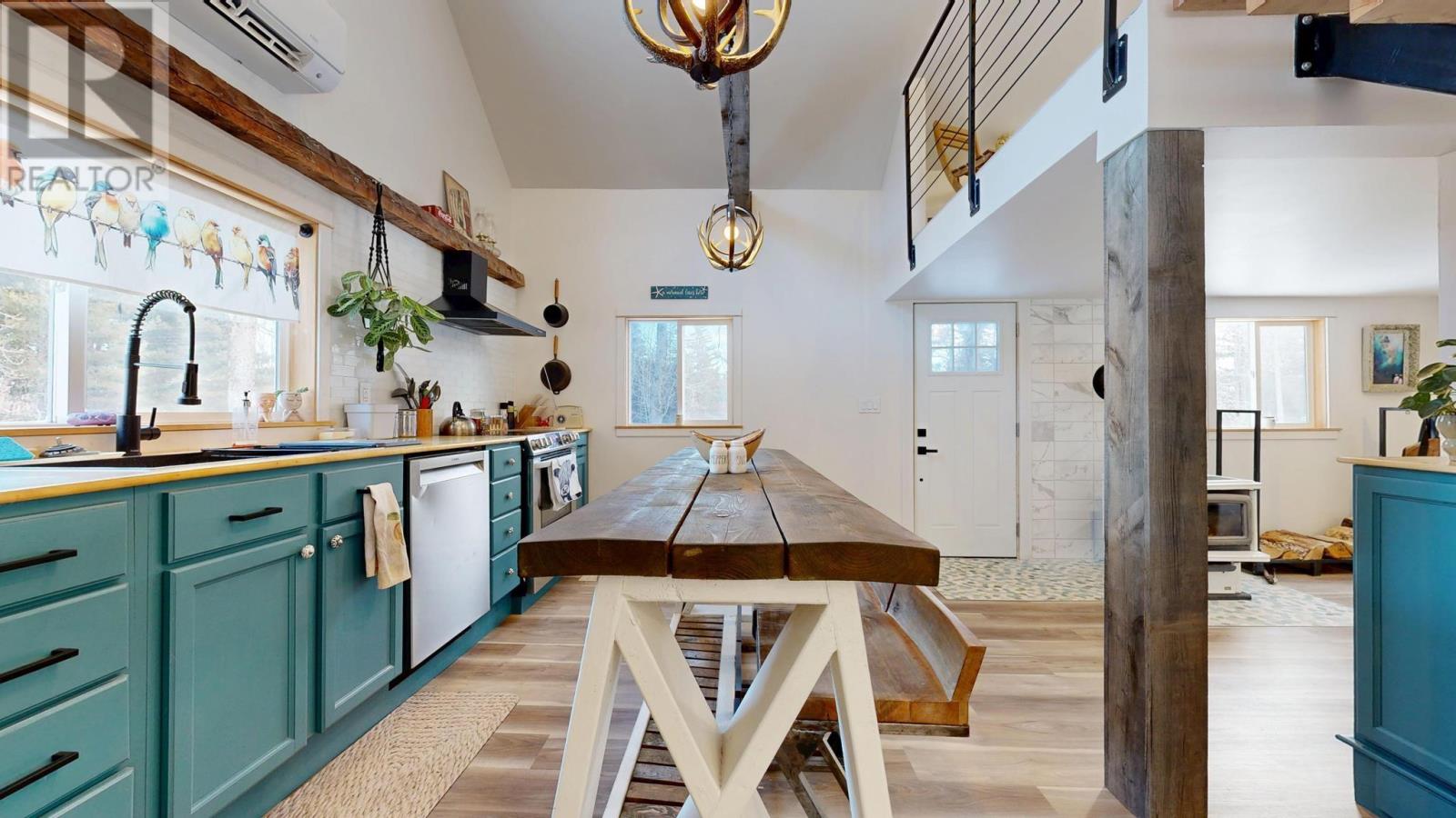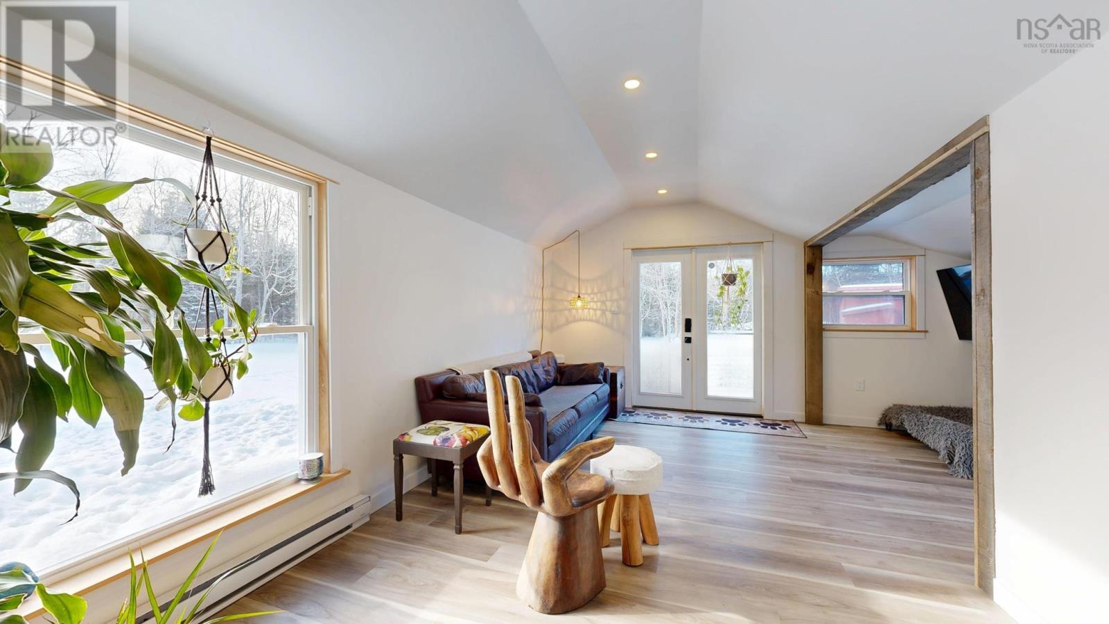 L&S #1296. Set on 2.3 acres, this thoroughly renovated 1,100 sq ft home offers country ambiance just minutes from a marina and the white sands of Beach Meadows Beach. Unassuming from the exterior - stunning on the interior. Major upgrades include new plumbing and wiring, metal roof, spray foam insulation, woodstove and mini split heat pump. The main floor features light-filled open-concept living areas with vaulted ceilings, full bath with soaker tub and tiled shower, and a flexible main floor bedroom or den with access to an expansive deck. An open staircase leads to the loft bedroom above. Special touches include exposed beams, curated light fixtures, vintage interior doors and metal accents. Outside, a trio of fabulous outbuildings share a separate 200 amp electrical service: a two story barn with spacious loft for guests, garage/workshop with 9 1/2 foot ceilings and recently added retail shop - currently operating as The Barefoot Barber. Board & batten with metal roof, the shop comprises 200 sq ft, with covered entry, mini split heat pump, skylight and vaulted ceilings. The grounds are level and partially fenced with ample parking, raised garden beds, and fruit trees including peach, apple, and cherry, along with grape vines. Its a perfect little hobby farm and an ideal setup for anyone wanting to combine home, business and creative pursuits. Conveniently located minutes from Liverpool amenities, including hospital, shopping, museums, and the Astor Theatre. Floor plans available. Most chattels (business and otherwise) may be purchased separately. (id:49203)