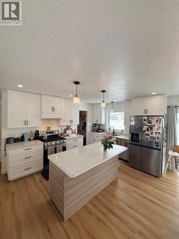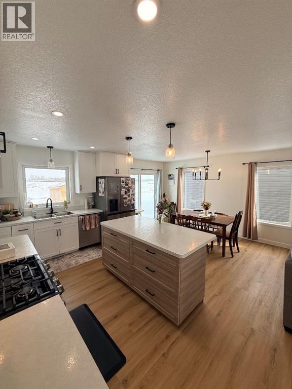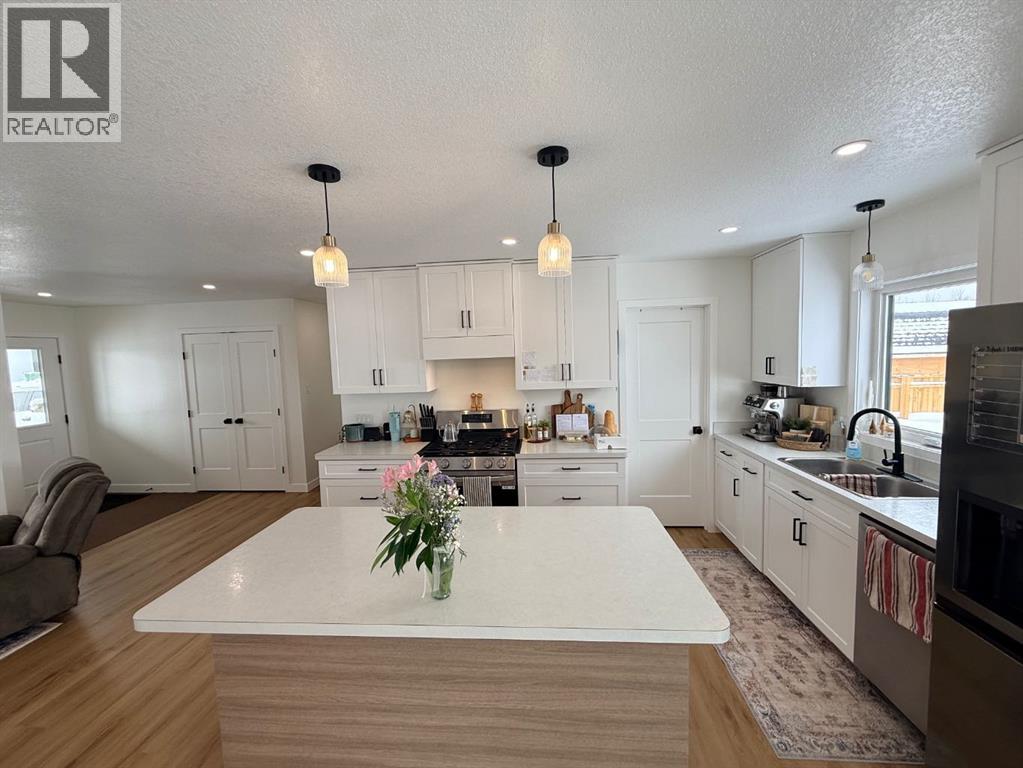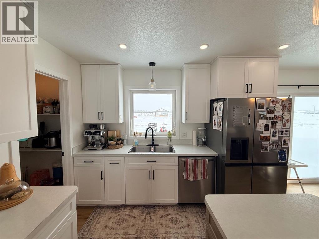 Next to new showhome! This stunning farmhouse-style home offers incredible curb appeal and checks all the boxes from the moment you arrive, featuring a full-length covered front veranda perfect for enjoying quiet mornings or evening sunsets. Step inside to a spacious entrance with a large coat closet, and you’ll immediately notice the modern finishes and abundance of natural light throughout. The main floor showcases a bright, open-concept layout with the kitchen, living, and dining areas seamlessly connected—ideal for everyday living and entertaining. The kitchen is a true highlight, featuring custom cabinetry, a large island with plenty of drawers, a walk-in pantry, gas range, double door fridge, and a window over the sink. The dining area offers direct access to the patio, creating the perfect space to host family and friends. Also on the main floor are two bedrooms and two full bathrooms, including a private primary suite complete with a walk-in closet and ensuite. Downstairs, you’ll find one partially finished bedroom, with room for two more, bathroom rough-in, and a laundry area just off the mechanical room. The rest of the basement is wide open and ready for your personal touch. Outside, the yard is nicely established with a storage shed and close proximity to walking trails. This move-in ready, turn-key home shows like new—come take a look today! (id:49203)