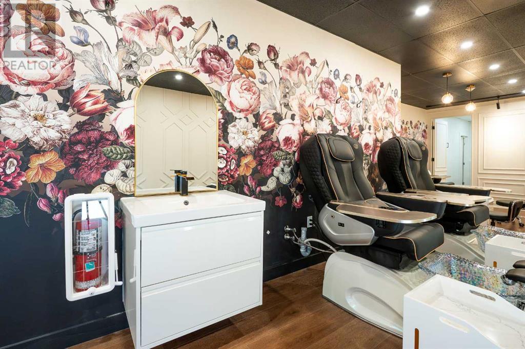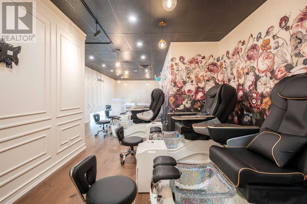 Step into luxury with this fully operational, tastefully designed spa located in a high-traffic area inside Luv 2 Play Grande Prairie. This beautifully curated space offers a seamless blend of modern elegance and functionality, featuring high-end pedicure chairs, nail stations, a stylish front reception with LED lighting, a private washroom with a designer shower, and bold floral feature walls that create a warm, inviting atmosphere. With its top-tier finishes, premium fixtures, and thoughtful layout, this turnkey business is perfect for entrepreneurs looking to start or expand their spa or salon venture. Just unlock the doors and start serving clients—everything is ready to go. Rent is $4,000 plus GST per month, including all utilities. Don't miss this incredible opportunity to own a boutique-style spa that’s a true showstopper. Please contact your favourite REALTOR® for more information. Do not contact employees of Luv 2 Play directly. (id:49203)