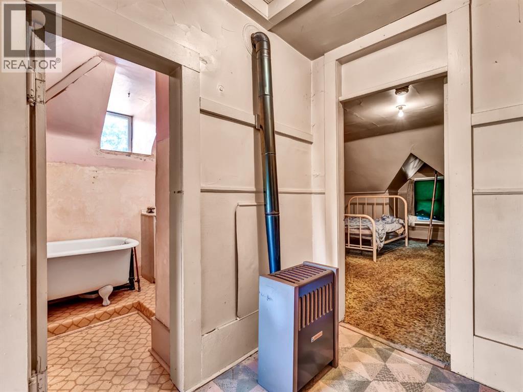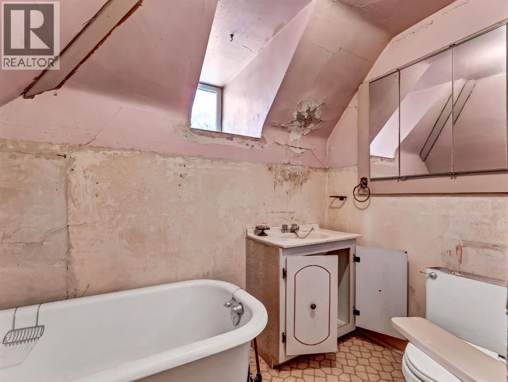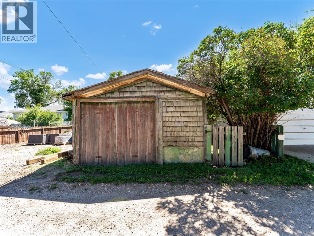 Step back in time and discover the unique charm of this character-filled home, full of history and opportunity. This home is ready for a creative eye and a visionary heart! The main floor, featuring hardwood floors and 10 foot ceilings, hosts 1 bedroom with ensuite bath, an office, spacious living and dining room and a bright, vintage kitchen. On the upper level you'll find a second bedroom and bathroom. The basement offers a 2 piece bath, laundry, ample storage space and a work bench for all your projects. This home is a gem waiting to be polished! Yes, it needs love, but the potential is shining through. Nestled on a large 50x150 foot private lot just minutes from Strathcona Park, pool, schools and walking paths along the river. A large double detached garage and a yard full of greenery complete this great property. Whether you're a seasoned renovator or an old-home enthusiast, this property is waiting to be brought back to life! Book your private showing today! (id:49203)