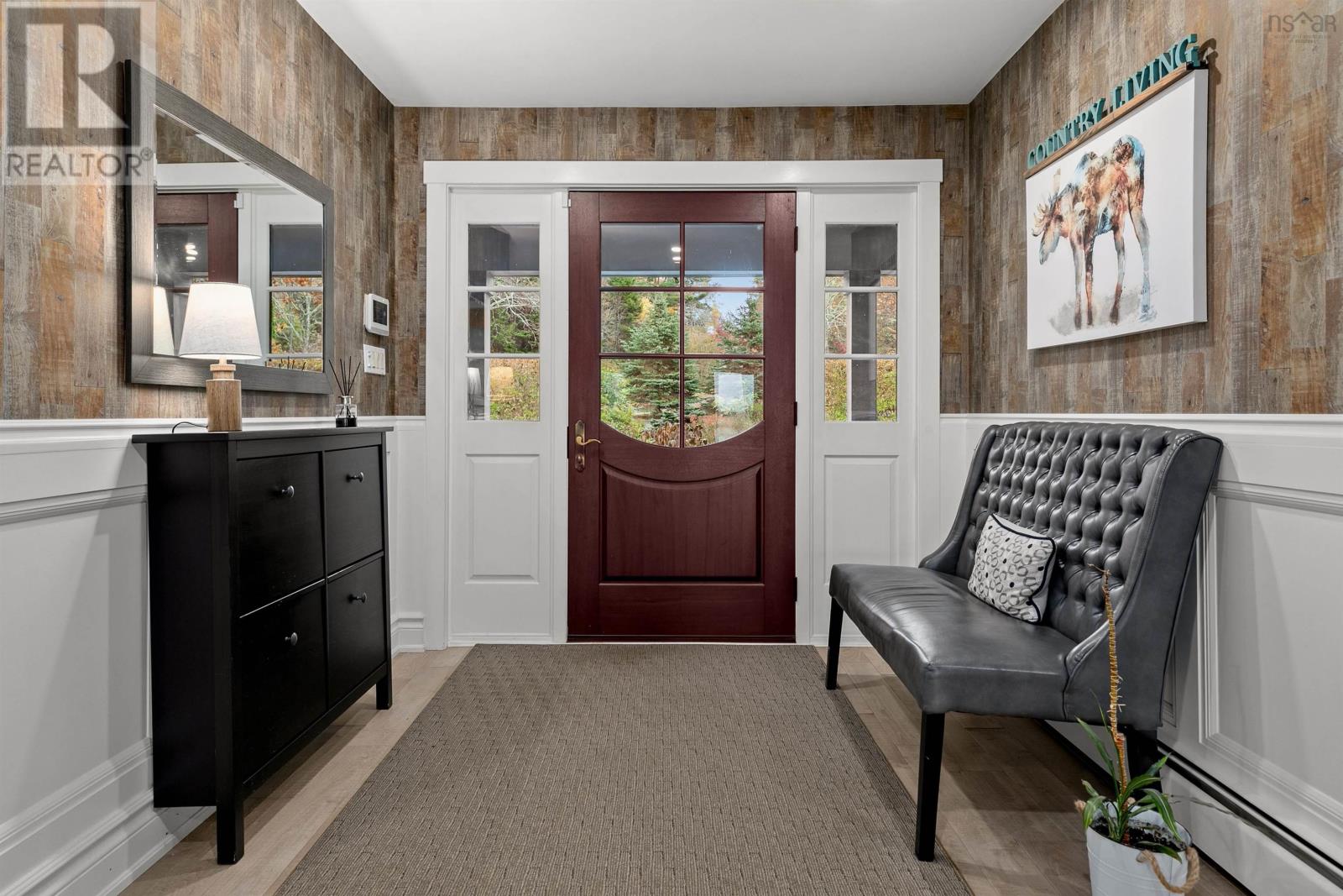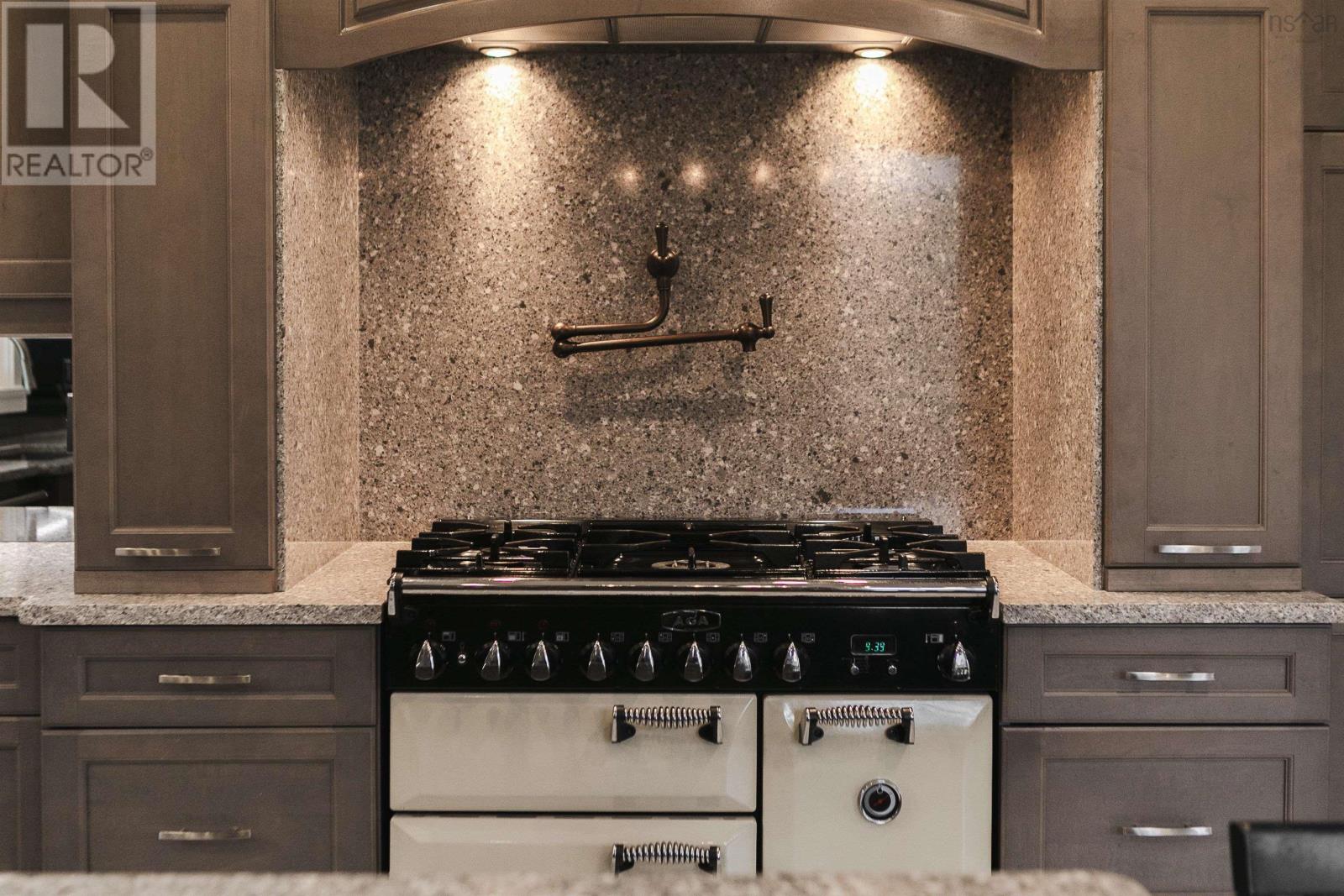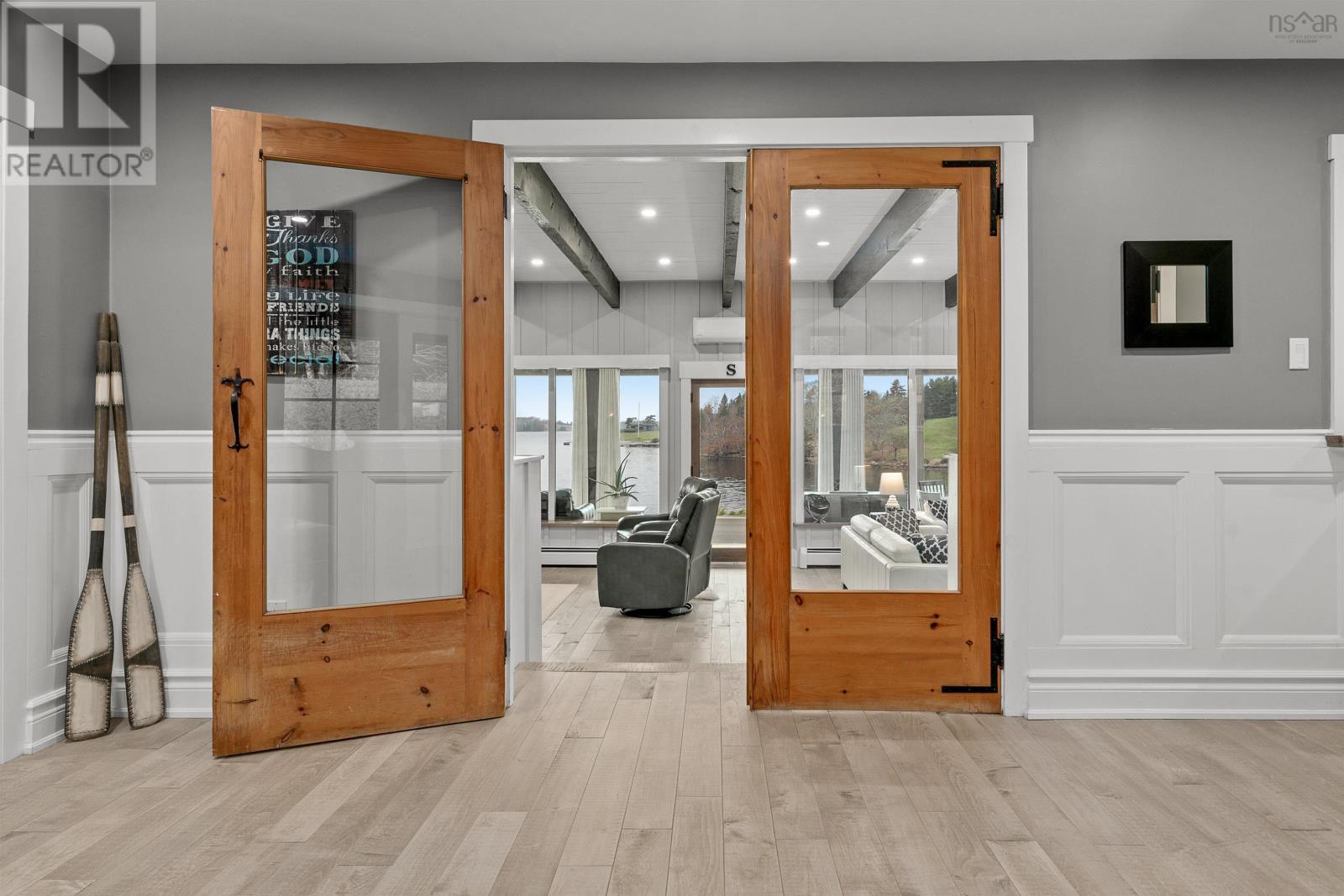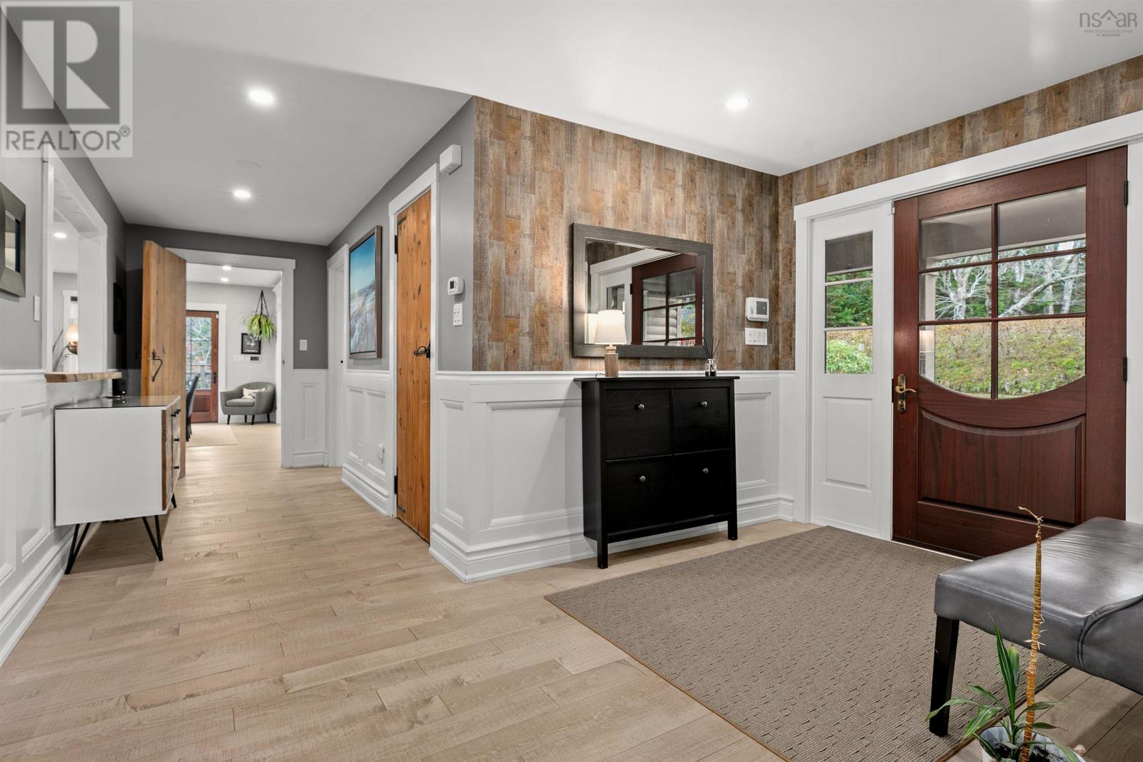 A completely re-imagined oceanfront estate with 375 ft of protected deep-water frontage on one of Nova Scotias most coveted bays. Set on approx. 2.4 private acres with manicured grounds and a gated entrance, this impressive bungalow offers over 4000sqft of refined one-level living, professionally rebuilt with magazine-worthy finishes and extensive upgrades throughout. Designed to embrace its setting, the home is perfectly oriented westward to capture panoramic ocean views and year-round sunsets that paint the horizon nightly. A rare combination of luxury, privacy, and true Atlantic Canada coastal living, welcome to The Lodge at St. Margarets Bay... The Great Room features a dramatic stone fireplace and full wall of ocean views, complemented by a stunning 4-season shoreline room with dual heat pumps. The chefs kitchen showcases a full renovation including an AGA range, built-in wall oven + warming drawer, Miele coffee centre, quartz counters, custom cabinetry, pot-lights, and walk-in pantry, perfect for elegant entertaining. With 4 bedrooms, 6 baths and a separate guest house with water/septic, the suite layout provides ideal privacy for family or visitors. Major improvements include hardwood throughout the main level, upgraded lighting (100+ pot lights), new baths + walk-in closets, re-designed laundry/pantry, wainscotting, accent finishes, and exterior upgrades including hand-brushed stain, landscaping + view enhancement, and new heat pumps (4 total). Premium waterfront features include a deep-water wharf + mooring, oceanside stone patio + fire area, and safe water entry for paddling and swimming. Additional highlights: detached double garage, hurricane-rated roof, in-floor heat, wired generator panel, high-speed internet, UV water treatment, updated septic, and proximity to Peggys Cove and Halifax amenities. A rare coastal legacy, where luxury, privacy, and oceanfront adventure converge. (id:49203)