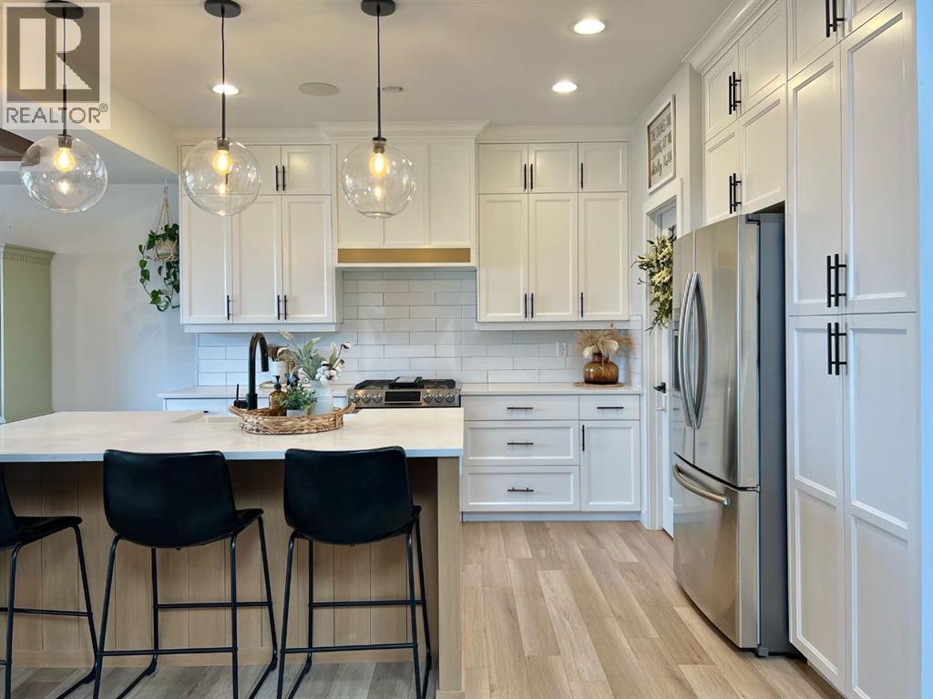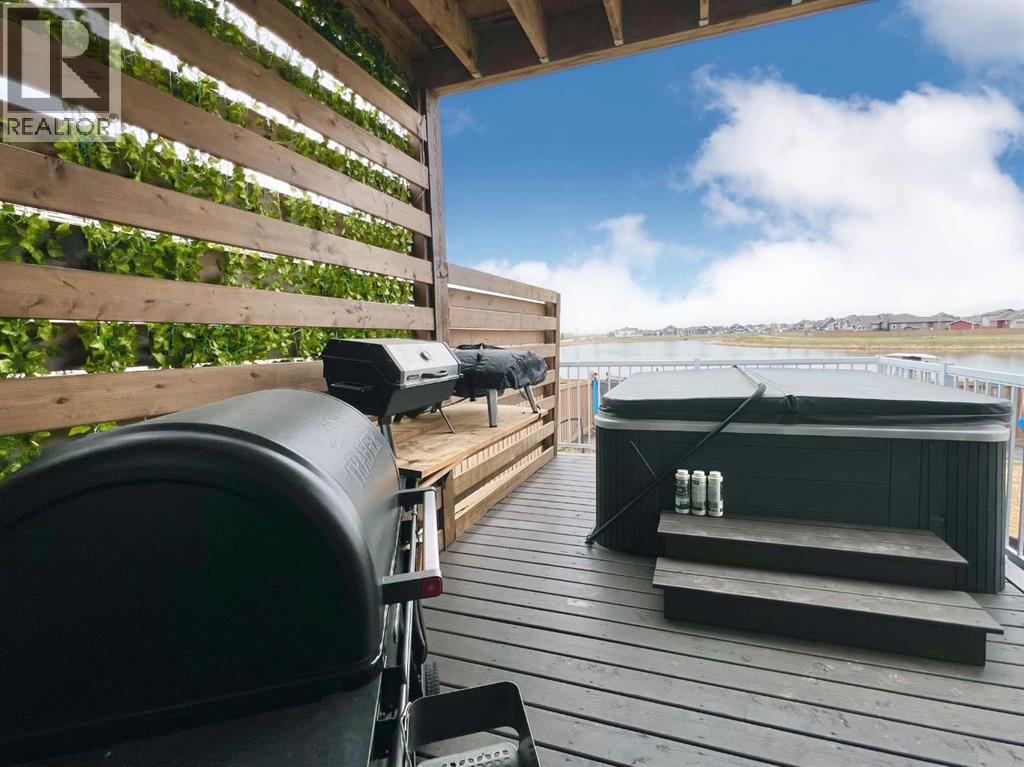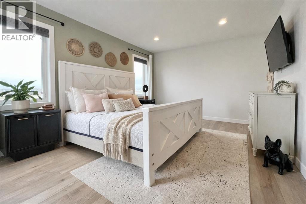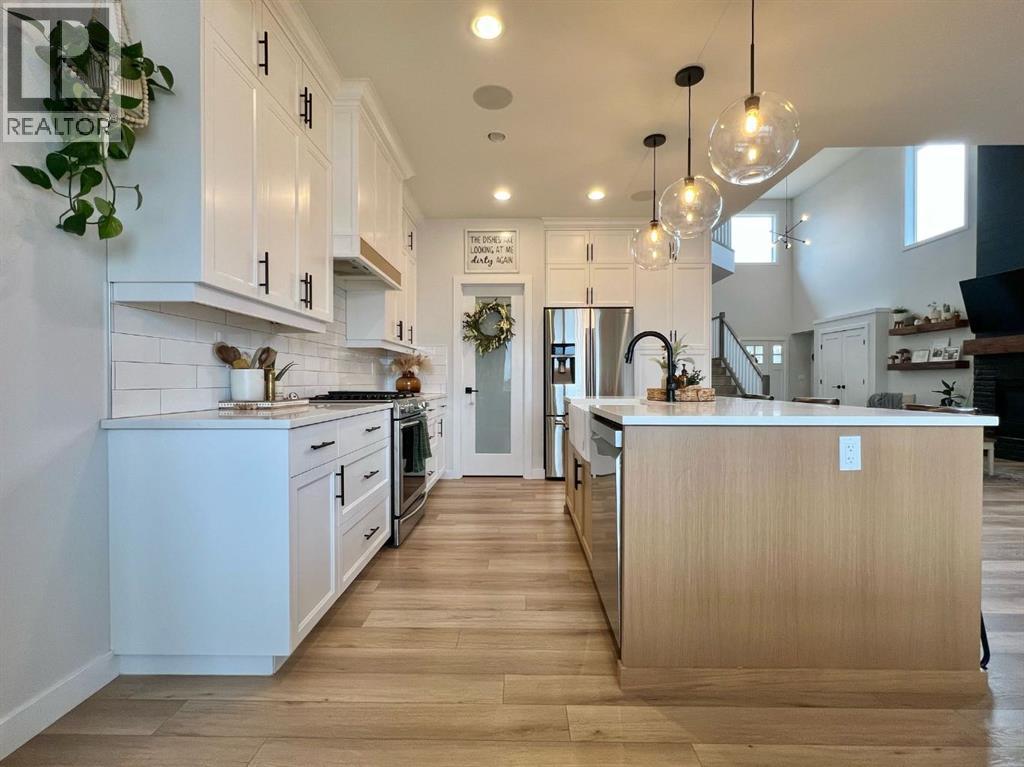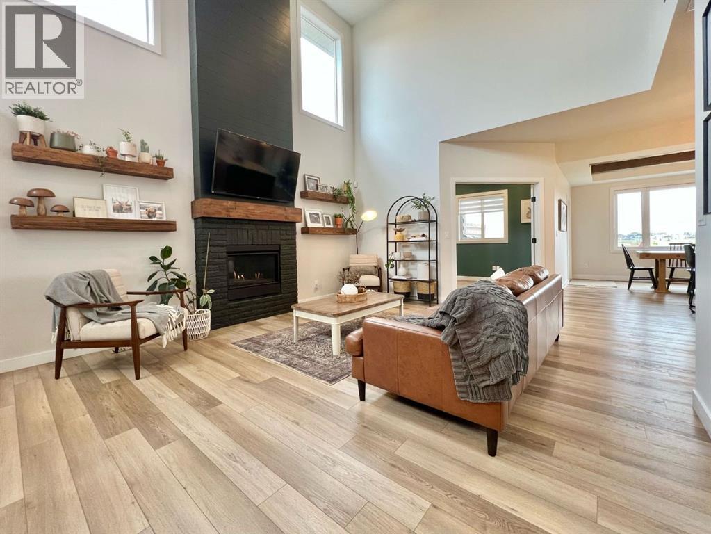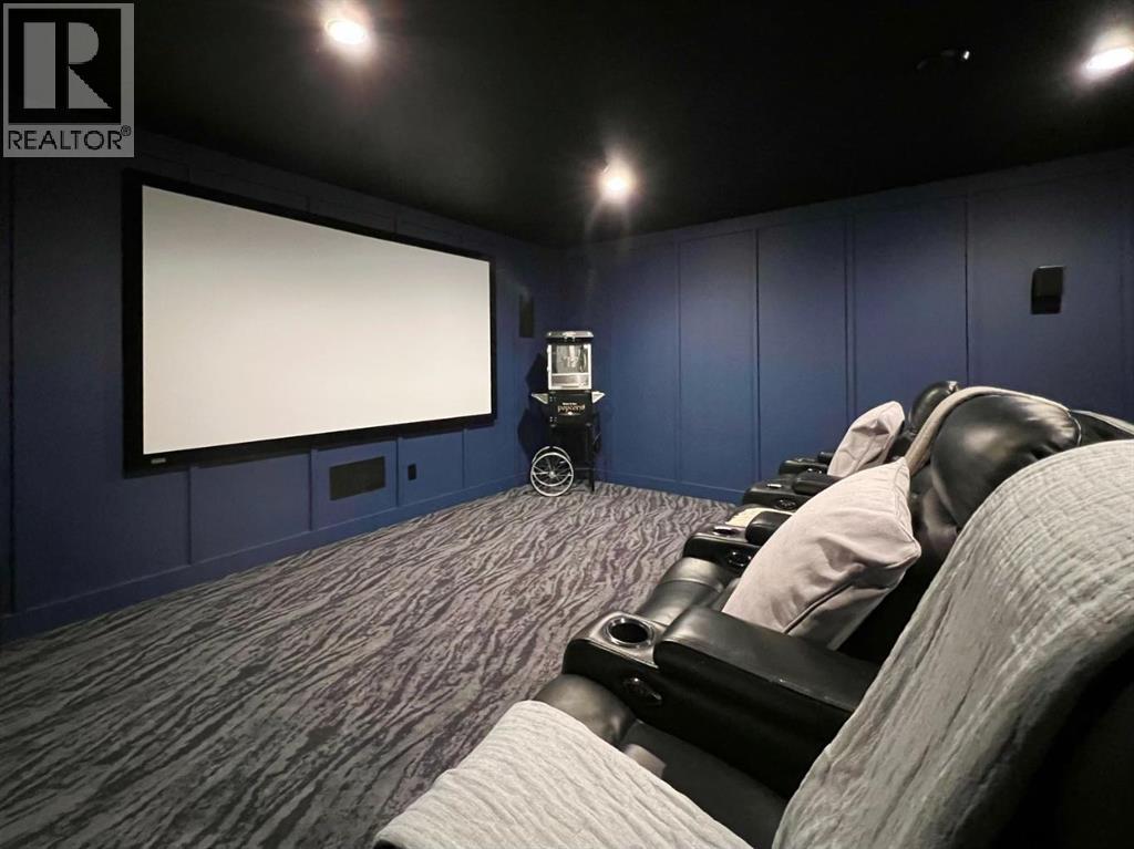 Welcome to Whispering Ridge… where luxury meets lifestyle on the pond.This stunning five-bedroom home with a dedicated office, gym, and fully equipped theatre room was designed to impress at every turn. Backing directly onto the water, the views create a peaceful backdrop you’ll enjoy year-round.Step inside to a soaring entryway that immediately sets the tone, anchored by a dramatic floor-to-ceiling fireplace. Engineered hardwood flooring flows throughout the main living spaces, complemented by quartz countertops, a gas range, and a beautifully moody butler’s pantry that adds both function and flair. Built-in speakers carry your favorite playlists seamlessly throughout the home.The primary suite is big, beautiful, and thoughtfully designed… complete with a charming Juliet balcony overlooking the pond. The spa-inspired ensuite features floor-to-ceiling tile, dual showerheads, a bench, double vanity, and a dedicated makeup station. Two additional bedrooms are generously sized, and convenient main-floor laundry adds everyday ease.Downstairs, the theatre room is ready for movie night with all equipment included, plus a stylish wet bar that makes entertaining effortless.Outside, the lifestyle continues. Enjoy a private putting green, a powered shed, RV parking, and a heated garage. With central air conditioning included, comfort is covered in every season.This is more than a home… it’s a full experience in one of Whispering Ridge’s most desirable pond-side locations. (id:49203)