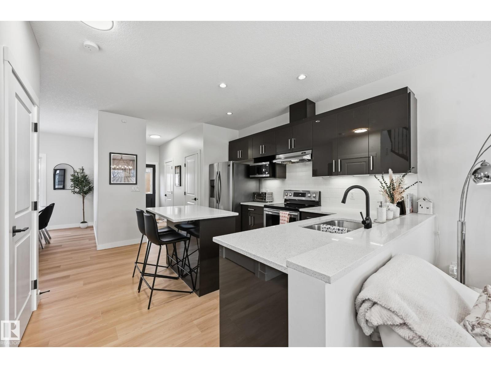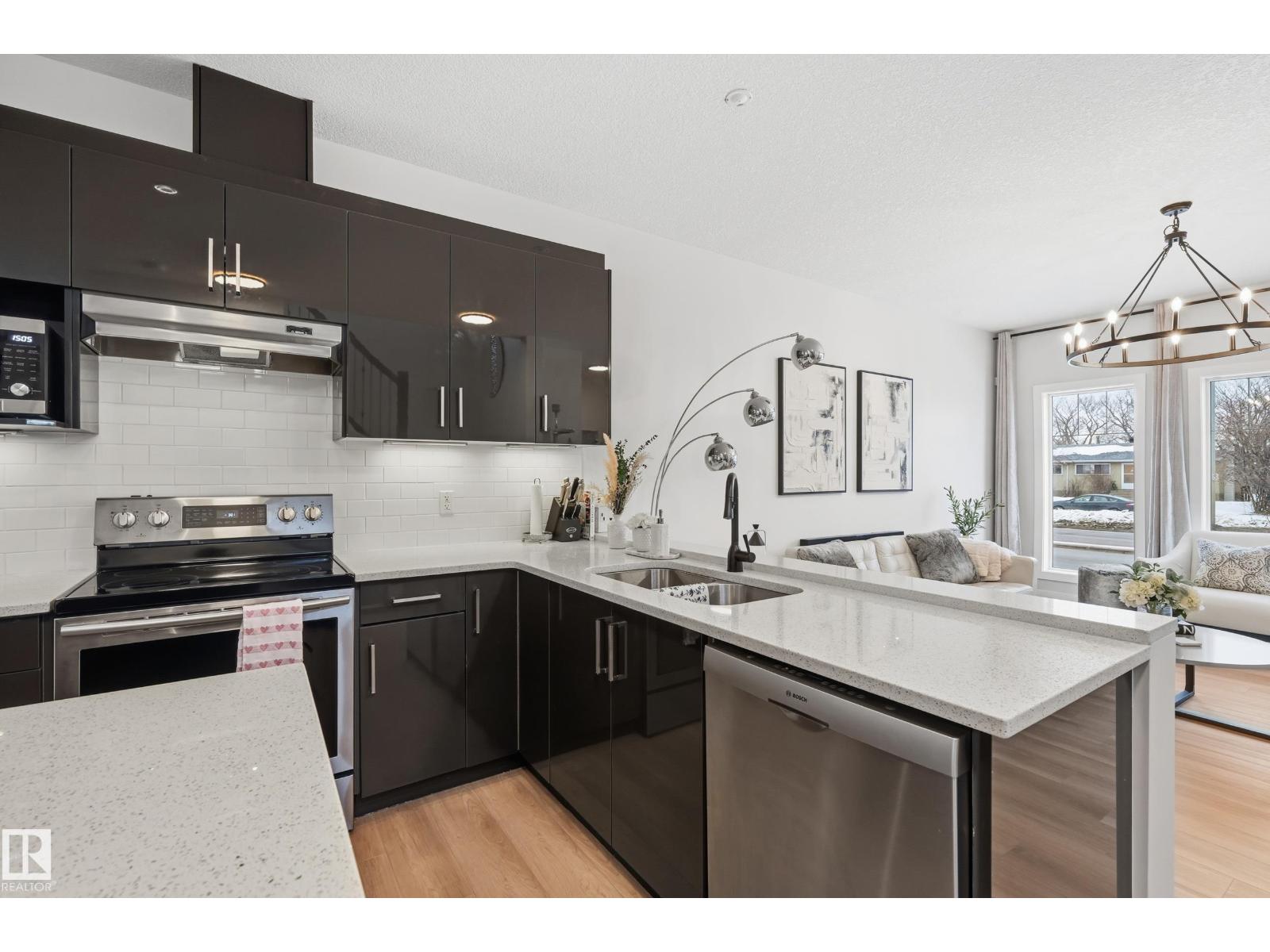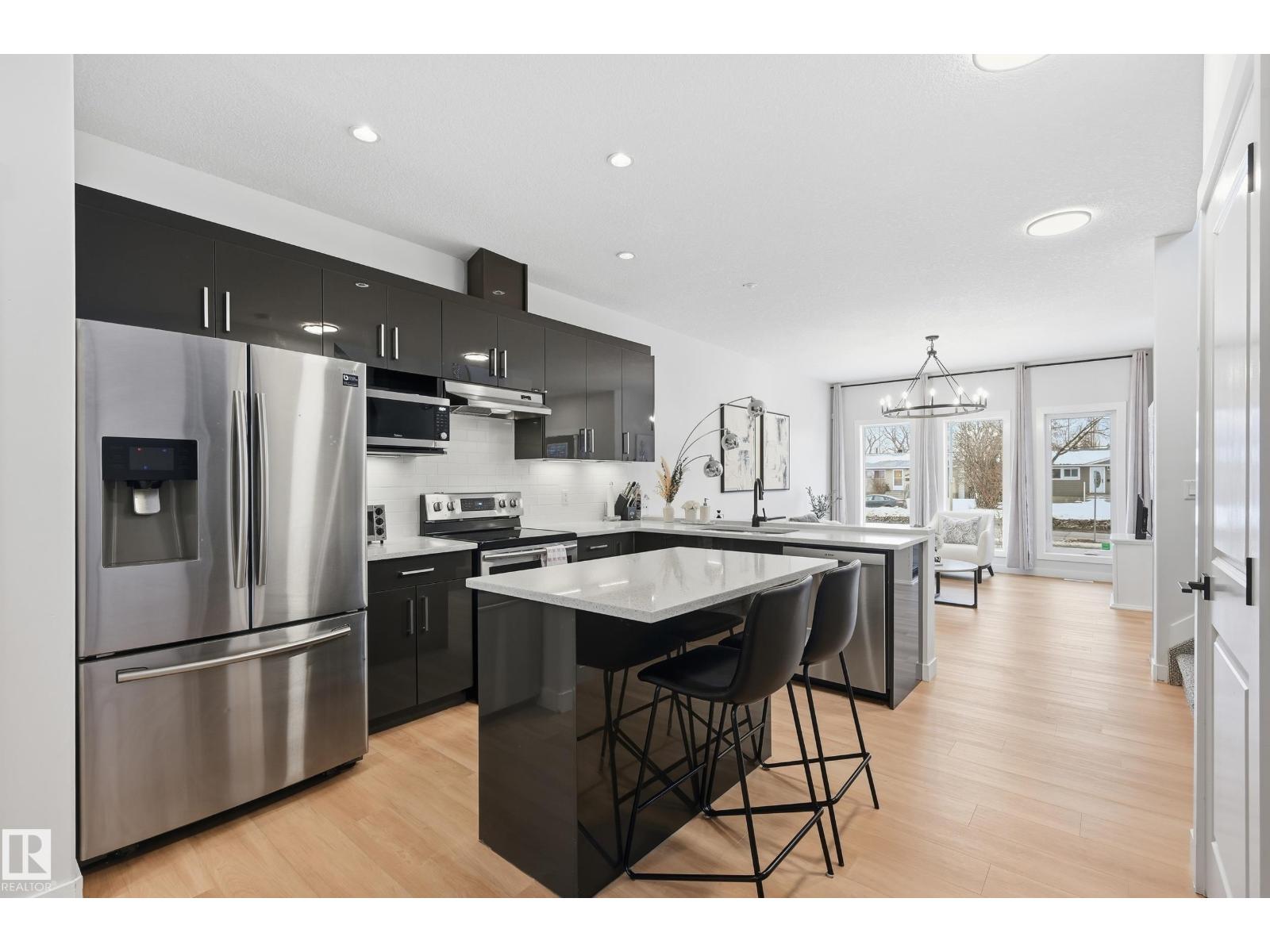Discover exceptional value in this stylish half duplex located in the established, family-friendly community of High Park—just 15 minutes to downtown and minutes from the Ice District, West Edmonton Mall, MacEwan University, NAIT, schools, parks, and transit. Offering 4 spacious bedrooms and 3.5 bathrooms, this home is perfect for families or savvy investors. The bright, open-concept main floor is designed for modern living, featuring a sleek kitchen with stainless steel appliances and a large island ideal for entertaining. The fully finished basement includes a private entrance, generous bedroom, full bath, and living area with kitchen rough-ins—an excellent opportunity for rental income or extended family. Enjoy central A/C and a quiet backyard with patio and fire pit, perfect for relaxing or hosting guests. Don't miss this rare opportunity! (id:49203)