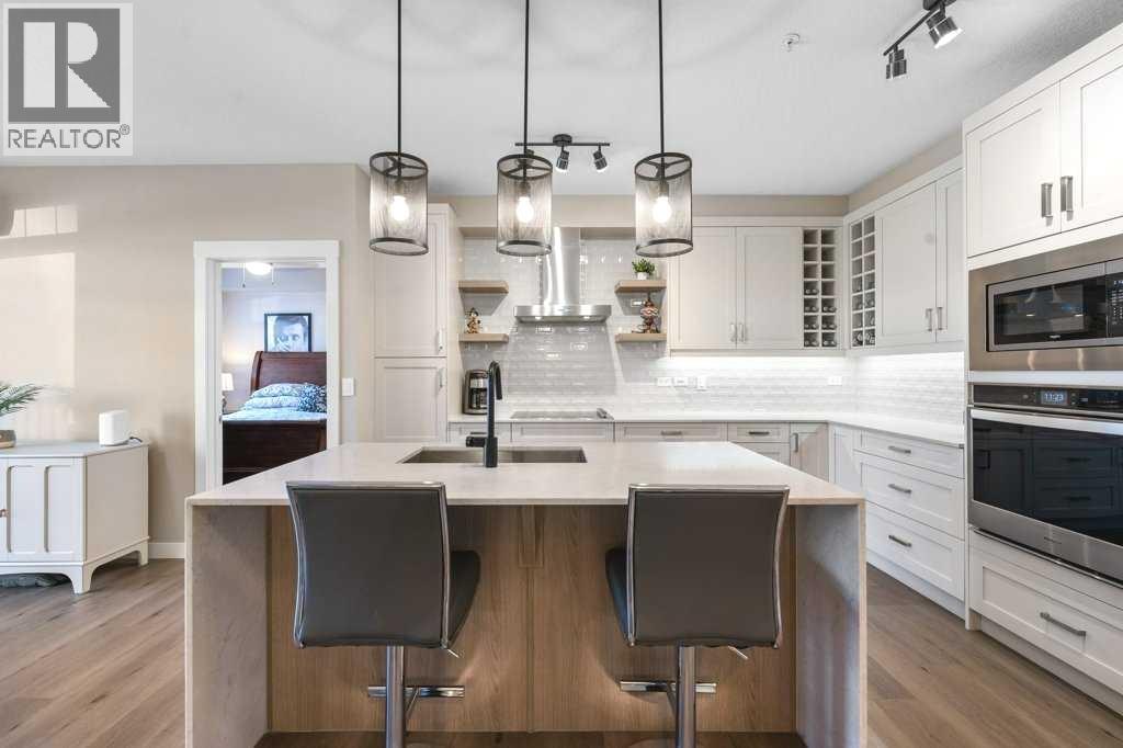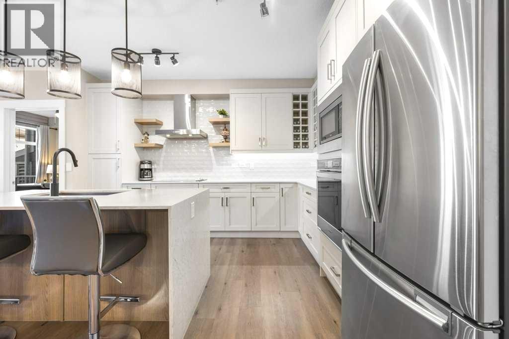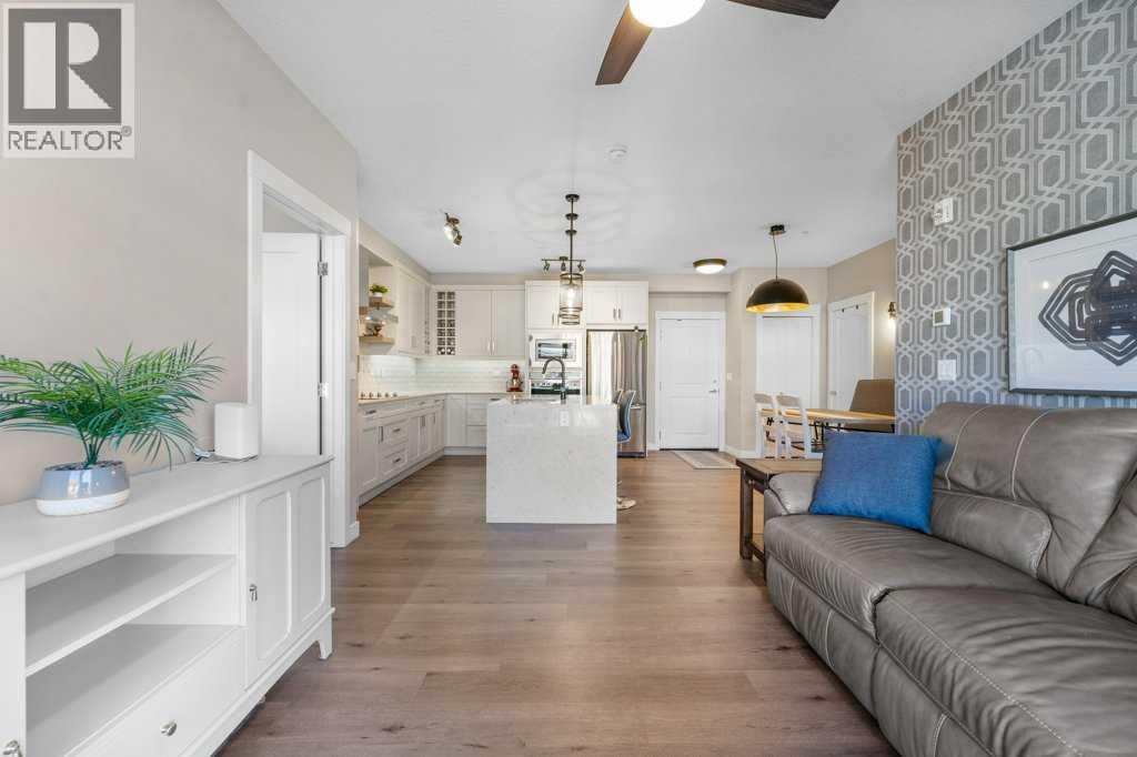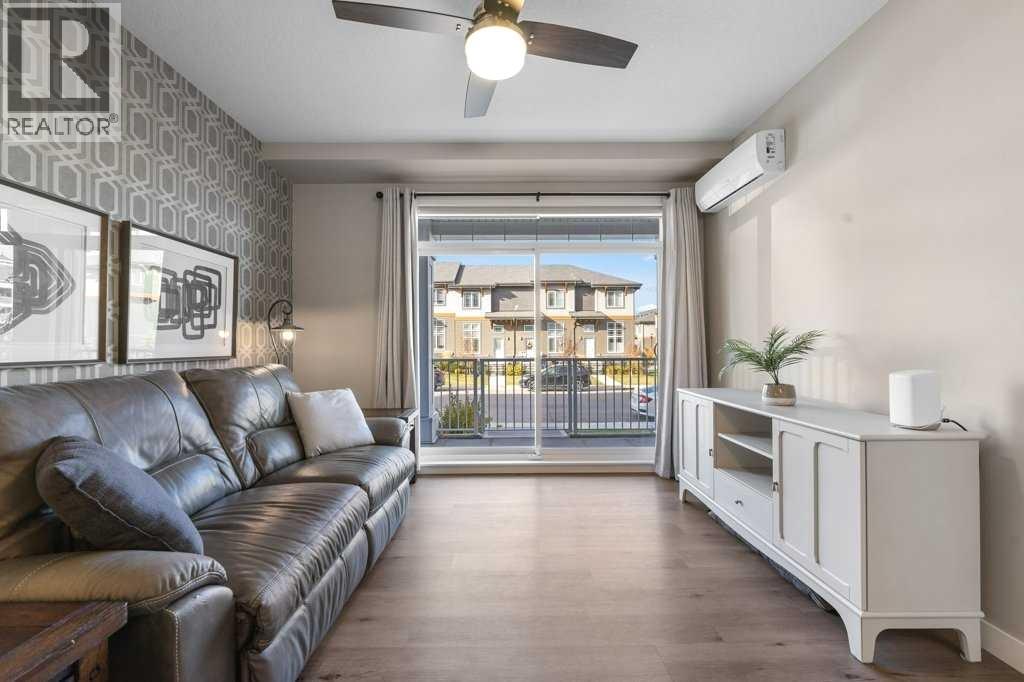 **OPEN HOUSE: Saturday Feb 21st, 11:00 AM - 1:00 PM** Experience a refined blend of style, comfort, and everyday convenience in this beautifully appointed 2-bedroom, 2-bathroom ground-floor condo in Auburn Bay. Formerly a Logel Homes show suite, the residence still shows like new and offers a rare private walkout entrance directly to ground level—an ideal feature for pet owners or those who appreciate seamless access. The west-facing outdoor space is a standout, featuring an oversized front deck complete with an updated privacy screen and a gas line for your BBQ, creating a bright, functional extension of the living space that’s perfect for relaxing or entertaining. Inside, the open-concept layout is filled with natural light and showcases thoughtful upgrades throughout, including waterfall-edge quartz countertops on the kitchen island, full-height cabinetry with under-cabinet lighting, a built-in wall oven and microwave, electric cooktop, and luxury vinyl plank flooring. The primary suite is anchored by a spa-inspired ensuite with dual sinks, a fully tiled shower, and a custom walk-through closet with built-in organizers. A second bedroom and full bathroom provide flexible space for guests, a home office, or additional living needs. Additional highlights include central air conditioning, titled underground parking, and a secure storage locker. Pets are welcome with no size or breed restrictions, and low condo fees include heat, water, and maintenance. Set within Calgary’s highly desirable lake community of Auburn Bay, residents enjoy access to the private beach, clubhouse, and extensive pathway system, all just minutes from shopping, restaurants, South Health Campus, and the Brookfield YMCA. Stylish, low-maintenance living in an exceptional location—this home is a must-see! (id:49203)