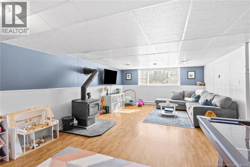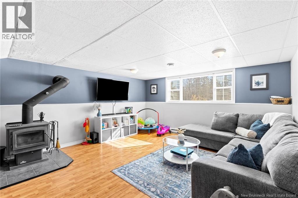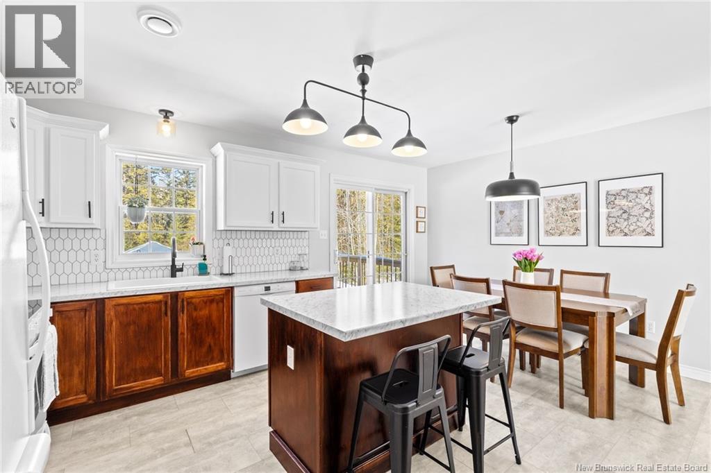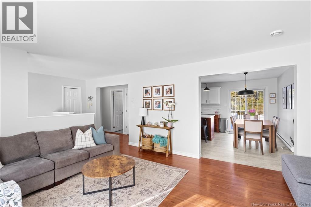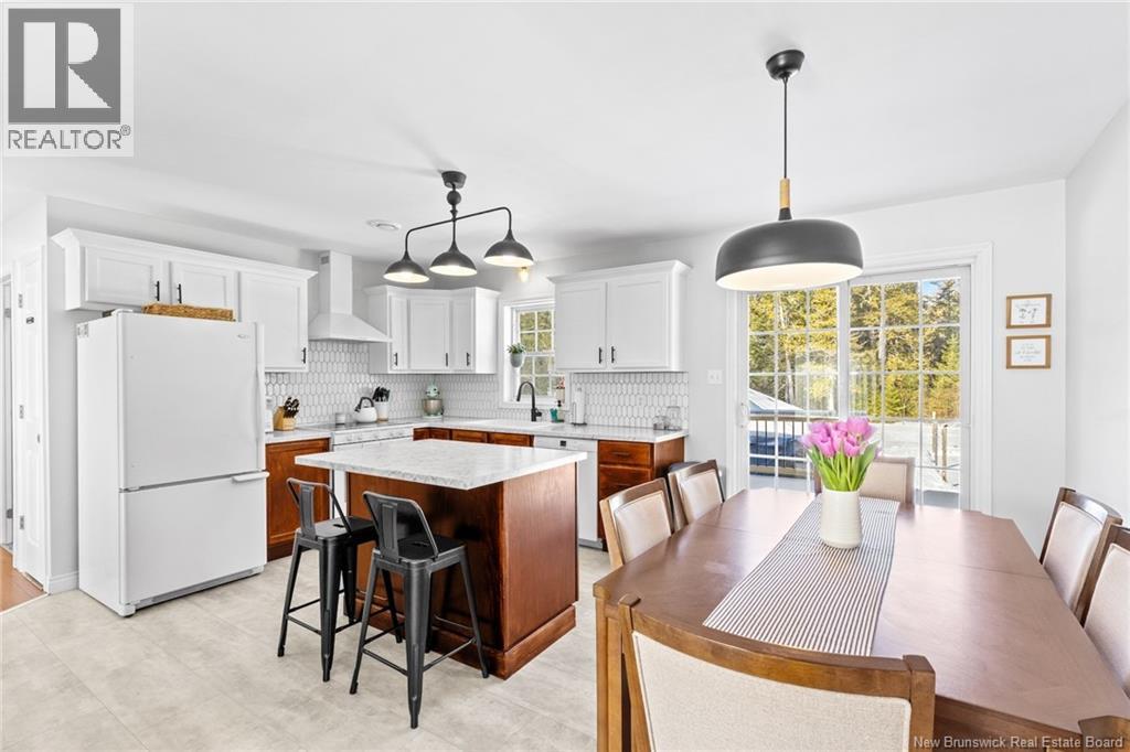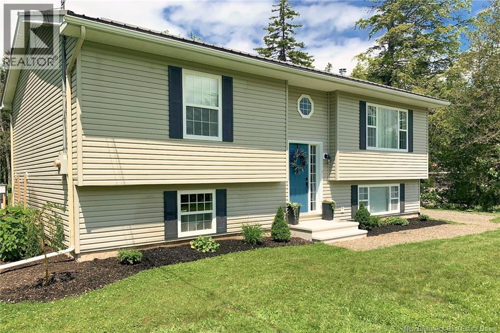 Home Sweet Home! If you're looking for a move-in-ready home, come check out this sweet split entry. Country living at its finest and located only minutes from Fredericton and CFB Gagetown. Situated on over an acre of land, this property offers you a private backyard. The main floor is bright with lots of natural light. Great size living room with an electric fireplace, the renovated kitchen offers tons of cabinet space, center island and a breakfast bar. The dining room is a good size with patio doors leading to a new deck. Down the hall you will find 2 large bedrooms with double closets and the main bath. Downstairs you will find a large bathroom with laundry, 3rd bedrooms and a huge family/rec room. A new forced air furnace/heat pump installed in 2021 in the storage room, provides central air conditioning for the summer months. This home has had many upgrades: a metal roof, a deck with a gazebo and patio, a renovated kitchen, a concrete front step, new windows in the upstairs bedrooms, replaced stair treads and a new downstairs bathroom. This home is a pleasure to show, book your showings today. Purchasers to verify measurements, room sizes were taken off the matterport floor plans. (id:49203)