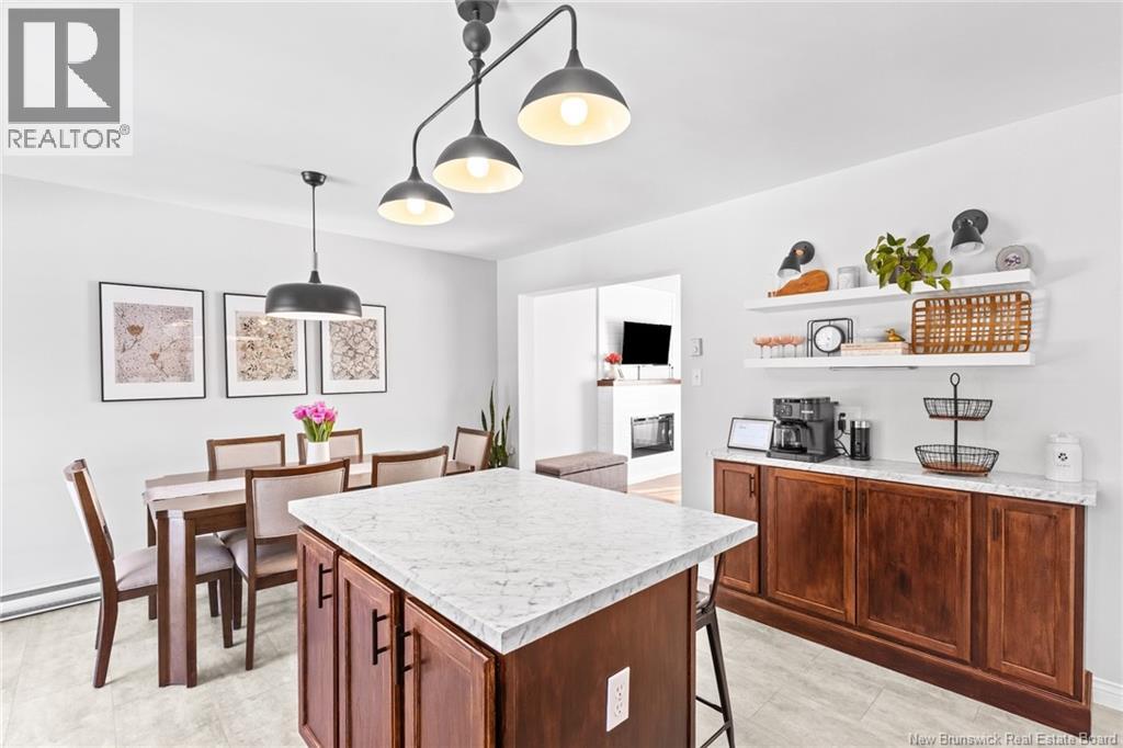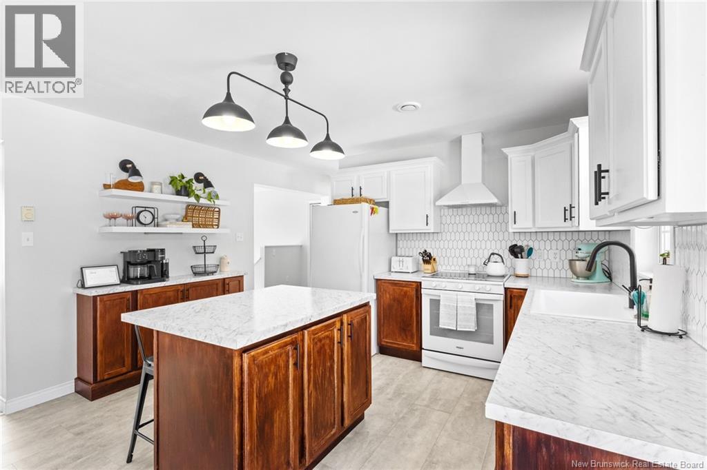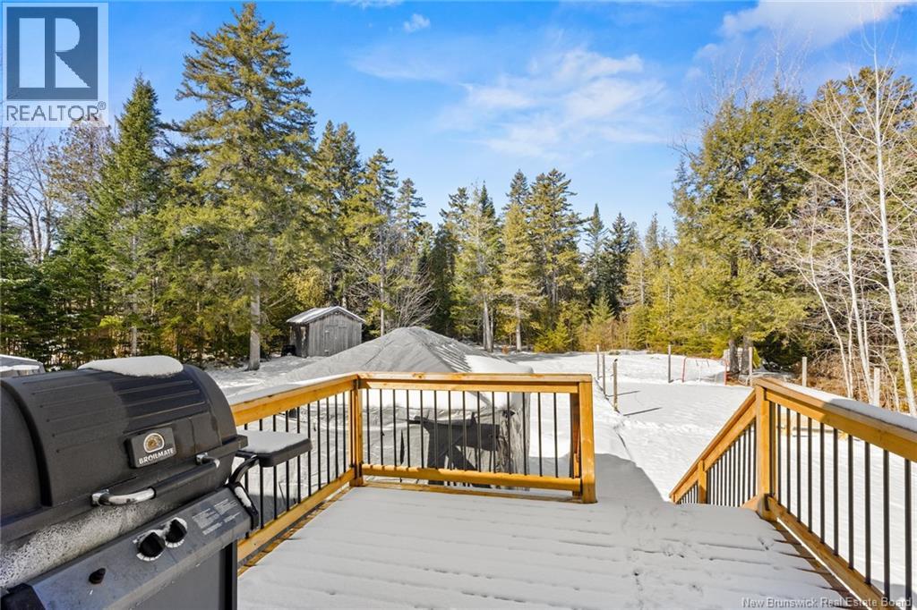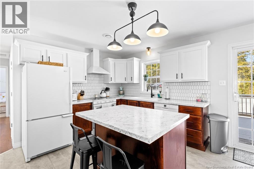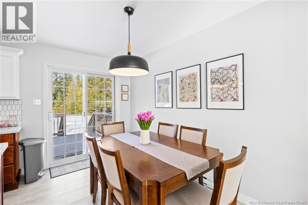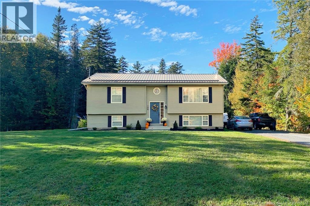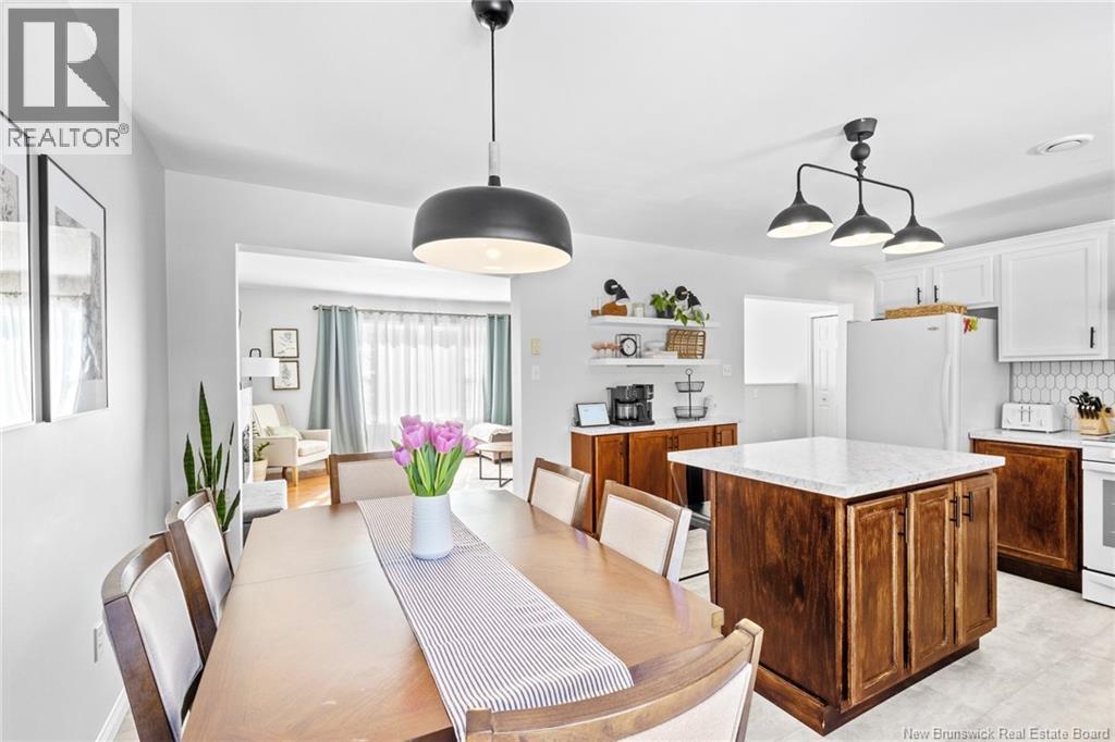 Home Sweet Home! If you're looking for a move-in-ready home, come check out this sweet split entry. Country living at its finest and located only minutes from Fredericton and CFB Gagetown. Situated on over an acre of land, this property offers you a private backyard. The main floor is bright with lots of natural light. Great size living room with an electric fireplace, the renovated kitchen offers tons of cabinet space, center island and a breakfast bar. The dining room is a good size with patio doors leading to a new deck. Down the hall you will find 2 large bedrooms with double closets and the main bath. Downstairs you will find a large bathroom with laundry, 3rd bedrooms and a huge family/rec room. A new forced air furnace/heat pump installed in 2021 in the storage room, provides central air conditioning for the summer months. This home has had many upgrades: a metal roof, a deck with a gazebo and patio, a renovated kitchen, a concrete front step, new windows in the upstairs bedrooms, replaced stair treads and a new downstairs bathroom. This home is a pleasure to show, book your showings today. Purchasers to verify measurements, room sizes were taken off the matterport floor plans. (id:49203)