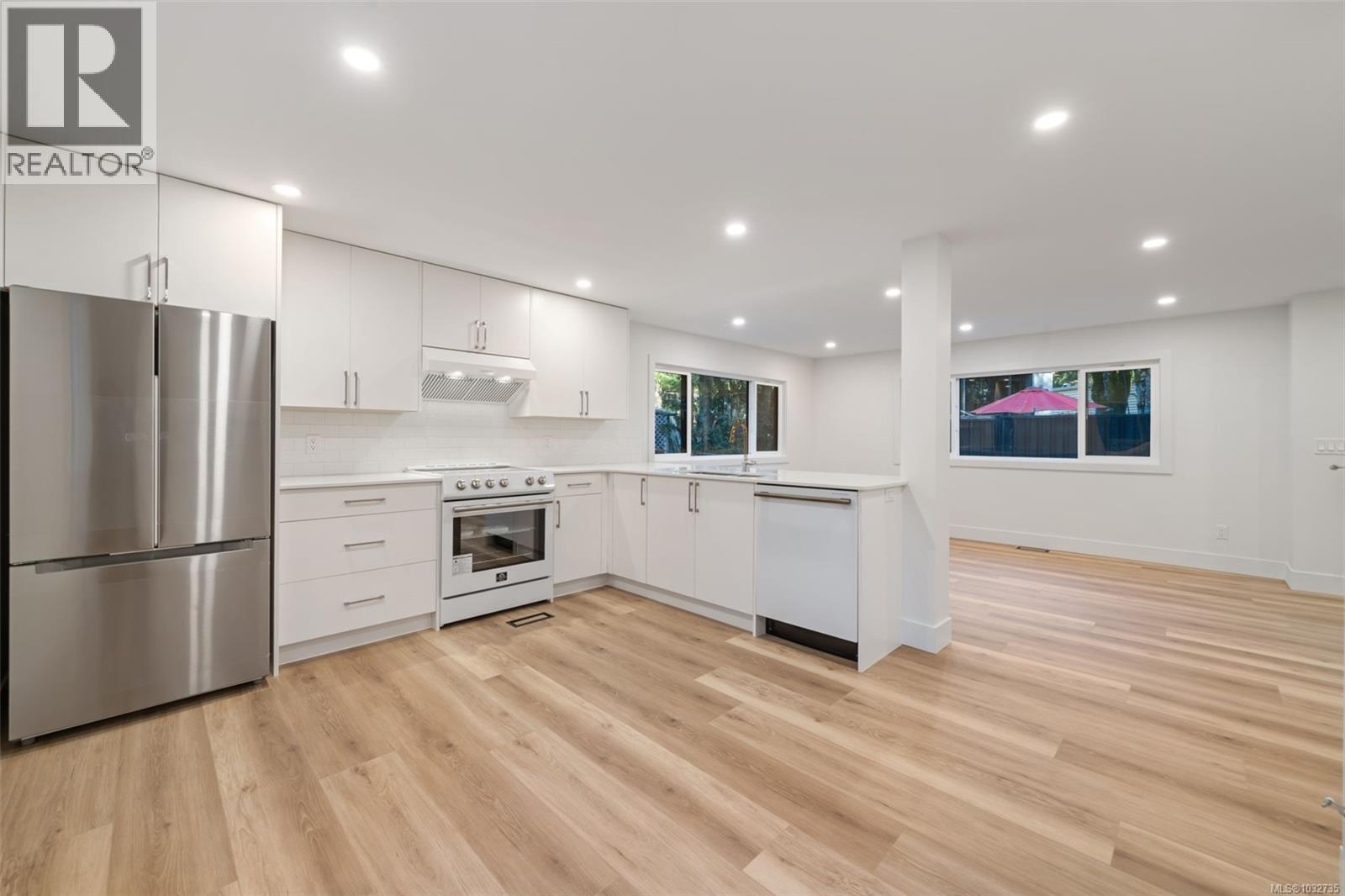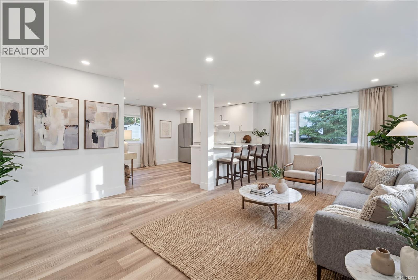 OPEN HOUSE Sunday 130-330. Affordable Lakeside Living - This professionally restored double-wide presents an excellent lifestyle opportunity— Hidden Valley is a quiet, 55+ lakeside manufactured home park offering a nature-filled setting just minutes from Langford amenities. The home offers your own walls, outdoor space, and easy walk-in access from your driveway. Step up into a bright, open-concept 2-bedroom, 1-bathroom layout with modernized flooring, paint, drywall, trim, doors, hardware, fixtures, appliances, plumbing and electrical. A brand-new soft-close birch kitchen offers quartz counter seating that opens to the living area. At the back, is the primary bedroom with deck access to the yard and peekaboo lake views. The home has been professionally installed to the park in 2025 onto a concrete slab foundation with engineered pier sets and seismic strapping. Extensive exterior upgrades include Hardie plank siding, sealed metal backed skirting, new roof and all new windows and exterior doors (ask for details). The low-maintenance pad offers hardscaped rock walls, and a brick patio, backing onto an open green space ideal for dogs. Surrounded by forest, walking paths, and a nearby lake, the park also has a clubhouse with regular coffee or crafting meetups and a space to host your own social gatherings. If you’re ready to downsize, this is a home you’ll want to see in person. Call today to learn more about this professional restoration by Knightway. Watch the video for more! (id:49203)