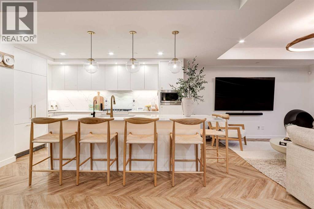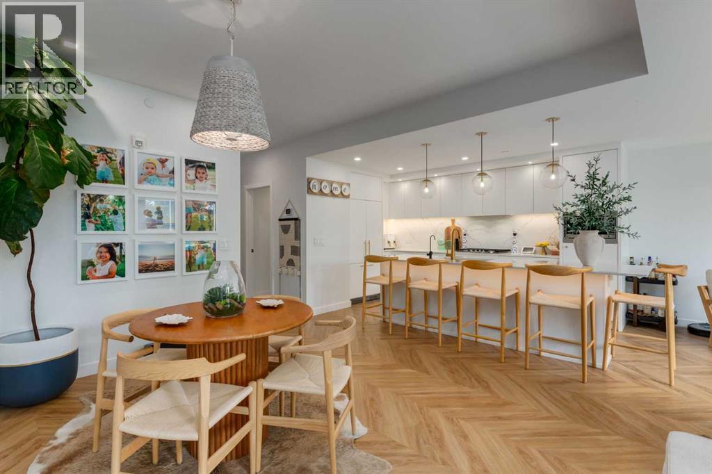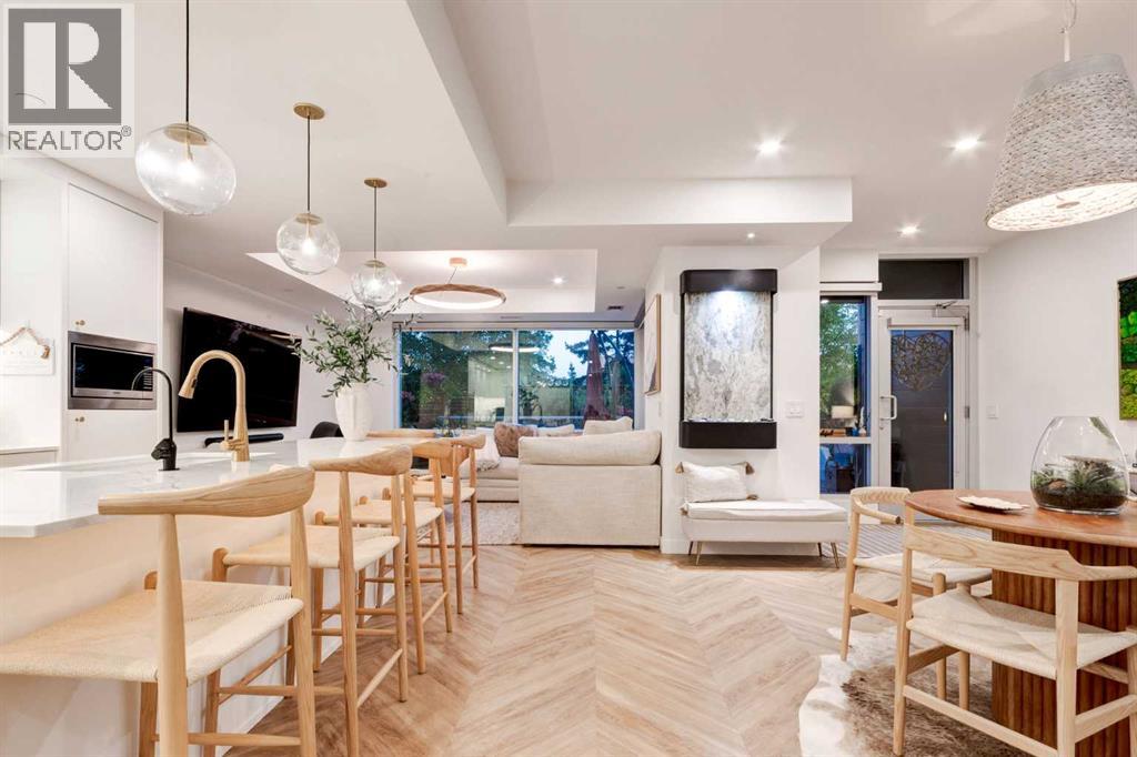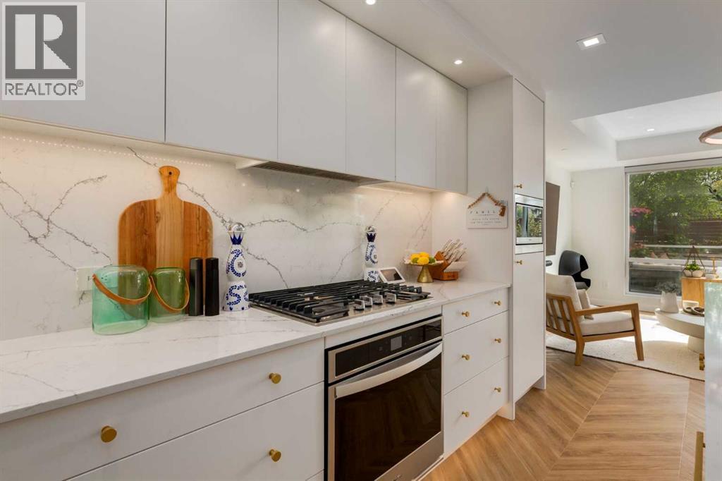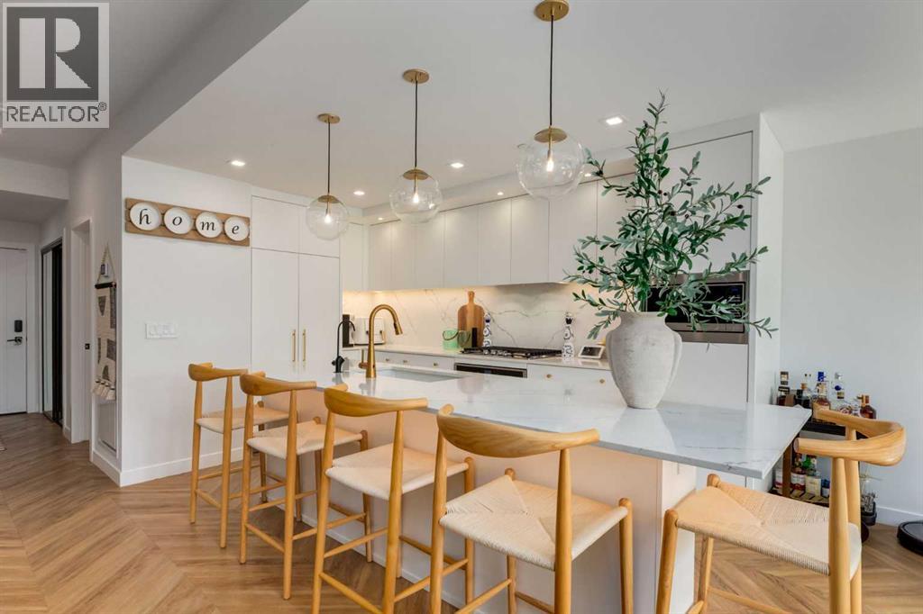 $980.73 MonthlyExperience luxury living in a sophisticated THREE BEDROOM Brownstone residence with over 2000 SF of interior living space and over 500SF of outdoor garden terrace space. Designed with both privacy and entertaining in mind, the home boasts upper-level south-facing bedrooms with large mature trees set behind, a dedicated gym area, a south-facing patio with room for an outdoor living room and an upper level deck, perfect for relaxation or gatherings. The chef-inspired kitchen is a true centerpiece, featuring Supermatte slate white cabinetry with brushed-gold hardware, a high-end gas cooktop and wall oven, an integrated 36" Fisher & Paykel fridge, integrated dishwasher, soft-close drawers, under-cabinet lighting, and stunning quartz countertops and backsplash. The dining room is open to the kitchen and cozy living room area. The interior design is spectacular featuring a Nordic-inspired floating fireplace, Chevron flooring, a bespoke granite waterwall feature, and designer lighting. A spacious walk-in pantry ensures ample storage for all your culinary needs. Modern upgrades include Japanese-style toilets, high-flow rain shower heads, and under-cabinet lighting throughout the kitchen and bathrooms, bringing contemporary elegance to every space. Sunlight fills the home through large windows, complemented by roller shades for privacy. Additional features include a full-size washer and dryer, custom built-in cabinetry, and a patio gas line for effortless outdoor cooking. This exceptional home includes two titled parking stalls in a heated, secured underground parkade, offering convenience and peace of mind. Located just steps from the award-winning eight-acre Radio Park, residents can enjoy a vibrant lakeside destination complete with fountains, boardwalks, scenic overlooks, dog parks, an amphitheatre and lush landscaping. The park is designed to offer year-round activities including a performance venue, winter ice rink, and dining experiences. Residents also benefit from a rooftop patio on the 8th floor, a second floor private owner’s lounge, underground visitor parking, bike storage, EV charging stations, and concierge services. The West District community continues to expand with retail shops, pedestrian-friendly sidewalks, bike paths, a central park, outdoor amphitheater, skatepark, seasonal markets, a transit hub, supermarket, and sports courts. Ideally situated, the home is just 15 minutes to downtown Calgary, one hour to the mountains, and 5 minutes to Winsport Canada Olympic Park, offering an unbeatable combination of lifestyle and convenience. (id:49203)