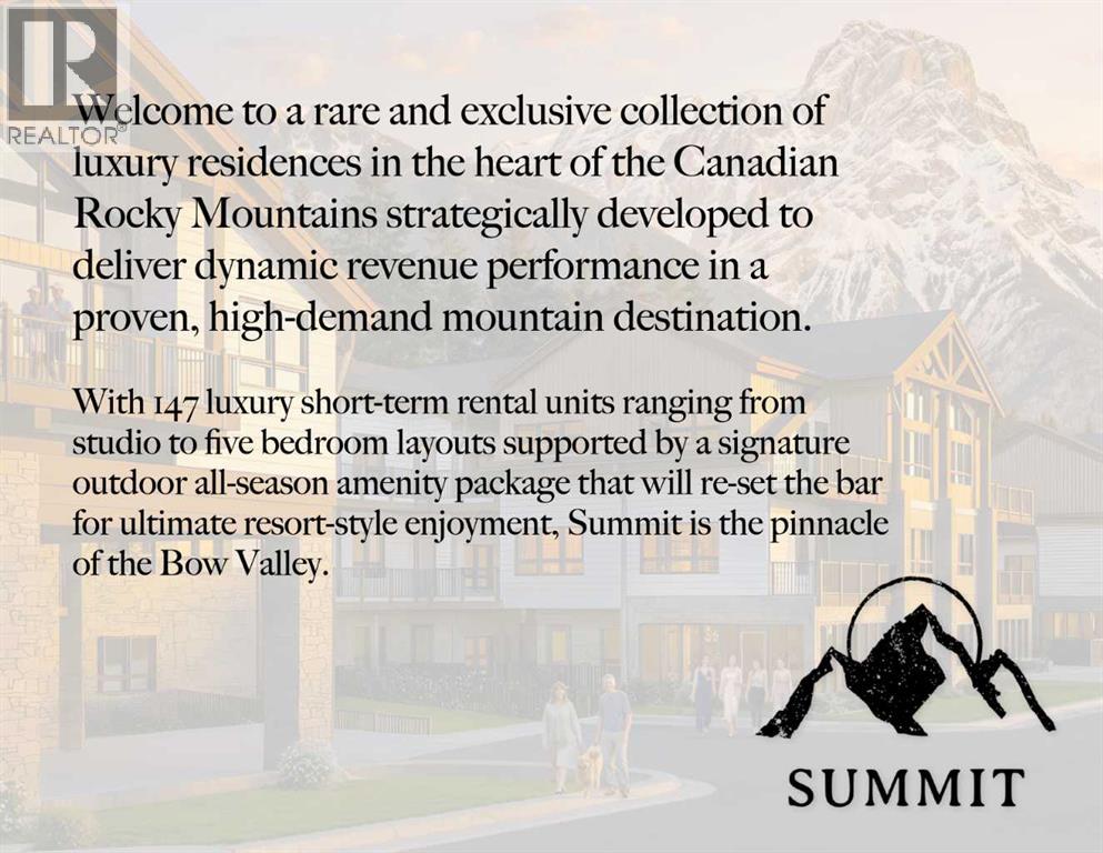 $637.50 MonthlyThis well-designed 147-unit resort-style development is ideally located in the heart of the Bow Valley, surrounded by the Canadian Rockies and minutes from Canmore, Kananaskis, and Banff. The project features a strategic mix of short-term rental and tourist-zoned units, complemented by resort-style amenities including two outdoor hot tubs, outdoor heated year-round pool, multiple fire pit gathering areas, two cedar saunas, a fitness centre, and a shared workspace. Ground-floor commercial spaces provide everyday convenience and enhance the overall functionality of the community. With immediate access to outdoor recreation and limited new supply in the Bow Valley, this development offers strong lifestyle and investment appeal. (id:49203)