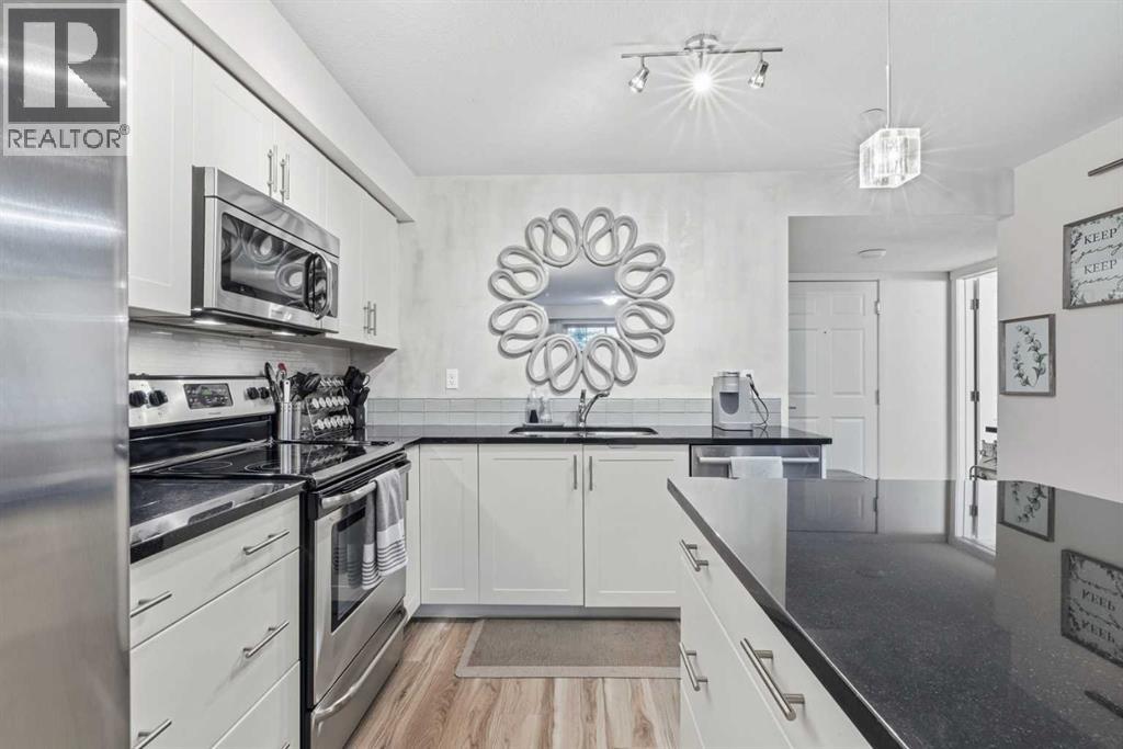 $479.78 MonthlySet in Copperfield Park, this bright TWO bedroom, ONE bath home offers a rare sense of space and privacy thanks to its thoughtful layout and direct access to green space. The kitchen anchors the home with granite countertops, stainless steel appliances, ample pantry storage, and a generous island that works just as well for morning coffee as it does for casual dinners. From here, the living area flows naturally toward the back of the unit, creating a comfortable, open feeling space that easily accommodates both lounging and dining without feeling crowded. What truly sets this home apart is the private patio that opens directly onto green space. Step outside and enjoy the feeling of having your own yard but without the maintenance. With a gas BBQ hookup ready for summer evenings, this outdoor space becomes a natural extension of your living area, making the home feel larger, quieter, and more private than most condos. The primary bedroom is bright and calming, while the second bedroom features a built-in Murphy bed, offering flexibility as a guest room, home office, or both. A full bathroom, in-suite laundry, and excellent storage add everyday practicality. Located close to the building entrance and elevators, the titled underground parking stall and storage locker are easily accessed. With a park across the street, plenty of visitor and street parking, and quick connections to Stoney Trail and Deerfoot, this is a well-positioned home close to shopping, dining, and amenities in 130th Avenue, McKenzie Towne, and Mahogany. (id:49203)