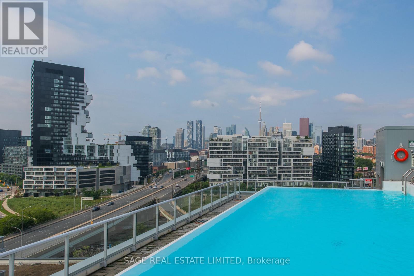 Sunny and Bright newer 2 bed/2 bath corner unit with parking and locker available for immediate occupancy! This unit boasts upgraded appliances, quartz counters and backsplash, undermount lighting, floor to ceiling windows, full size washer/dryer, plank laminate flooring throughout, exposed concrete ceilings. Both bedrooms of similar size and feature large windows and great closet space. 2 Full Baths including 3-pce ensuite for primary bed with upgraded shower faucet hardware. Nice size balcony and gorgeous unobstructed NW view to take in the dazzling sunsets. Located in Prime Leslieville with the Streetcar, Broadview Hotel, Parks, Fantastic Restaurants & Charming Coffee Hangouts all nearby. DT is 10 minutes away. Pls note pics taken before current tenants moved in, all finishing work is now complete. (id:49203)