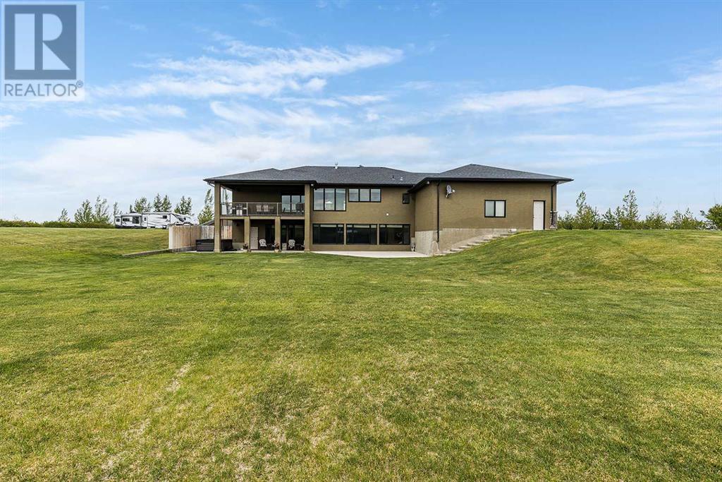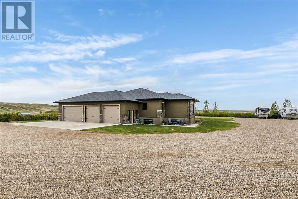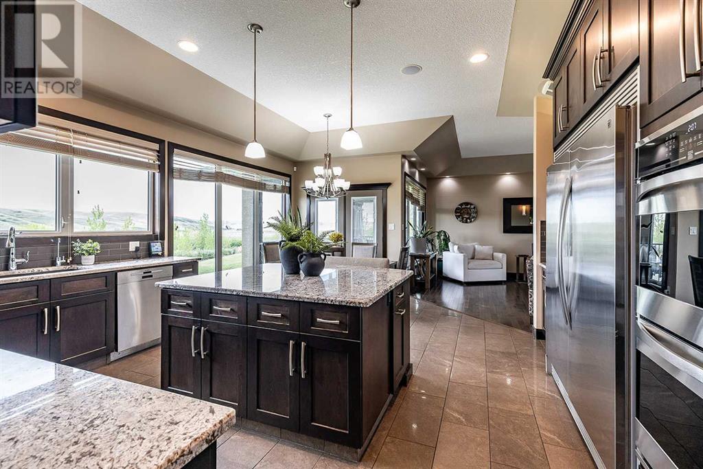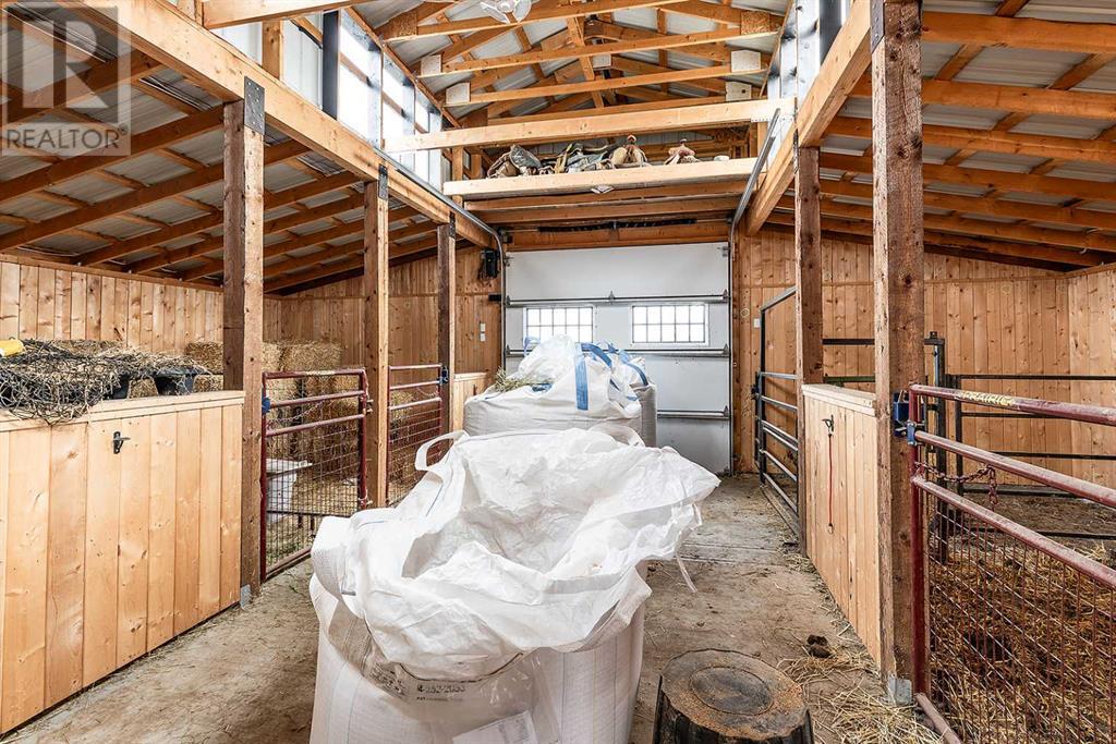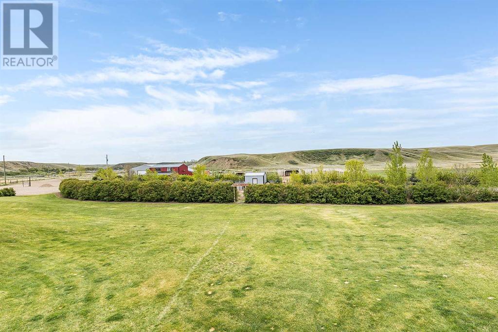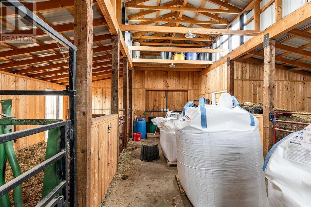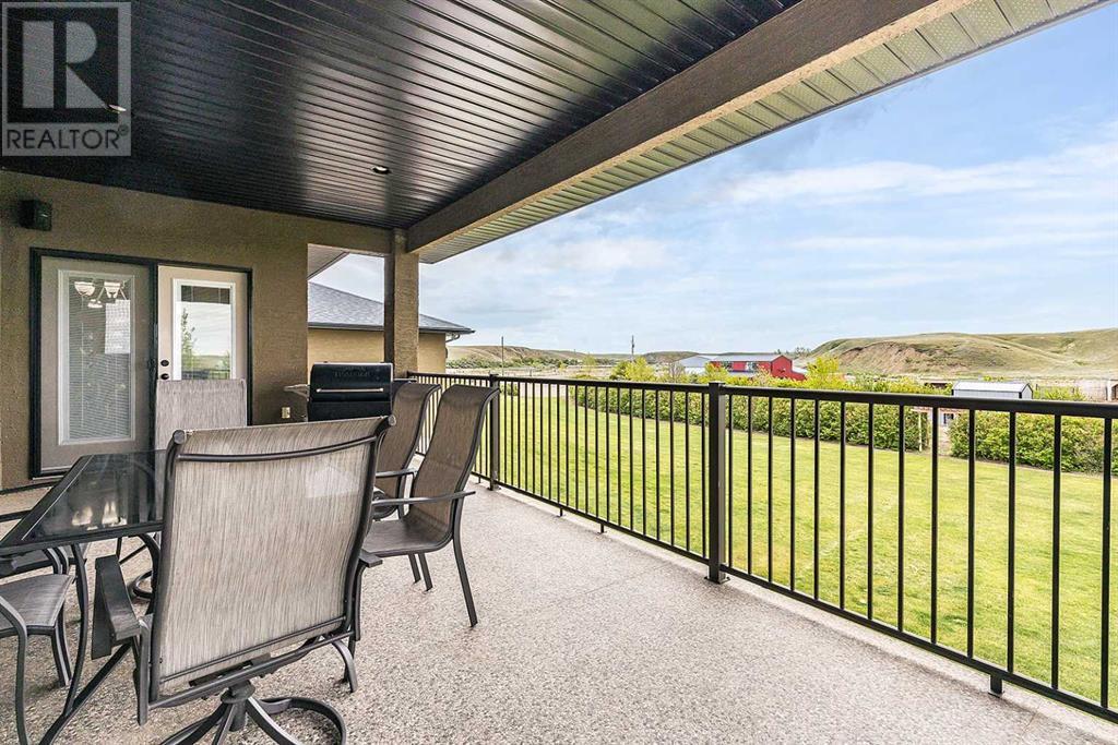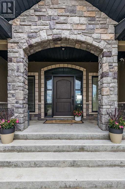 Welcome to a one-of-a-kind property just minutes from the city! This beautiful 2522 sqft walkout bungalow offers the perfect blend of rural serenity and refined living. The timeless home features 5 bedrooms plus an office, den, 4 full bathrooms, and a fully developed basement, all designed with thoughtful detail and quality finishes. Step into the bright, open concept living space with 9 ft ceilings, hardwood floors, a stone double sided fireplace, and expansive windows overlooking the private and dreamy outdoor space with incredible views. The chef’s kitchen features a double oven, oversized fridge/freezer, prep island, and ample cabinetry, flowing seamlessly into the dining area with access to a covered deck. Main floor convenience is maximized with a large laundry/mudroom connecting directly to the walk-through pantry as well as the 28x47 triple car garage. The Primary Suite is an expansive retreat, with generous space for a sitting area or exercise/yoga nook, a spa-like 4 pc ensuite featuring in-floor heating, a soaker tub, custom tile shower, and a walk-in closet with built-in cabinets. The walkout basement continues to impress with a large recreation room, wet bar with beverage fridge and dishwasher, two additional bedrooms, a den ideal for a gym, gaming room or playroom, a 4 pc bathroom with in-floor heating, a 3 pc bathroom with access to the patio and hot tub area, and plenty of storage. Additional features include blackout blinds in all bedrooms, zoned heating and A/C, a hot tub, and underground sprinklers. A huge perk of this incredible property is the three shops, measuring 80'x40', 50'x30', and 21'x26’: all with concrete floors, and durable tin exteriors, offering excellent flexibility for personal use or business needs. The animal lovers will enjoy the 36'x30' barn with heated tack room, concrete alley, five indoor pens, a 10'x10' overhead door, and two outdoor stock pens with shelters and an all-season watering bowl. Situated on a full 109.23 acres of pasture, reseeded grassland and total 39 acre water license. This standout property offers the best of both worlds: a luxurious home with high-end features and the infrastructure to support a rural lifestyle. Whether you’re looking to live, work, or invest in land, this is an incredible opportunity to own a high-value property close to city amenities. Floorplan/measurements and additional information attached. Drone photos available upon request. (id:49203)