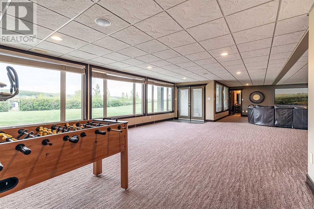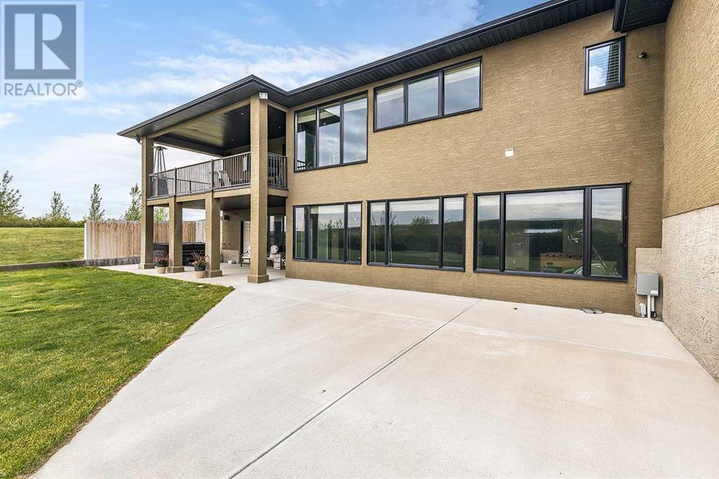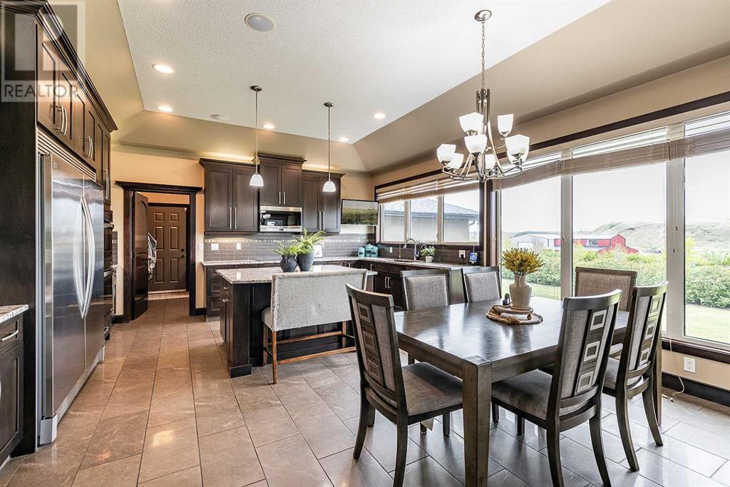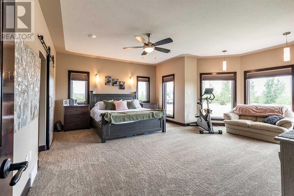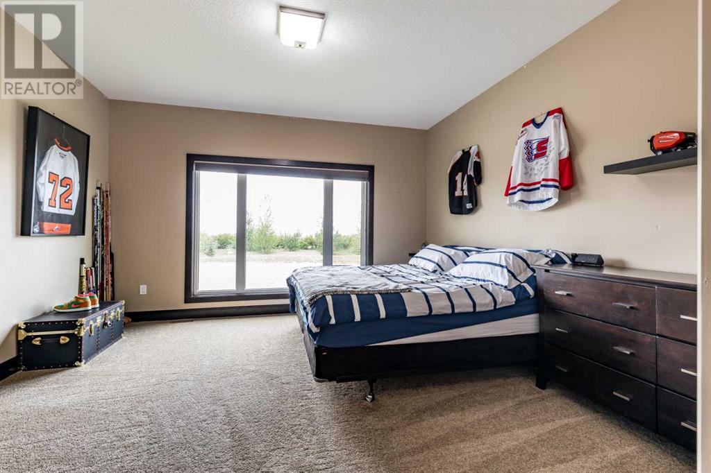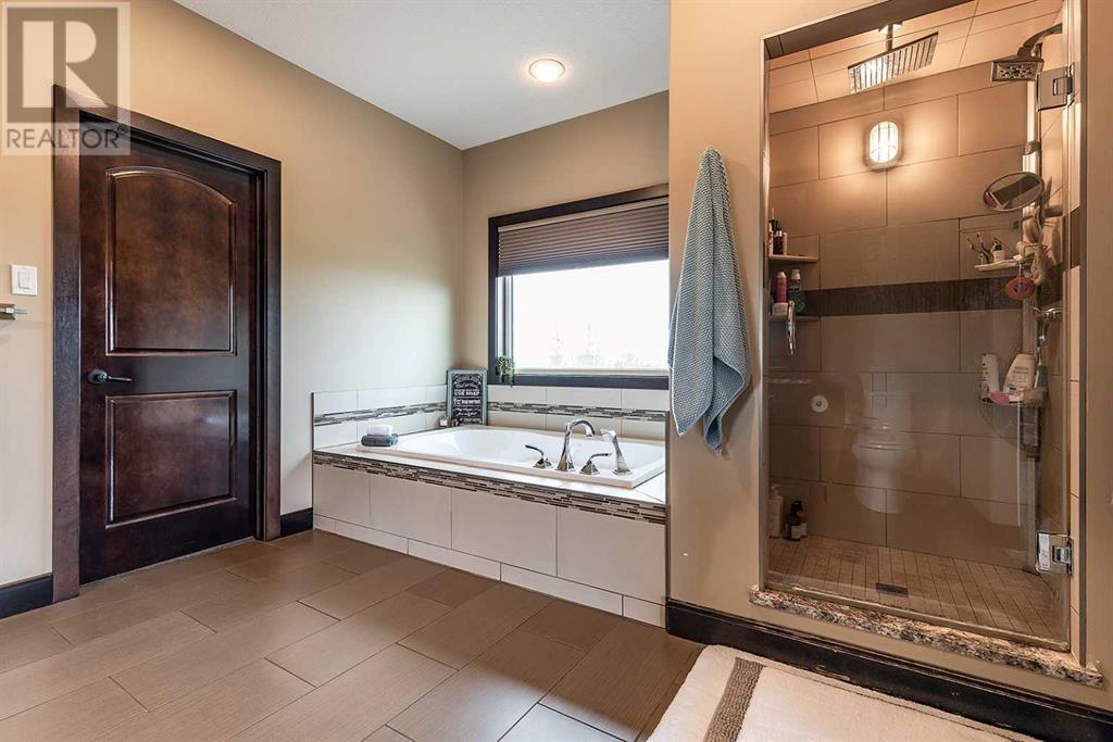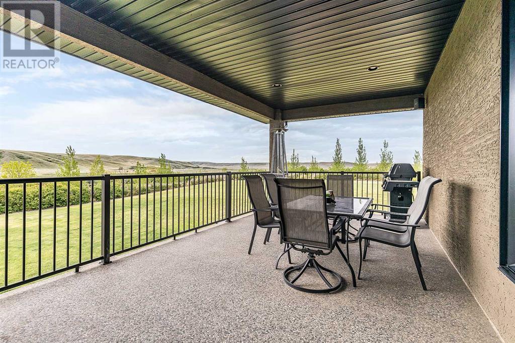 Welcome to a one-of-a-kind property just minutes from the city! This beautiful 2522 sqft walkout bungalow offers the perfect blend of rural serenity and refined living. The timeless home features 5 bedrooms plus an office, den, 4 full bathrooms, and a fully developed basement, all designed with thoughtful detail and quality finishes. Step into the bright, open concept living space with 9 ft ceilings, hardwood floors, a stone double sided fireplace, and expansive windows overlooking the private and dreamy outdoor space with incredible views. The chef’s kitchen features a double oven, oversized fridge/freezer, prep island, and ample cabinetry, flowing seamlessly into the dining area with access to a covered deck. Main floor convenience is maximized with a large laundry/mudroom connecting directly to the walk-through pantry as well as the 28x47 triple car garage. The Primary Suite is an expansive retreat, with generous space for a sitting area or exercise/yoga nook, a spa-like 4 pc ensuite featuring in-floor heating, a soaker tub, custom tile shower, and a walk-in closet with built-in cabinets. The walkout basement continues to impress with a large recreation room, wet bar with beverage fridge and dishwasher, two additional bedrooms, a den ideal for a gym, gaming room or playroom, a 4 pc bathroom with in-floor heating, a 3 pc bathroom with access to the patio and hot tub area, and plenty of storage. Additional features include blackout blinds in all bedrooms, zoned heating and A/C, a hot tub, and underground sprinklers. A huge perk of this incredible property is the three shops, measuring 80'x40', 50'x30', and 21'x26’: all with concrete floors, and durable tin exteriors, offering excellent flexibility for personal use or business needs. The animal lovers will enjoy the 36'x30' barn with heated tack room, concrete alley, five indoor pens, a 10'x10' overhead door, and two outdoor stock pens with shelters and an all-season watering bowl. Situated on a full 109.23 acres of pasture, reseeded grassland and total 39 acre water license. This standout property offers the best of both worlds: a luxurious home with high-end features and the infrastructure to support a rural lifestyle. Whether you’re looking to live, work, or invest in land, this is an incredible opportunity to own a high-value property close to city amenities. Floorplan/measurements and additional information attached. Drone photos available upon request. (id:49203)