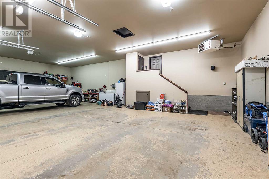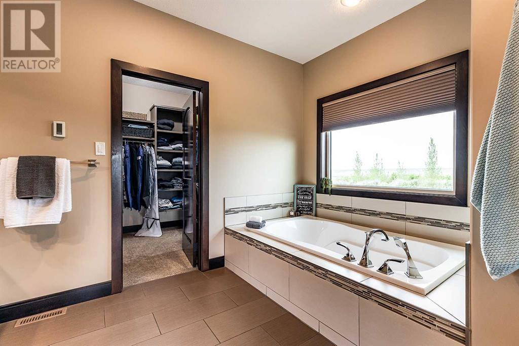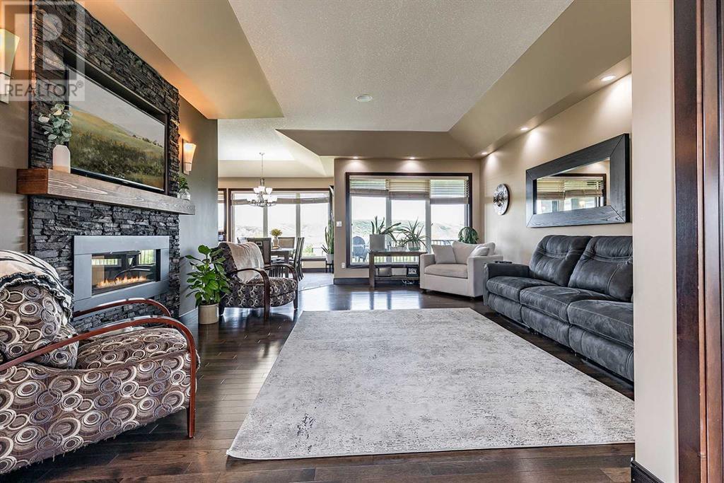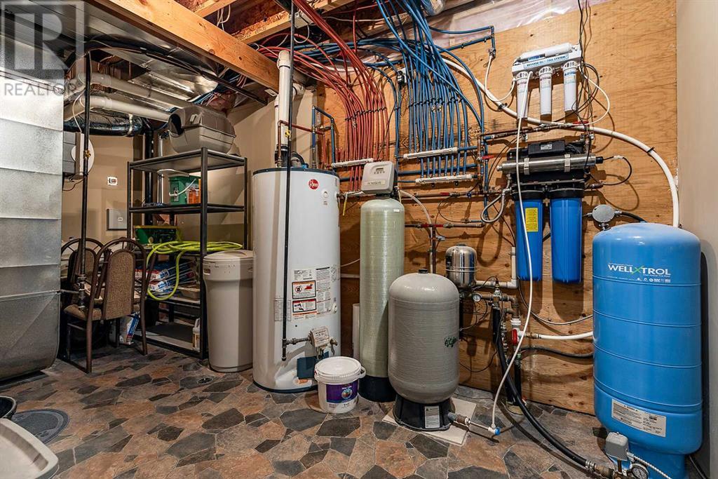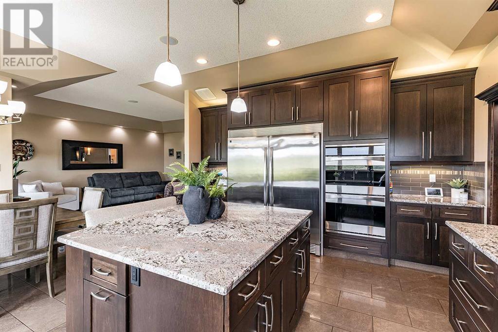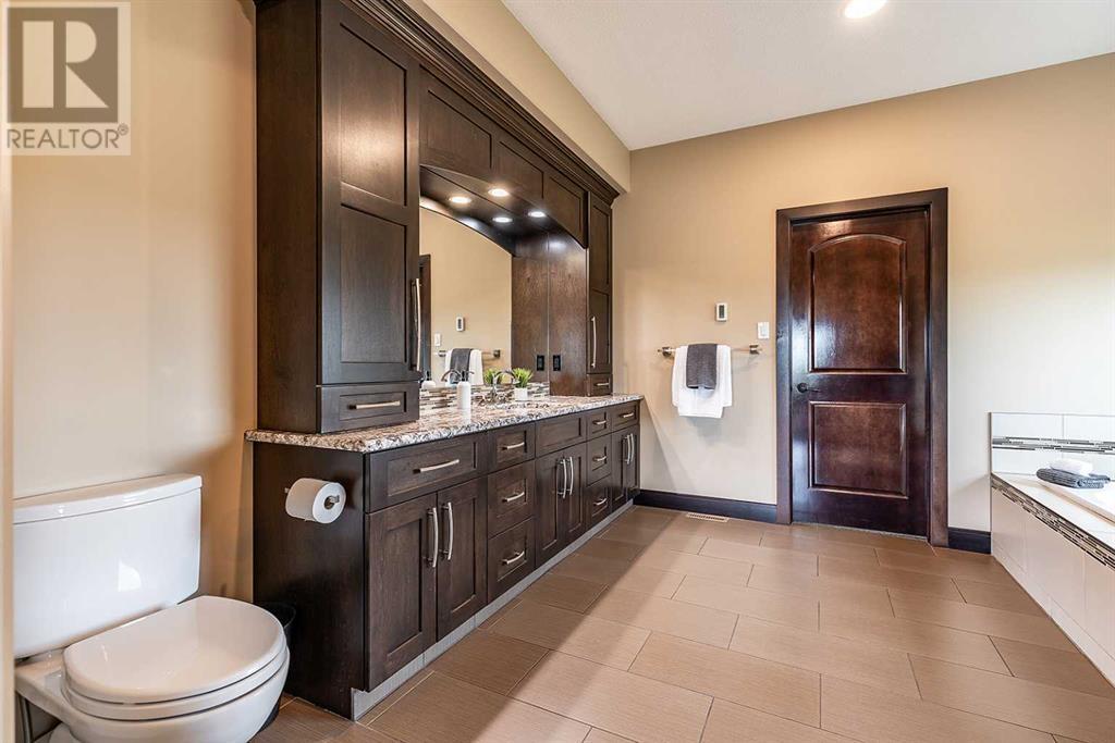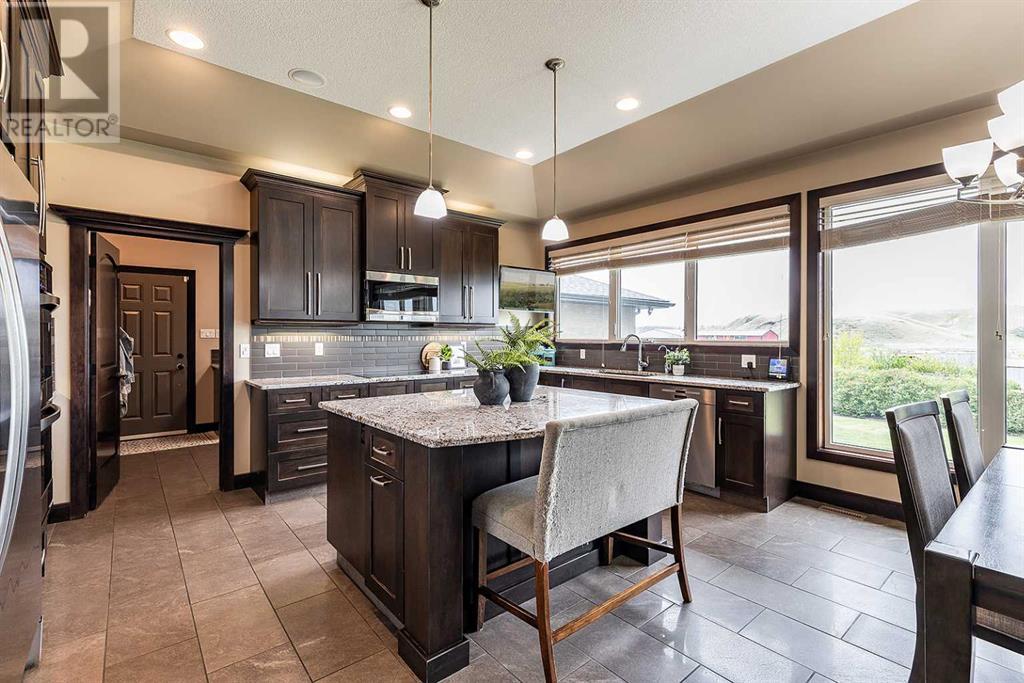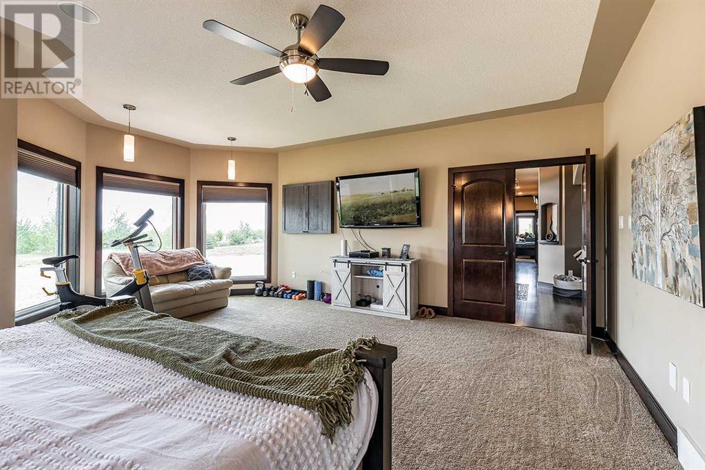 Welcome to a one-of-a-kind property just minutes from the city! This beautiful 2522 sqft walkout bungalow offers the perfect blend of rural serenity and refined living. The timeless home features 5 bedrooms plus an office, den, 4 full bathrooms, and a fully developed basement, all designed with thoughtful detail and quality finishes. Step into the bright, open concept living space with 9 ft ceilings, hardwood floors, a stone double sided fireplace, and expansive windows overlooking the private and dreamy outdoor space with incredible views. The chef’s kitchen features a double oven, oversized fridge/freezer, prep island, and ample cabinetry, flowing seamlessly into the dining area with access to a covered deck. Main floor convenience is maximized with a large laundry/mudroom connecting directly to the walk-through pantry as well as the 28x47 triple car garage. The Primary Suite is an expansive retreat, with generous space for a sitting area or exercise/yoga nook, a spa-like 4 pc ensuite featuring in-floor heating, a soaker tub, custom tile shower, and a walk-in closet with built-in cabinets. The walkout basement continues to impress with a large recreation room, wet bar with beverage fridge and dishwasher, two additional bedrooms, a den ideal for a gym, gaming room or playroom, a 4 pc bathroom with in-floor heating, a 3 pc bathroom with access to the patio and hot tub area, and plenty of storage. Additional features include blackout blinds in all bedrooms, zoned heating and A/C, a hot tub, and underground sprinklers. A huge perk of this incredible property is the three shops, measuring 80'x40', 50'x30', and 21'x26’: all with concrete floors, and durable tin exteriors, offering excellent flexibility for personal use or business needs. The animal lovers will enjoy the 36'x30' barn with heated tack room, concrete alley, five indoor pens, a 10'x10' overhead door, and two outdoor stock pens with shelters and an all-season watering bowl. Situated on a full 109.23 acres of pasture, reseeded grassland and total 39 acre water license. This standout property offers the best of both worlds: a luxurious home with high-end features and the infrastructure to support a rural lifestyle. Whether you’re looking to live, work, or invest in land, this is an incredible opportunity to own a high-value property close to city amenities. Floorplan/measurements and additional information attached. Drone photos available upon request. (id:49203)