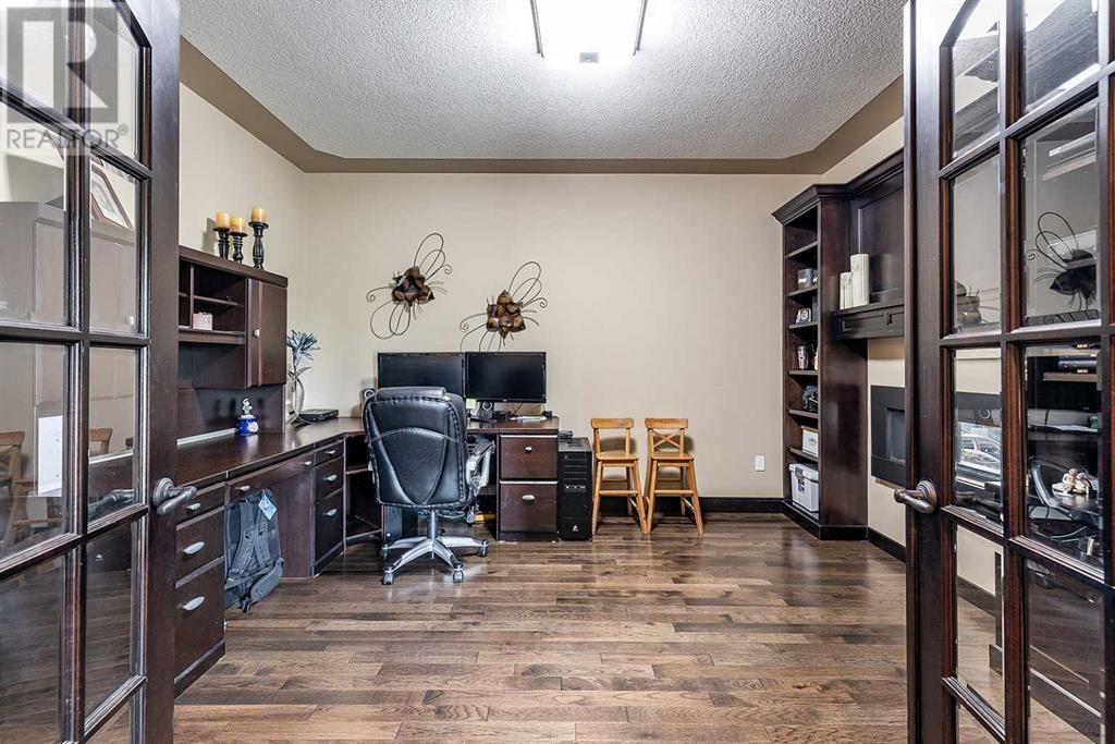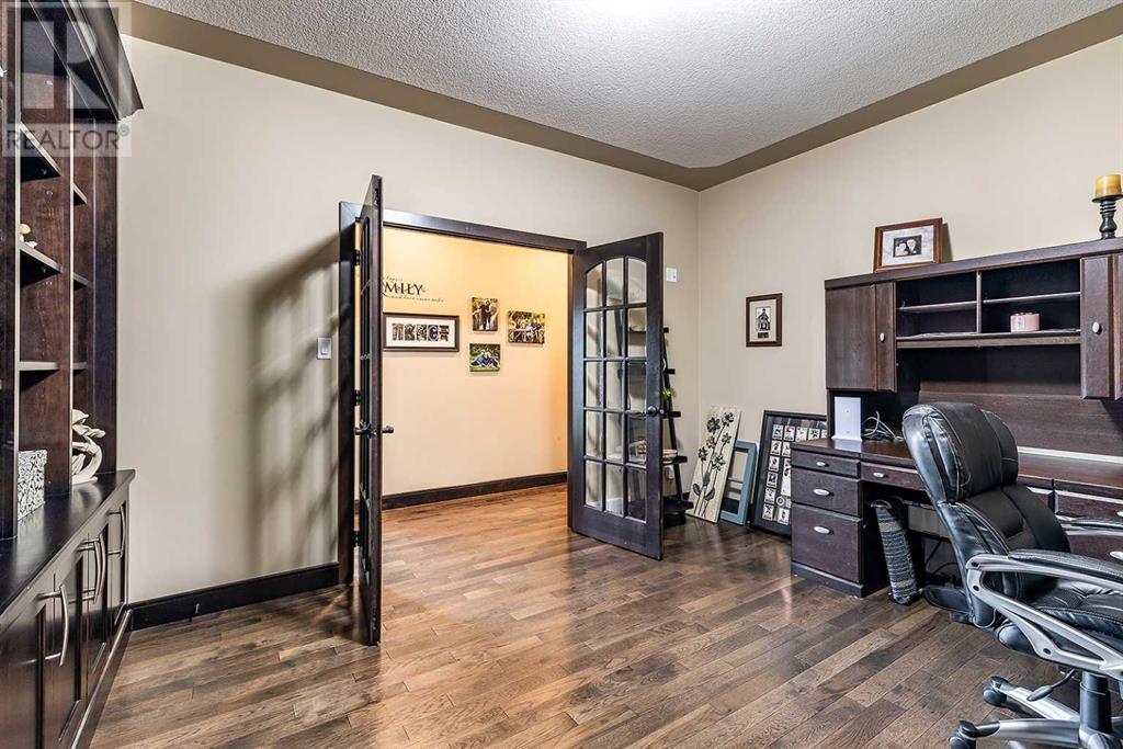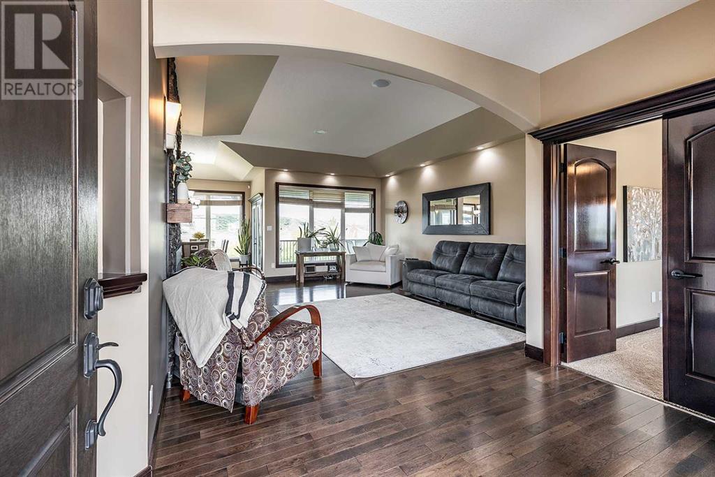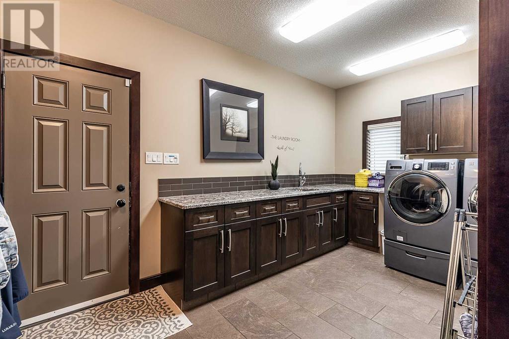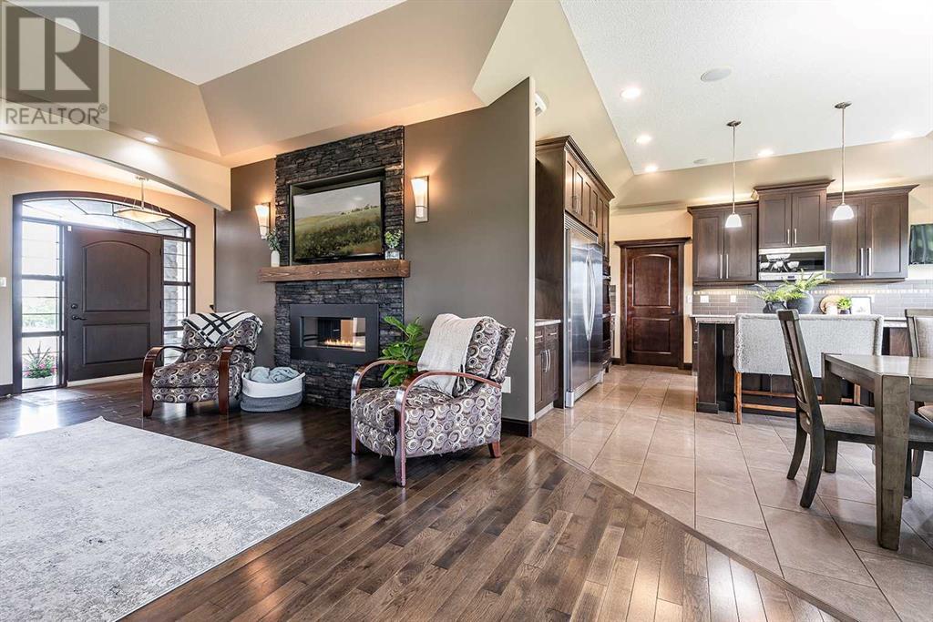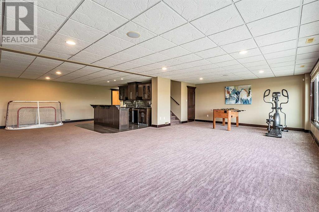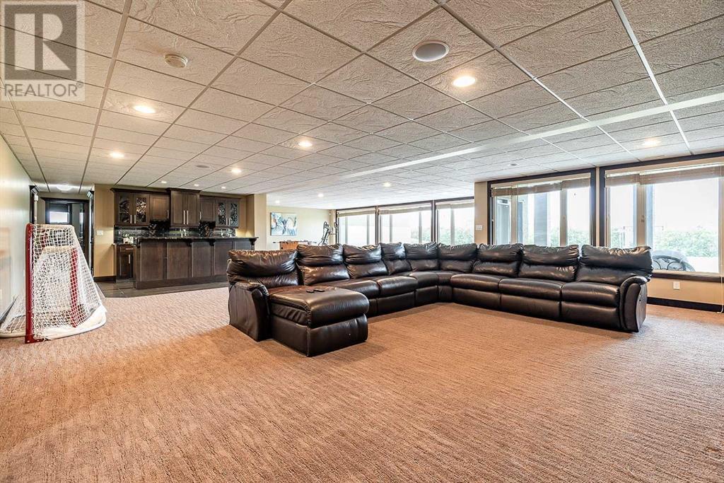 Welcome to a one-of-a-kind property just minutes from the city! This beautiful 2522 sqft walkout bungalow offers the perfect blend of rural serenity and refined living. The timeless home features 5 bedrooms plus an office, den, 4 full bathrooms, and a fully developed basement, all designed with thoughtful detail and quality finishes. Step into the bright, open concept living space with 9 ft ceilings, hardwood floors, a stone double sided fireplace, and expansive windows overlooking the private and dreamy outdoor space with incredible views. The chef’s kitchen features a double oven, oversized fridge/freezer, prep island, and ample cabinetry, flowing seamlessly into the dining area with access to a covered deck. Main floor convenience is maximized with a large laundry/mudroom connecting directly to the walk-through pantry as well as the 28x47 triple car garage. The Primary Suite is an expansive retreat, with generous space for a sitting area or exercise/yoga nook, a spa-like 4 pc ensuite featuring in-floor heating, a soaker tub, custom tile shower, and a walk-in closet with built-in cabinets. The walkout basement continues to impress with a large recreation room, wet bar with beverage fridge and dishwasher, two additional bedrooms, a den ideal for a gym, gaming room or playroom, a 4 pc bathroom with in-floor heating, a 3 pc bathroom with access to the patio and hot tub area, and plenty of storage. Additional features include blackout blinds in all bedrooms, zoned heating and A/C, a hot tub, and underground sprinklers. A huge perk of this incredible property is the three shops, measuring 80'x40', 50'x30', and 21'x26’: all with concrete floors, and durable tin exteriors, offering excellent flexibility for personal use or business needs. The animal lovers will enjoy the 36'x30' barn with heated tack room, concrete alley, five indoor pens, a 10'x10' overhead door, and two outdoor stock pens with shelters and an all-season watering bowl. Situated on a full 109.23 acres of pasture, reseeded grassland and total 39 acre water license. This standout property offers the best of both worlds: a luxurious home with high-end features and the infrastructure to support a rural lifestyle. Whether you’re looking to live, work, or invest in land, this is an incredible opportunity to own a high-value property close to city amenities. Floorplan/measurements and additional information attached. Drone photos available upon request. (id:49203)