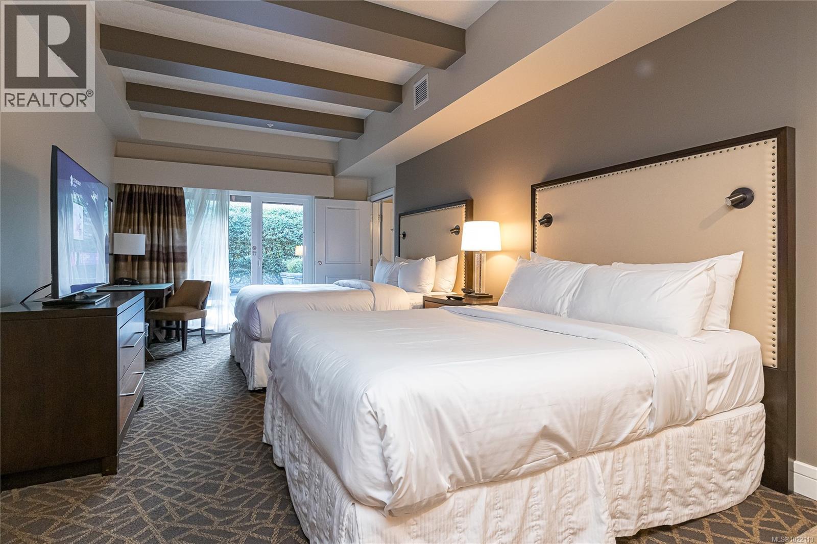 113/115 B Beautiful ground floor Quarter Share at Bear Mountain golf community. Fairway condos/hotel building. Offer includes a 1450 sqft 2 bdrm/3 bath suite features a full kitchen, fireplace. Includes lock off adjoining 1 bdrm/1 bath with kitchenette. Spacious 44 ft x 23 ft private partially covered patio. The Fairway is located off the 1st hole of one of two Jack Nicklaus designed golf courses. Just steps from the Westin hotel, clubhouse, spa facilities, and restaurants. Fantastic amenities avail. by membership OR day pass purchase: Clay tennis courts, mountain biking trails, Bear Mountain Activity Centre (multiple gyms & outdoor pool & hot tub). Mt. Finlayson trails for the outdoor adventurers. Only a 20-minute drive to Victoria's downtown. The unit is rented as hotel rooms with revenue back to owner (managed by hotel staff). Around 5% ROI Annually if fully rented. Underground secure parking available. Plus GST. Opportunity for Buying 2 Quarter shares. A/B BOTH (id:49203)