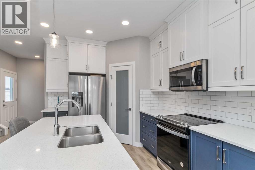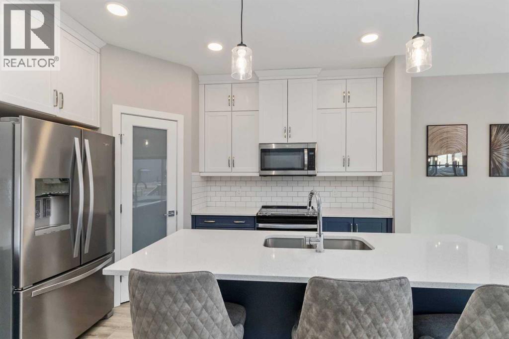 Welcome to 113 Hodgins Avenue, located in Fort McMurray’s only Golf subdivision, perfect for those who love outdoor play on quads, skidoos, and more. Experience the perfect blend of modern sophistication and leisure in Henning Ridge, facing a Greenspace and future park area. Built by Qualico Developments—a trusted name in Fort McMurray for over 20 years—this just like new 1,552 sq. ft. "Alex II" model features 3 bedrooms and 3 bathrooms, and the stunning modern color palette and a remaining 8 years Alberta New Home Warranty for total peace of mind, plus a fully fenced and landscaped yard and deck completed in 2025. The open-concept main floor is designed for entertaining, boasting luxury vinyl plank flooring and a chef-inspired kitchen. You’ll love the quartz countertops, white upper cabinetry, the stylish navy-blue island, the corner pantry, and the high-end 4-piece black stainless appliance package. The large island with an eat-up breakfast bar flows seamlessly into the bright great room and dining area. In addition, you have a built-in coffee bar. Upstairs, the primary bedroom features a spacious walk-in closet, a private ensuite, and panoramic views. There are 2 additional bedrooms, a full main bath, a dedicated laundry room, and a quaint landing area for a desk to complete the level. Outside, the home is a turnkey with front and rear landscaping fully fenced, completed, and a double concrete driveway. The basement is undeveloped but is designed to have a large family room, full bathroom, bedroom, and has the ability for a future suite with additional rough-in plumbing and a separate entrance. In addition, this home offers hot water on demand, custom blinds installed, and an insulated and drywalled attached garage with direct access to your home. Sellers have stated they loved living in the Community of Henning Ridge, a close-knit community of people who love the outdoors and quick access to the airport, Vista Ridge ski hill, and only minutes from the future Hom e Depot and other amenities. This community offers site, city, and school bus access seconds from your front door. Call today to be part of this awesome community! (id:49203)