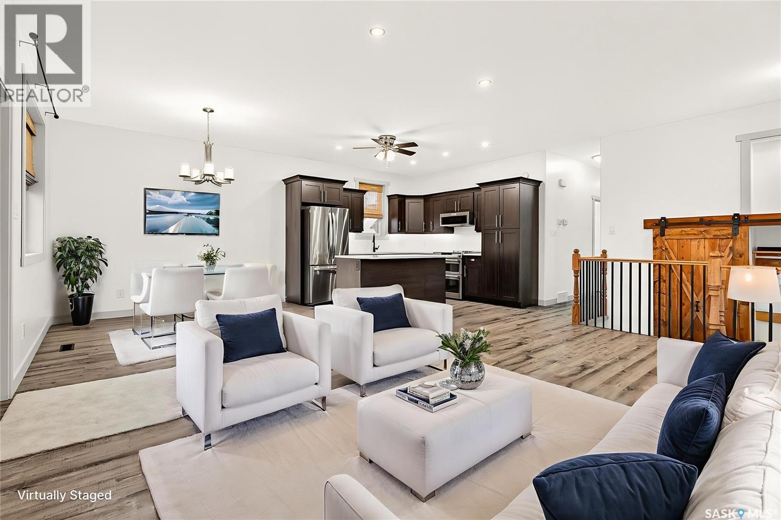 Wow What a beautiful place to call home! Built in 2021 this home is in new condition situated in in the desirable Palliser Heights close to schools, parks and walking trails. Inviting Street Appeal with xeriscape front yard. Bright open concept home with large south facing sunstreamed windows in the livingroom and diningroom. Modern dark cabinetry with pantry and large island workspace and seating are enhanced with white quartz countertops complemented by a high end stainless appliance package including induction stove. Primary bedroom retreat features a beautiful space and ensuite complete with a full size glassed in shower. Main floor features an additional bedroom, full four piece bathroom, main floor laundry closet, computer nook and spacious entry mudroom off the back entry. The lower features large windows with a very spacious family room for entertaining and games area with plumbing for a future wet bar if desired. There are three additional bedrooms and bathroom for the family or guests on the lower level, new detached garage built in 2023 is fully insulated and heated. The outdoor space is finished with privacy white vinyl pvc fencing, an inviting patio and firepit area to relax around anytime of the day. This home has been well constructed with staggered studding energy efficient R 30 walls and R50 in the attic for energy efficiency. Upgraded metal roof on the home and garage is complete with snow guards. This is a great place to come home to! Contact an agent for more info and to book a viewing! (id:49203)