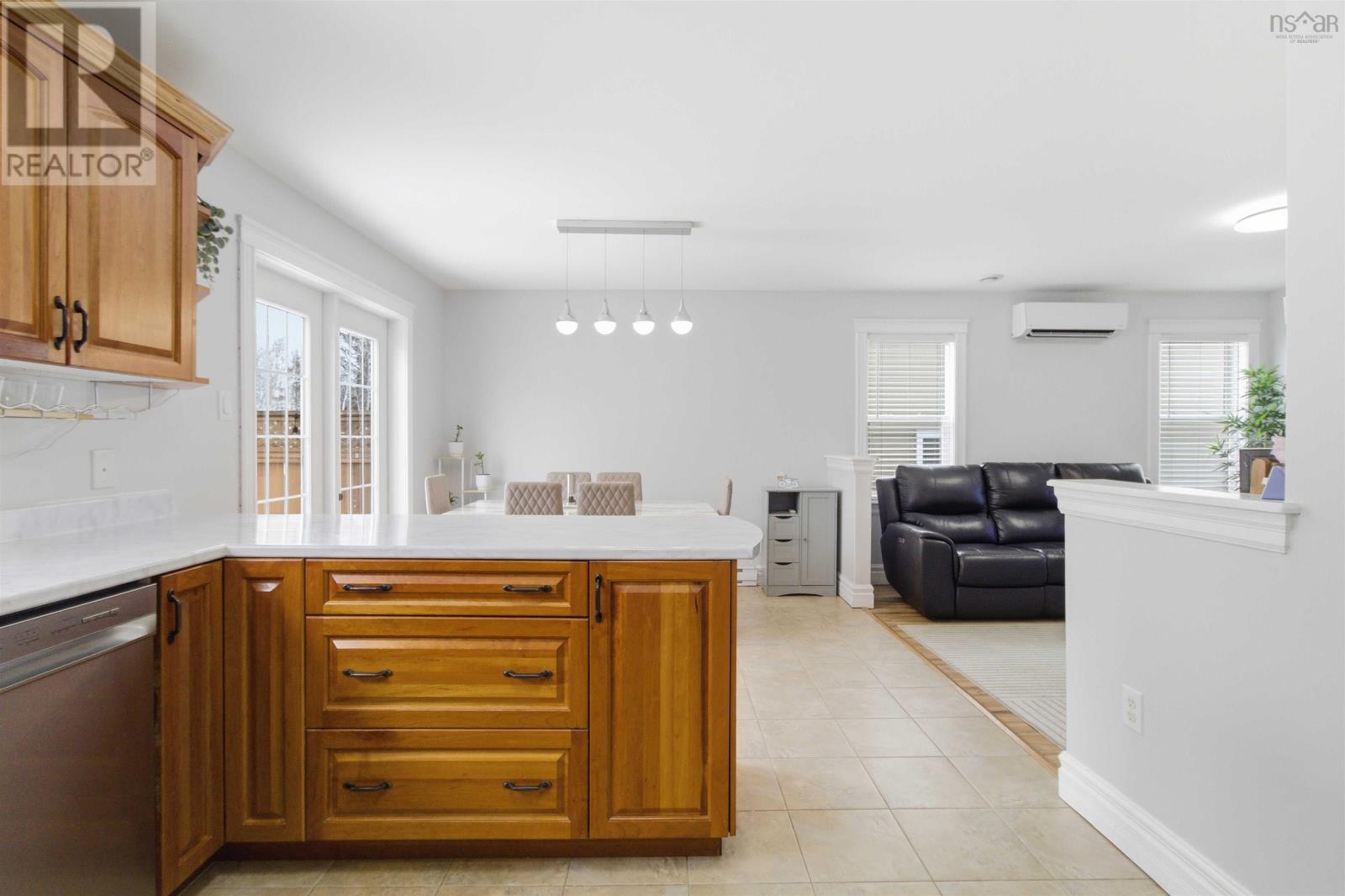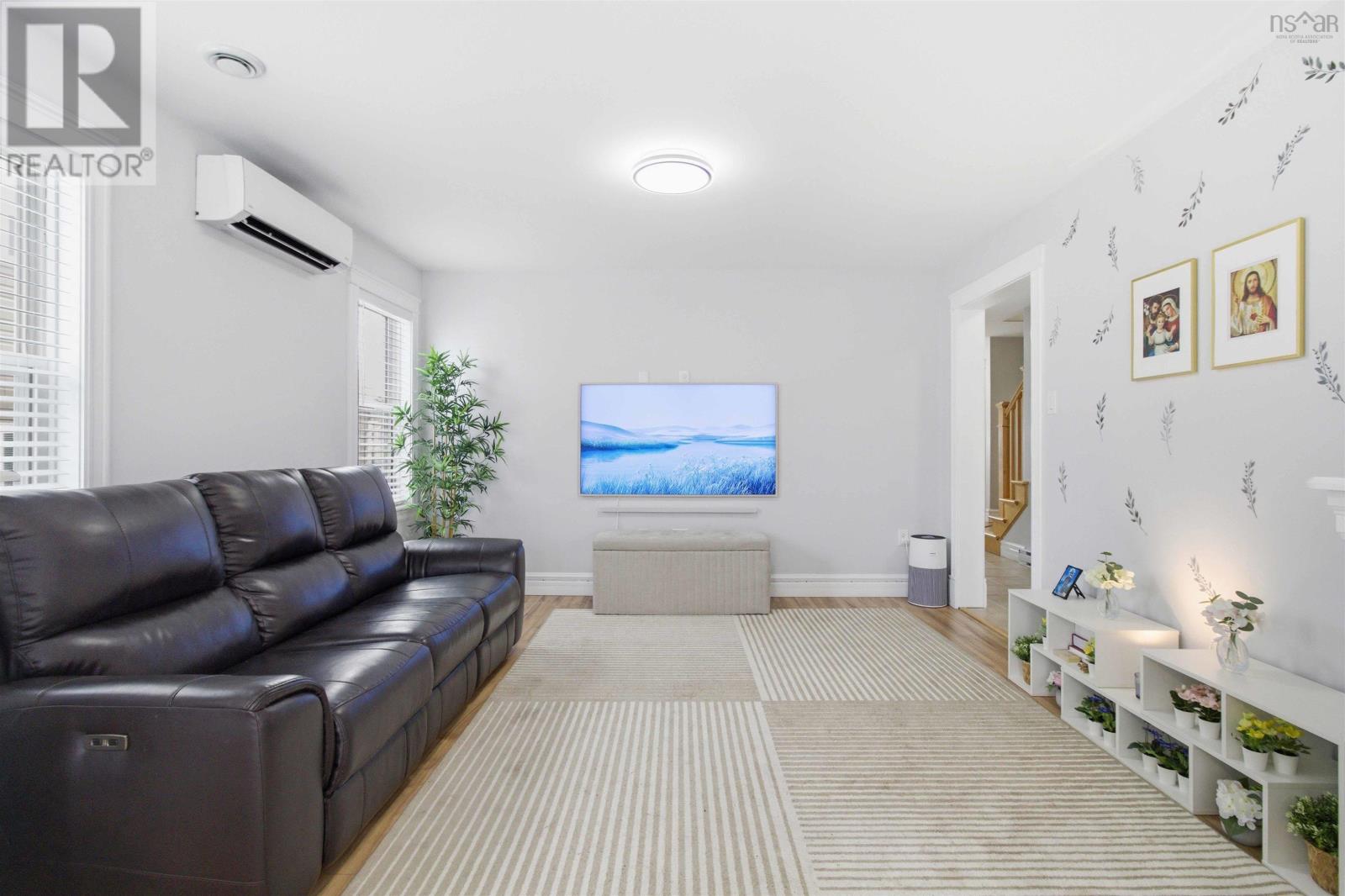 Welcome to this stunning three-level semi-detached home in the heart of Elmsdale, offering over 2,400+ sq ft of beautifully finished, low-maintenance living. This unique and thoughtfully designed layout features a rare main-floor bedroom or denperfect for guests, a home office, or multigenerational livingalongside a gorgeous kitchen, a bright dining area, and a spacious living room with a ductless heat pump for year-round comfort. Upstairs, youll find three generous bedrooms, a convenient upper-level laundry, a full bath, and a spacious primary suite complete with a walk-in closet and private 4-piece ensuite. The fully finished lower level offers a huge rec room, additional half bath, ample storage, and a walkout to a private fenced backyardideal for kids and pets. Enjoy summer evenings on the large deck, a paved driveway, and a 16x14 wired shed perfect for hobbies or extra storage. Located just steps from the walking path to Elmsdale District Elementary School, this home combines space, style, and unbeatable convenience in a fantastic family-friendly neighbourhood close to all amenities. Book your private viewing todayyoull be pleasantly surprised by everything this exceptional home has to offer. (id:49203)