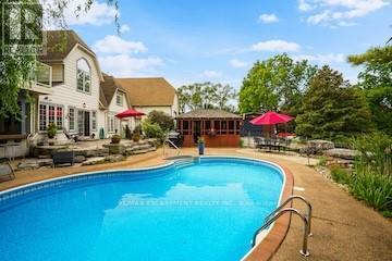 Set gracefully among mature trees on a breathtaking 2.3-acre landscape, 1166 Westbrook Road is an enchanting country retreat offering privacy, presence, and enduring appeal. Designed in 1984 with classic Colonial influence and carefully updated over time, this remarkable estate has been lovingly maintained and admired for generations. A picturesque approach framed by manicured lawns and established gardens creates an immediate sense of calm. The interior unfolds with a sense of understated elegance, featuring generous principal rooms ideal for both everyday living and entertaining. A thoughtfully updated chef's kitchen showcases premium appliances, custom cabinetry, and seamless flow to surrounding living spaces. Multiple fireplaces, rich hardwood floors, and expansive windows fill the home with warmth and natural light while capturing serene views of the grounds. The two-storey primary suite is a true private retreat, offering a cozy sitting area with gas fireplace, a balcony overlooking the property, and a private staircase leading to a spacious loft with endless possibilities. Additional upper-level bedrooms and flexible spaces easily accommodate family, guests, or home office needs. Outdoors, the property transforms into an entertainer's dream and a personal sanctuary. Rolling green space is bordered by mature trees, while resort-style amenities include an inground pool with cabana, outdoor kitchen, gazebo, hot tub, log cabin, outdoor fireplace, and multiple outbuildings. A heated attached garage with space for up to six vehicles provides exceptional versatility for hobbyists, collectors, or studio use. Quietly removed yet conveniently connected, this exceptional estate offers quick access in all directions where shopping, dining, schools, and everyday amenities are close at hand. Rarely does a property offer such a seamless blend of country tranquility, executive comfort, and commuter-friendly convenience. Luxury Certified. (id:49203)