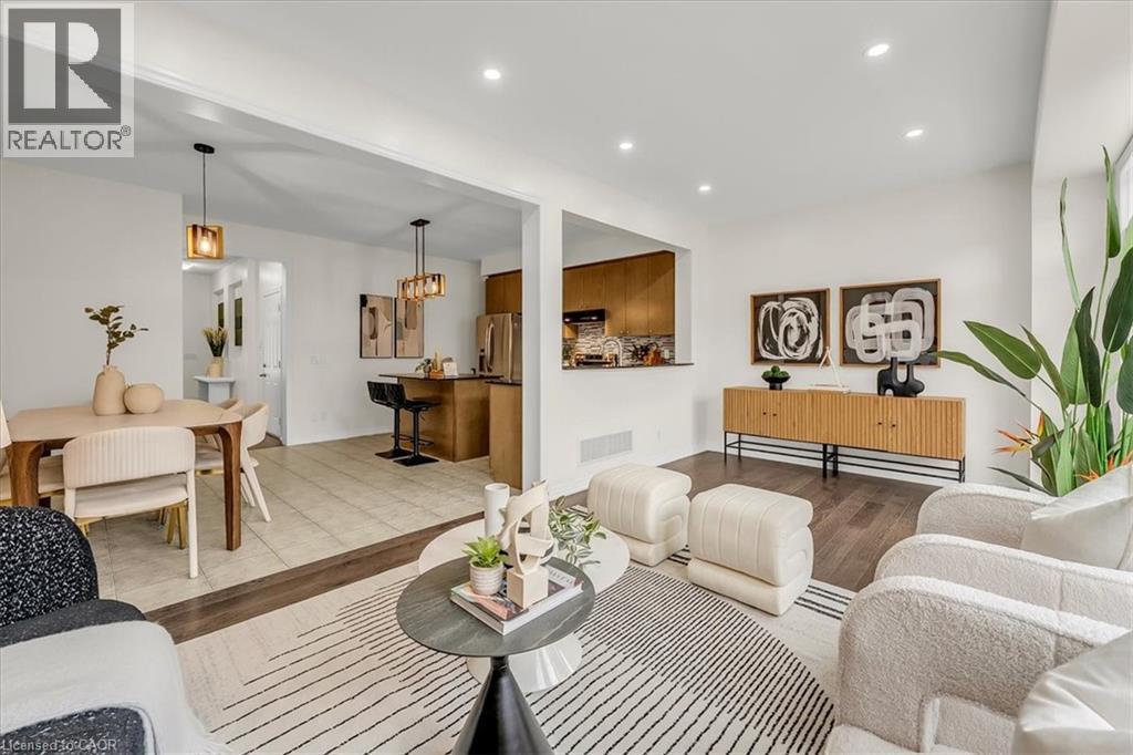 Welcome to 117 Aird Court, an exceptionally well-maintained Heathwood-built home, nestled on a quiet court in the highly sought-after Scott neighbourhood, offering a refined blend of comfort, thoughtful design, and everyday convenience. Showcasing exceptional curb appeal with beautifully finished front and backyard spaces, this upgraded executive townhome features 3 generously sized bedrooms, 4 spa-inspired bathrooms, and a highly functional layout. The foyer creates an impressive sense of arrival with a grand entrance feel, complemented by an elegant staircase and open-to-below feature that adds a strong architectural presence. The bright main level is enhanced with 9-foot ceilings, rich hardwood flooring, upgraded lighting, new pot lights, and a cohesive colour palette flowing throughout. The high-end kitchen features premium countertops, centre island with breakfast bar, stainless steel appliances, and modern backsplash. The open-concept living space is ideal for entertaining and everyday comfort with direct access to the backyard. Step outside to a fully fenced backyard w/custom interlocking stone patio and lush green space ideal for gardening or outdoor relaxation. Upstairs offers three spacious bedrooms, plus a versatile den ideal for a home office or study space. The serene primary retreat features double door entry, a bright sitting area, walk-in closet, and private ensuite with a sleek glass-enclosed shower. The professionally finished basement adds substantial additional living space, featuring modern flooring, a full bathroom, rec area, and a well-designed hallway—thoughtfully configured to maximize functionality and flow. Additional highlights include direct interior garage access with upgraded features for added convenience. Ideally located steps to Scott Neighbourhood Park, scenic trails, top-rated schools, and minutes to Milton Hospital, Milton Mall, Community Centre, and GO Station, offering excellent commuter access and lifestyle convenience. (id:49203)
