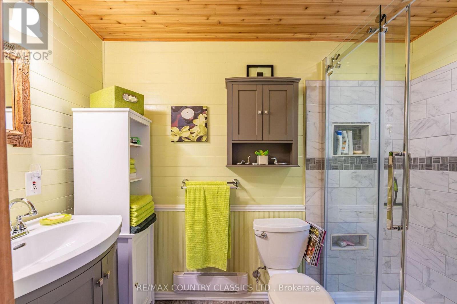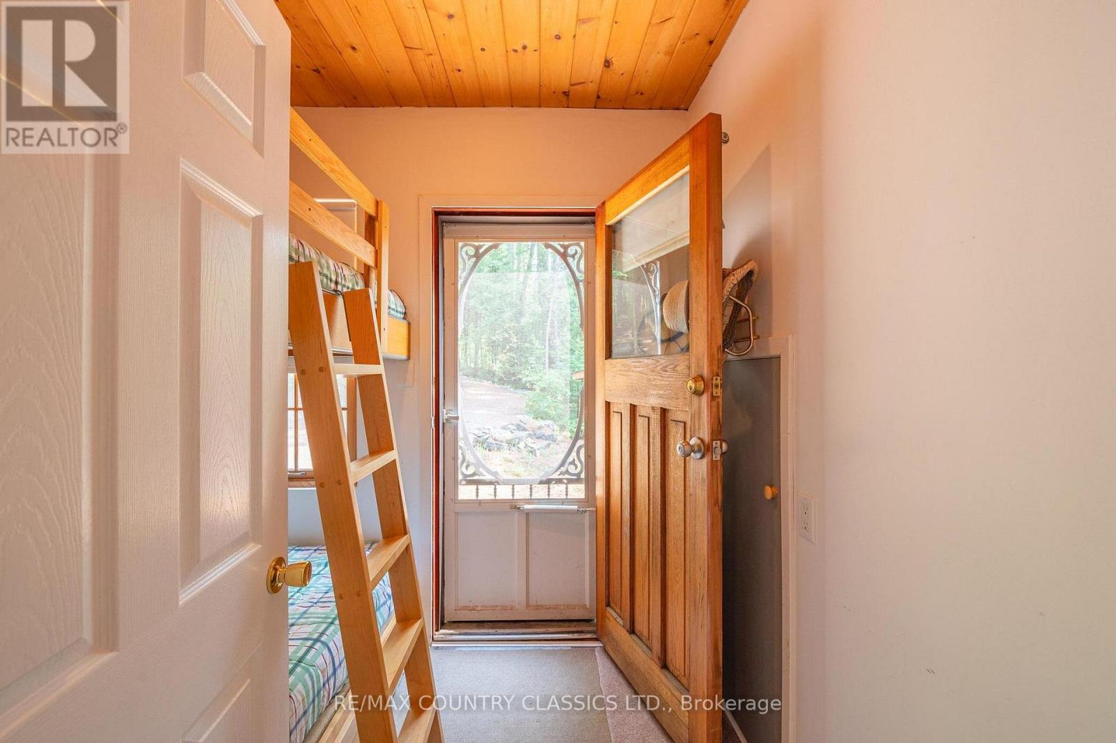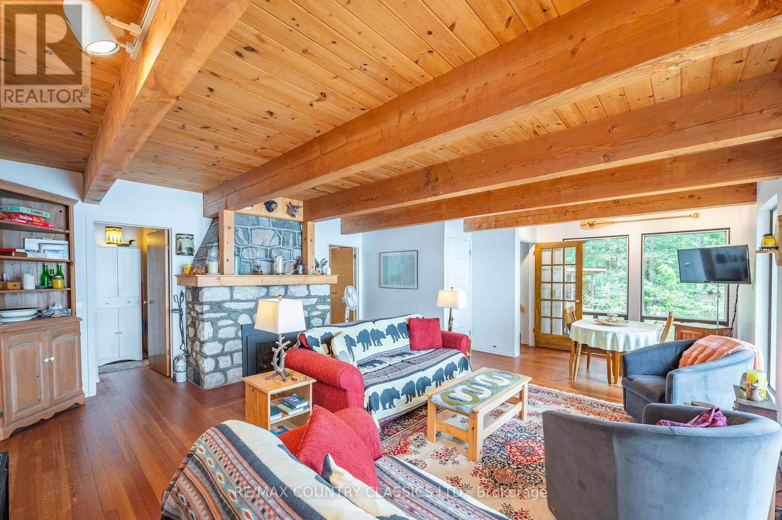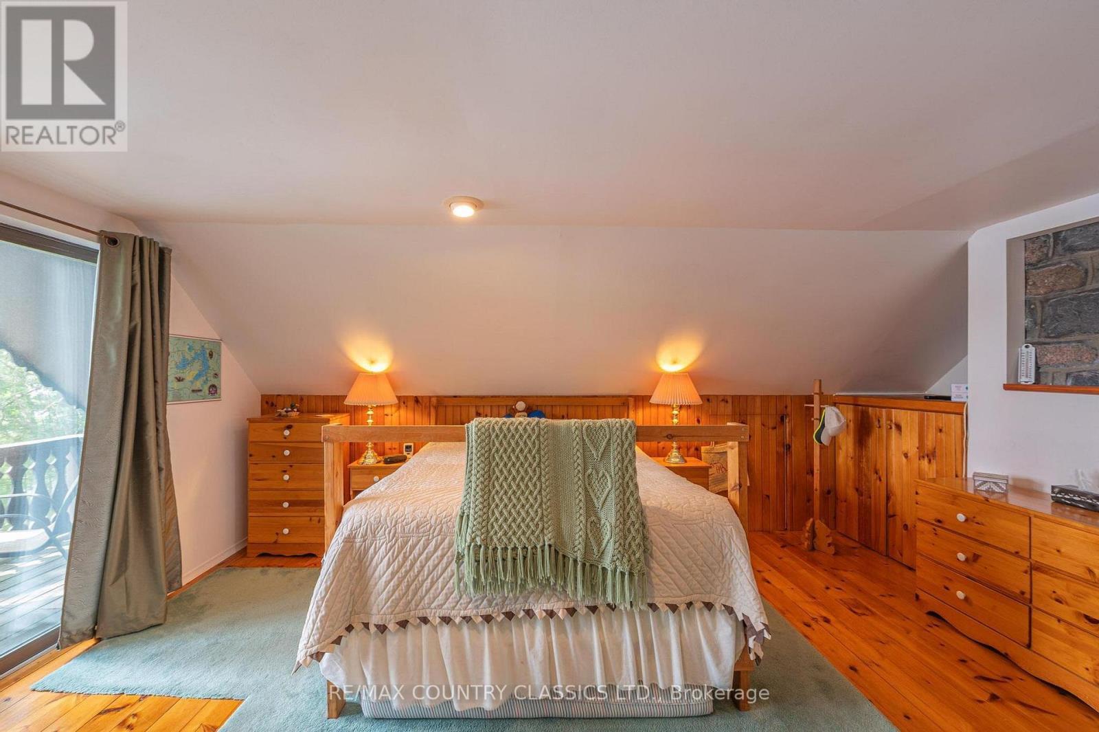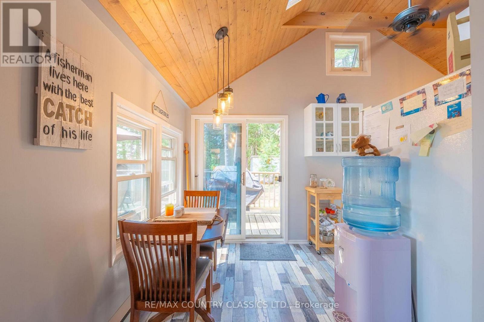 A remarkable four season cottage on Chandos Lake featuring 510 feet of outstanding private shoreline and stunning open lake views. This three bedroom, two bathroom property offers a bright, functional layout with an open concept living area, large windows, and warm natural finishes. The expansive frontage provides exceptional privacy, excellent swimming, and multiple vantage points to enjoy the lake. A rare dryland boathouse offers convenient storage and workspace. With year-round access, modern systems, and a peaceful setting on one of the region's premier lakes, this property is ideal for both seasonal enjoyment and full time lakeside living. (id:49203)