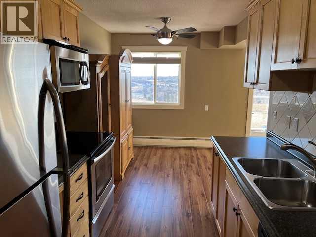 $499.48 MonthlyPublic Open House: Saturday, February 28th (12:30 - 2:00): This is a top floor corner condo unit offering an unobstructed panoramic view of the South Saskatchewan river and the south end of the city. This immaculately maintained apartment is awash in natural light and shows two ample bedrooms, a nicely laid out kitchen and dining area, a spacious living room, a 4-piece bath and a convenient laundry/storage room. It comes with a complete appliance package: refrigerator, stove, dishwasher, built-in microwave and stackable washer/dryer. In 2025 new laminate flooring was installed in both bedrooms, the entire apartment was repainted (including the baseboards) and classy cellular curtains were positioned on all windows. Also included in the purchase price is a convenient kitchen hutch/pantry, electric fireplace, 3 ceiling fans, keyless unit door entry and an assigned parking stall with a plug-in. The monthly condo fee of $499 includes landscaping, snow removal, reserve fund contribution, insurance, common area maintenance, property management, trash removal, water, heat and sewer. Valley View Estates is across the street from walking/biking paths, close to many amenities, and just a short drive to the Big Marble Go Center, Heights Rec Center and Co-op Place. It is pet friendly (with restrictions and board approval) and owners must be at least 21 years of age. (id:49203)