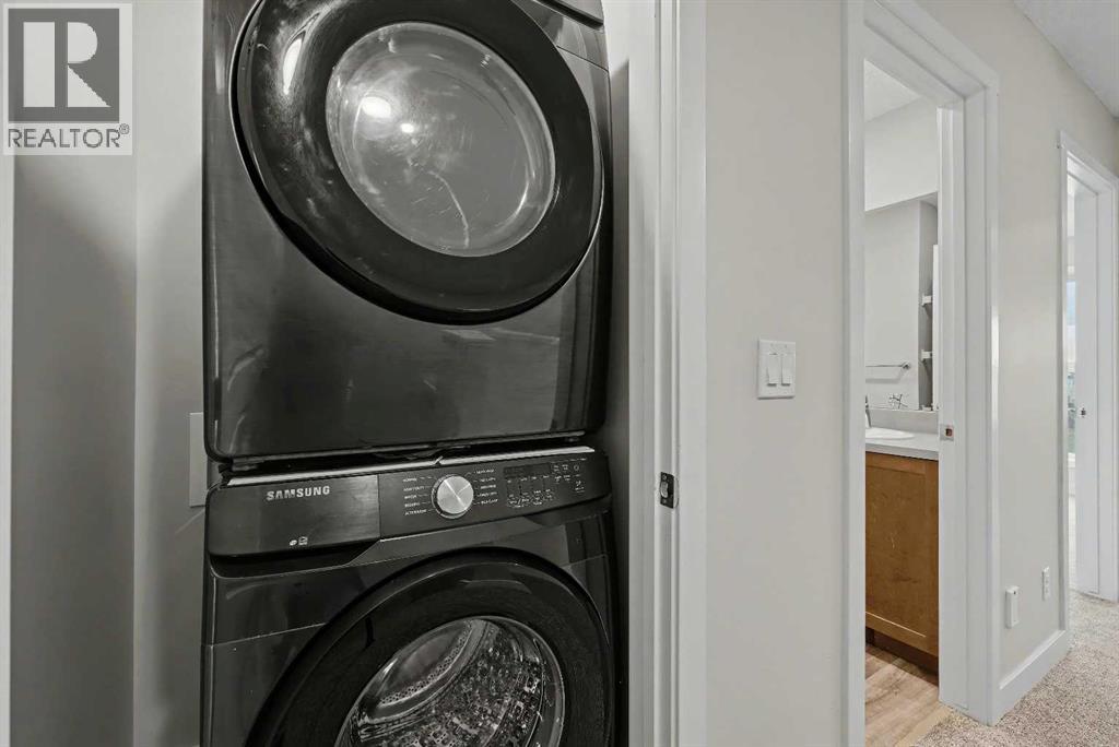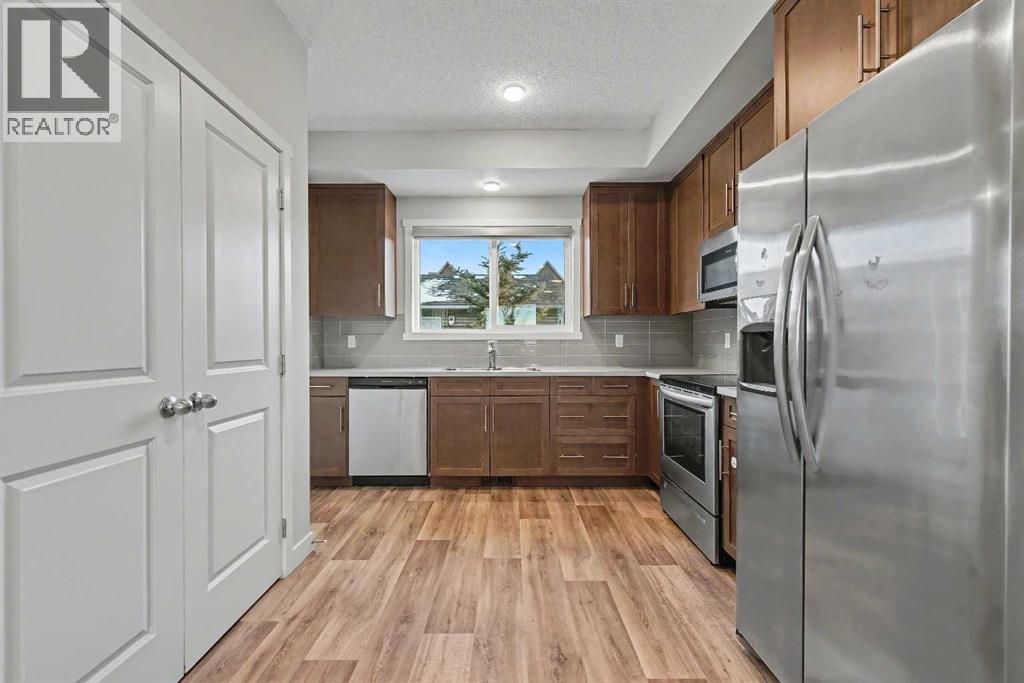 Welcome to this thoughtfully designed and functional 2-storey townhouse in the vibrant NW community of Carrington, offering over 1,800 sq ft of developed living space including a fully finished basement with an additional bedroom and full bathroom, perfect for guests, extended family, or a private home office.The open-concept main floor is bright and inviting, featuring durable luxury vinyl plank flooring and a well-designed layout perfect for everyday living and entertaining. The kitchen is thoughtfully laid out with ample cabinetry, modern tile backsplash, and stainless steel appliances, flowing seamlessly into the dining area for easy hosting. Large windows bring in abundant natural light to the living room, while a convenient 2-piece powder room completes the main level.Upstairs, the spacious primary bedroom offers a walk-in closet and a private ensuite, creating a comfortable retreat. Two additional well-sized bedrooms, a full main bathroom, and upper-level laundry provide excellent functionality for family living.The fully finished basement adds exceptional versatility with a large recreation area, fourth bedroom, and full bathroom, making it perfect for a media room, home office, or guest suite. The backyard is fully landscaped with access to the oversized single car garage accessed from the paved lane. Enjoy outdoor living with a private outdoor space ideal for summer BBQs and relaxation, along with convenient parking options. This home is surrounded by parks, playgrounds, pathways, ponds, and nearby shopping, with quick access to Stoney Trail, Deerfoot Trail, CrossIron Mills, and the airport.A fantastic opportunity to own a move-in-ready home in one of Calgary’s fastest-growing communities. (id:49203)
