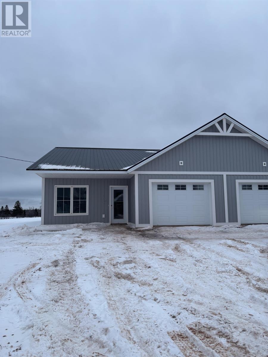 Welcome to beautiful Abram-Village, Prince Edward Island. This charming, peaceful community is located near the beautiful shores of the Northumberland Strait and less than half an hour from the city of Summerside. This newly constructed, semi-detached unit is part of a stunning new subdivision that is conveniently located near a new K-12 school (opening in 2027), a hockey arena, gym, and recreation center. The home boasts quality craftsmanship in every aspect of the building process. The exterior will feature durable vinyl siding, azek trim, one inch foam insulation and a steel roof. The wall between the units, are constructed using ICF forms with poured concrete. This creates a soundproof barrier between the two units, providing peace and privacy. Inside, you'll find over 1600 square feet of living space, plus a single car garage. The bright, open-concept design provides the perfect space for entertaining. The kitchen boasts white kitchen cabinetry, quartz countertops, and a walk-in pantry for extra storage and organization. The master suite has a full ensuite bathroom and walk-in closet. Two additional large bedrooms and another full bathroom complete this ideal layout. The covered back deck includes its own privacy wall creating a tranquil outdoor living space. A paved driveway and landscaped yard complete the exterior facade of this beautiful home. Please note that the property has not been assessed yet and therefore taxes are to be announced at a later date. The HST rebate is to be signed back to the Seller on the closing date. (id:49203)