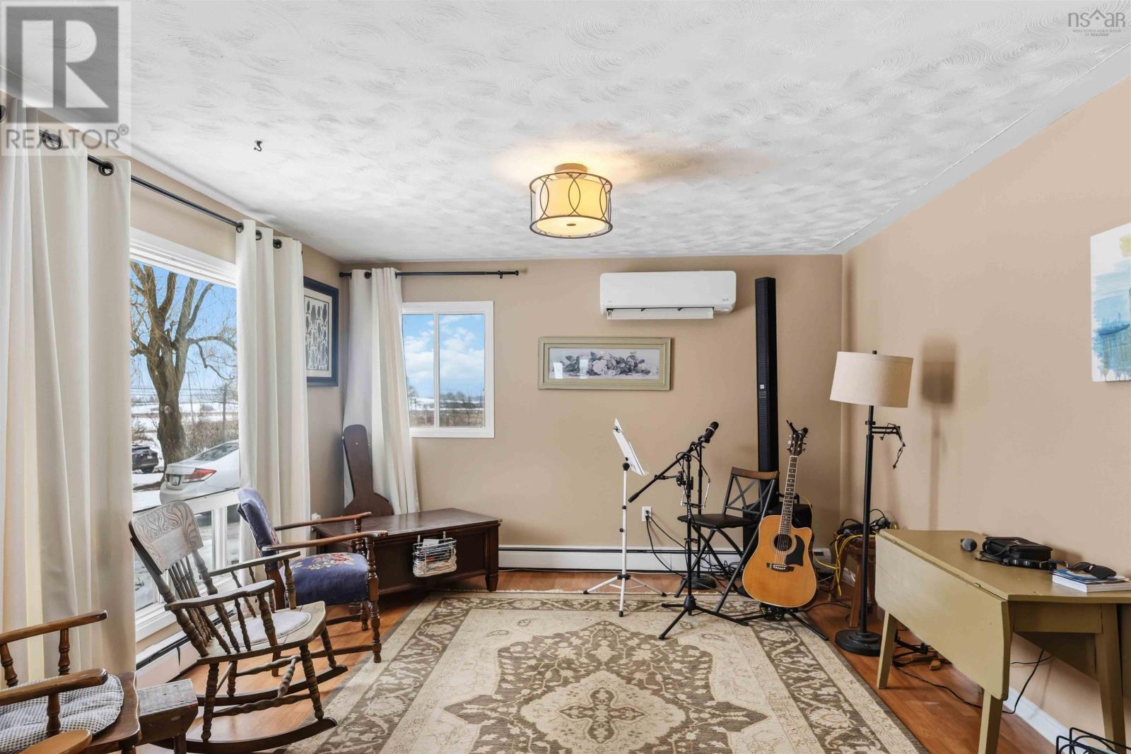 Welcome to the peaceful charm of Hortonville, nestled within the stunning landscape surrounding Grand-Pré National Historic Site. This well-maintained 4 bedroom, 1.5 bath ,side split offers a wonderful blend of rural tranquility and convenient Annapolis Valley living. Plenty of privacy with this property being very close to the end of the road . Located just 2 minutes from Exit 10 on Highway 101 and only 6 minutes to the vibrant town of Wolfvillehome to Acadia Universitythis property is ideally situated for commuters, families, or anyone wanting to enjoy the Valley lifestyle. Both Halifax Stanfield International Airport and Halifax Regional Municipality are approximately an hour away. Set near the mouth of the scenic Gaspereau River, the home enjoys lovely countryside surroundings and three-season views of the beautiful Minas Basin. The nicely landscaped property is surrounded by A1 zoned land and offers ample space for a garden, greenhouse, or even a small barn. Inside, the main level features a bright and spacious living room filled with natural light. The lower level family room just off the kitchen provides a comfortable space for gatherings or relaxing evenings. Outdoor enthusiasts will appreciate striped bass fishing nearby and easy access to the scenic Harvest Moon Trail, along with many walking and cycling trails throughout the area. A newer full-sun patio is perfect for summer BBQs or morning coffee. The attached 1.5 garage offers convenient main-level access, and a metal shed is included for additional storage. Just minutes away are award-winning wineries, craft breweries, and exceptional dining that make the Annapolis Valley such a sought-after destination. A wonderful opportunity to enjoy peaceful country living close to Wolfville and the best of the Valley. (id:49203)