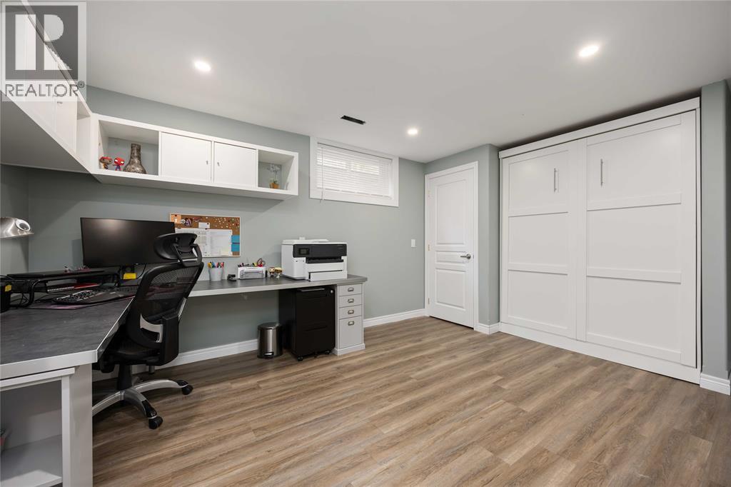 Upscale living meets easy upkeep in this upgraded brick bungalow in a quiet neighborhood. The main level boasts a bright kitchen with stone countertops and Sarnia Cabinetry. Move into the tall, open dining/living area with recessed ceilings, large windows, a gas fireplace, and a 2-pc bath. The grand primary suite is a true retreat, featuring recessed ceilings, independent cooling, a walk-in closet, and a spa-inspired 4-pc en-suite designed for everyday luxury (completed in 2022). The lower level adds 1,000+ sq ft of finished living space with two additional bedrooms, a full bath, and a large “movie-night” rec room with kitchenette—ideal for guests or teens—plus ample utility and storage space. Outside, the fully fenced, landscaped yard is perfect for relaxation and hosting, with stamped concrete, two gas hookups, a hot-tub-ready pad, pergola, exterior lighting, and an insulated shed with power. This home delivers efficiency and peace of mind, with major updates including a metal roof, sump pump, eco-insulation (2019), Lennox furnace & A/C (2021), electrical upgrades, HRV system, & new flooring (2022). 2-Car attached garage. Two minutes to HWY 402; short walk to Lambton College. (id:49203)