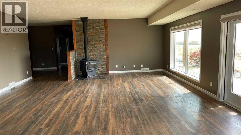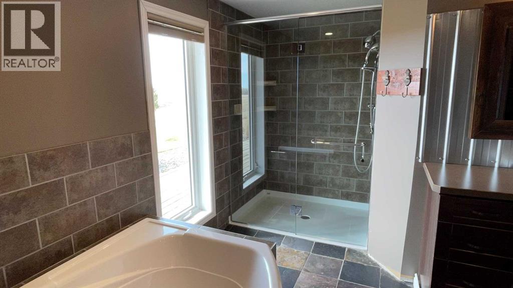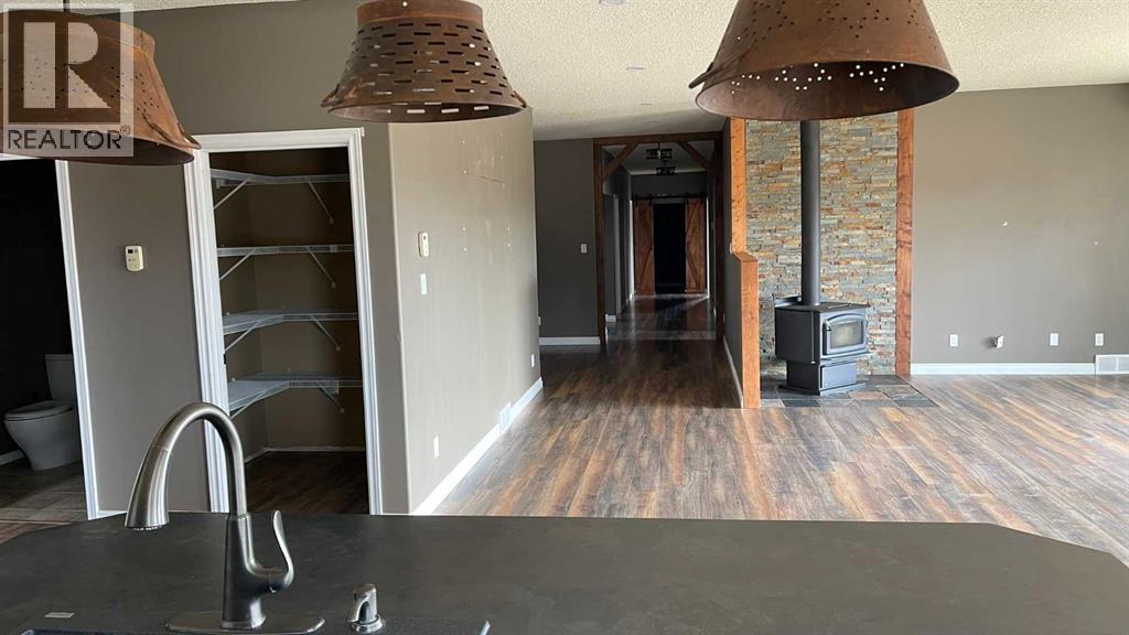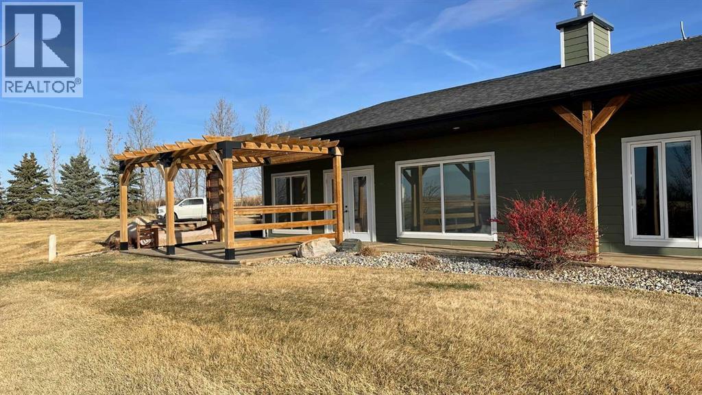 If privacy, space, and the conveniences of town are what you are looking for, this is it!This sprawling bungalow features 2,661 sq. ft. of main-floor living space and a spacious, double-attached heated garage, plenty of room for a growing family. As you enter, you are greeted by a porch area with a generous storage closet and a convenient half-bath down the hall. The large, open kitchen features a massive island and an abundance of cabinetry and pantry space, making it perfect for the home chef.The living area is open and bright, boasting massive south-facing windows and a wood-burning fireplace that creates a perfect gathering spot. From here, you have direct access to a patio with a pergola, offering gorgeous views of the valley and the creek running by the yard.Down the hall, you will find a three-piece bath and a dedicated laundry room. An extra-wide hallway leads to three bedrooms plus the master suite. The spacious master bedroom features a luxurious ensuite with a jetted tub, a fully tiled shower, and a walk-in closet with ample storage.Outside, the roomy yard features well-established landscaping, mature trees, a pasture for animals, and plenty of space for the garden of your dreams. There is also ample room to build a shop for equipment and hobbies. For the outdoor enthusiast, McVinnie Trout Pond is less than a mile down the road, perfect for a quick fishing trip.Come take a look and imagine your life on this quiet acreage! (id:49203)